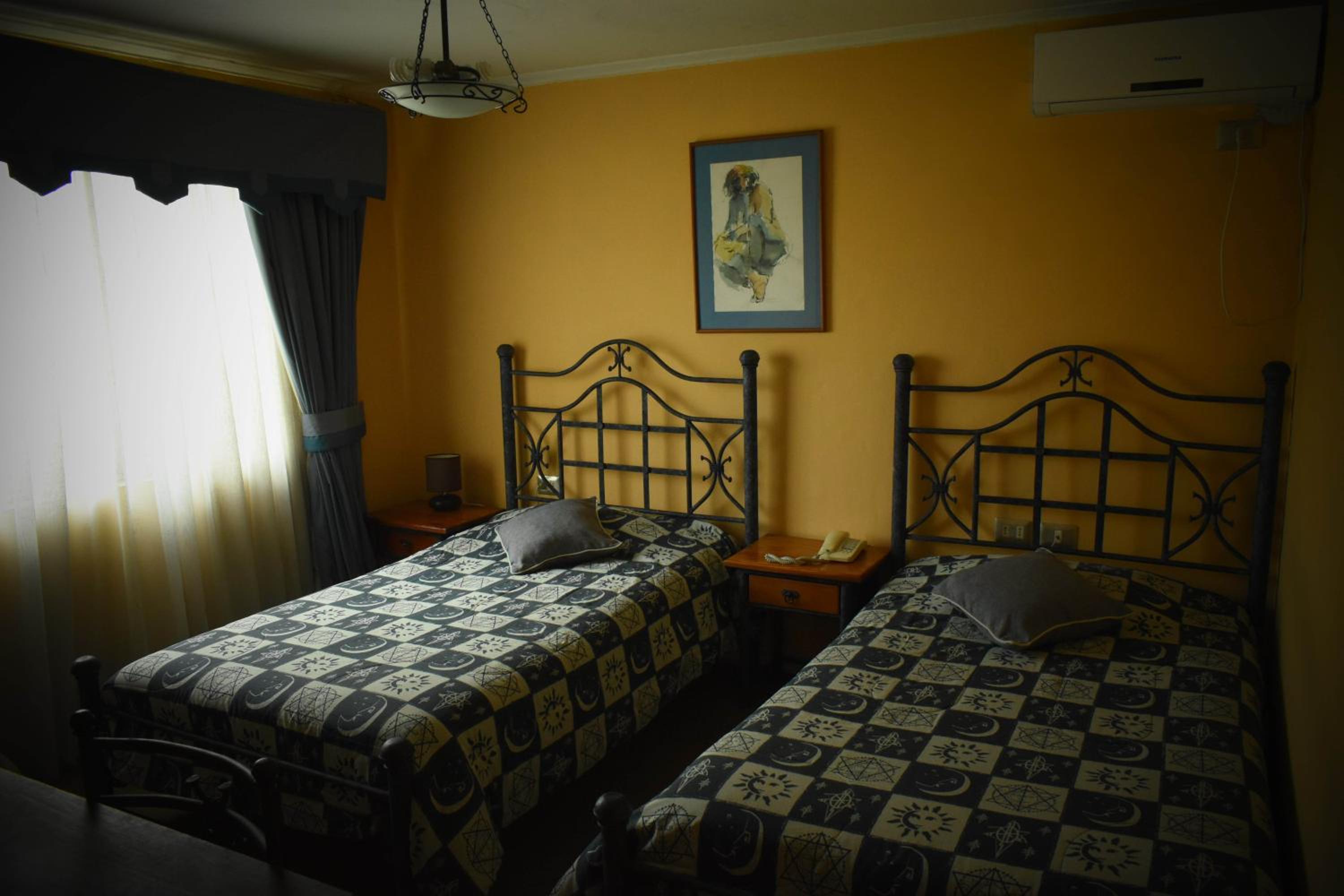 The hotel is in a good place with an acceptable peruvian restaurant in the first floor, its near the mainbus terminal o' higgins from Rancagua. The rooms have standard equipment, tv, bathroom and kingsize bed. The rooms are laid out with carpets so beware the you have allergies. The breakfast is standard that means bred, butter, mermelade, flakes, milk, juice, coffee and black tea... The same you can have for less money. I stay sometimes there cause i know that they have always a room for rent but i cannot say thats my favorite place...
