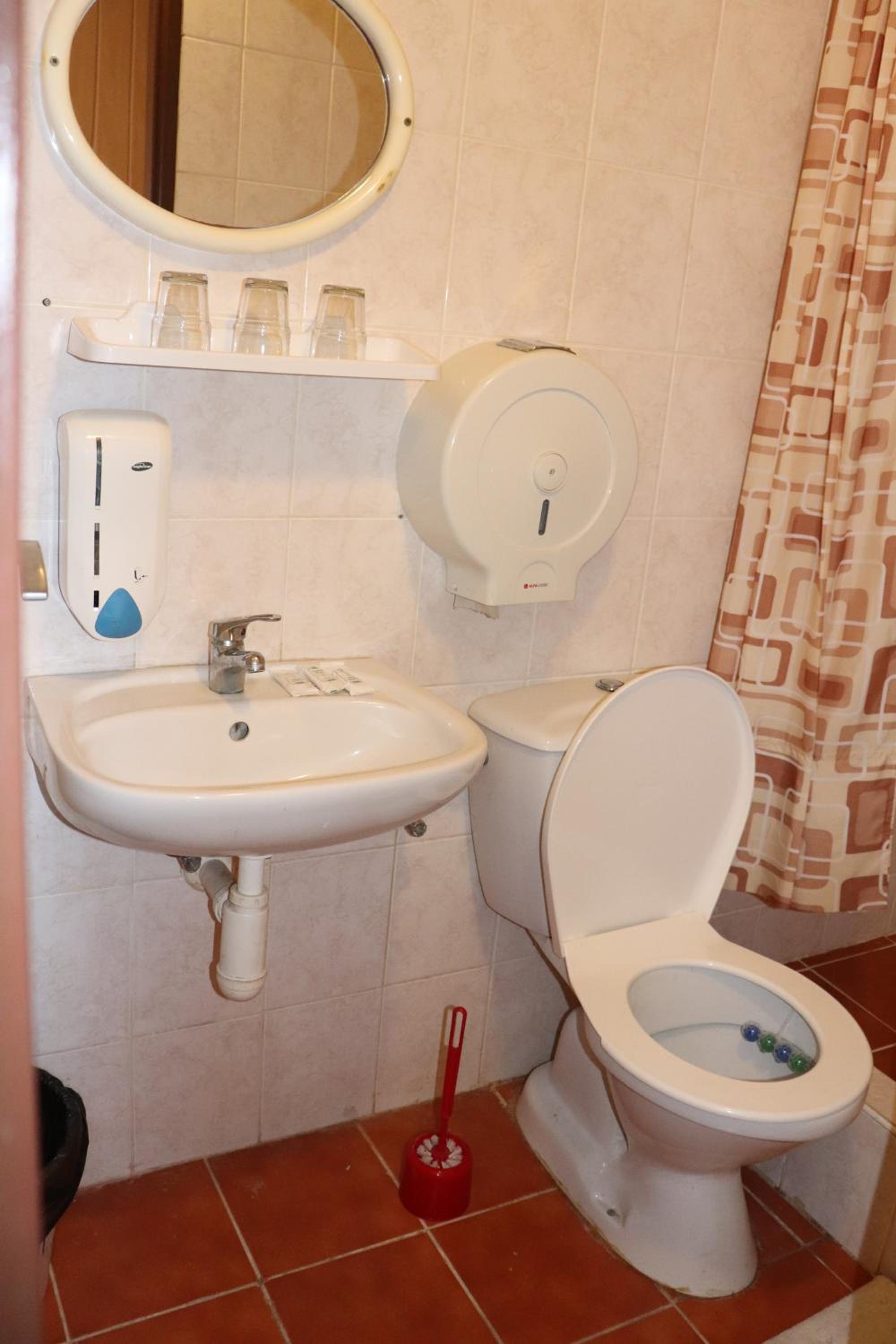 Warunki sanitarne poniżej warunków bytowych.Przywitał nas w holu walący sie sufit i porozstawiane wiadra i miski na deszczówkę w holu. Łazienki w pokojach dramat jak na zdjęciu, ciepła woda pod prysznicem po 15 minutach spódzcenia w kranie, czyli druga osoba myje sie dopiero w ciepłej wodzie. Materace na łóżkach brudne i ten dziwny zapach. To wszystko za 55 euro za pokój 2 osobowy. W polsce żaden sanepid by tego nie dopuścił pod wynajem. A tu jest napisane , że to jest hotel. Booking schodzi na psy. Nie weryfikuje tego co sprzedaje!!!