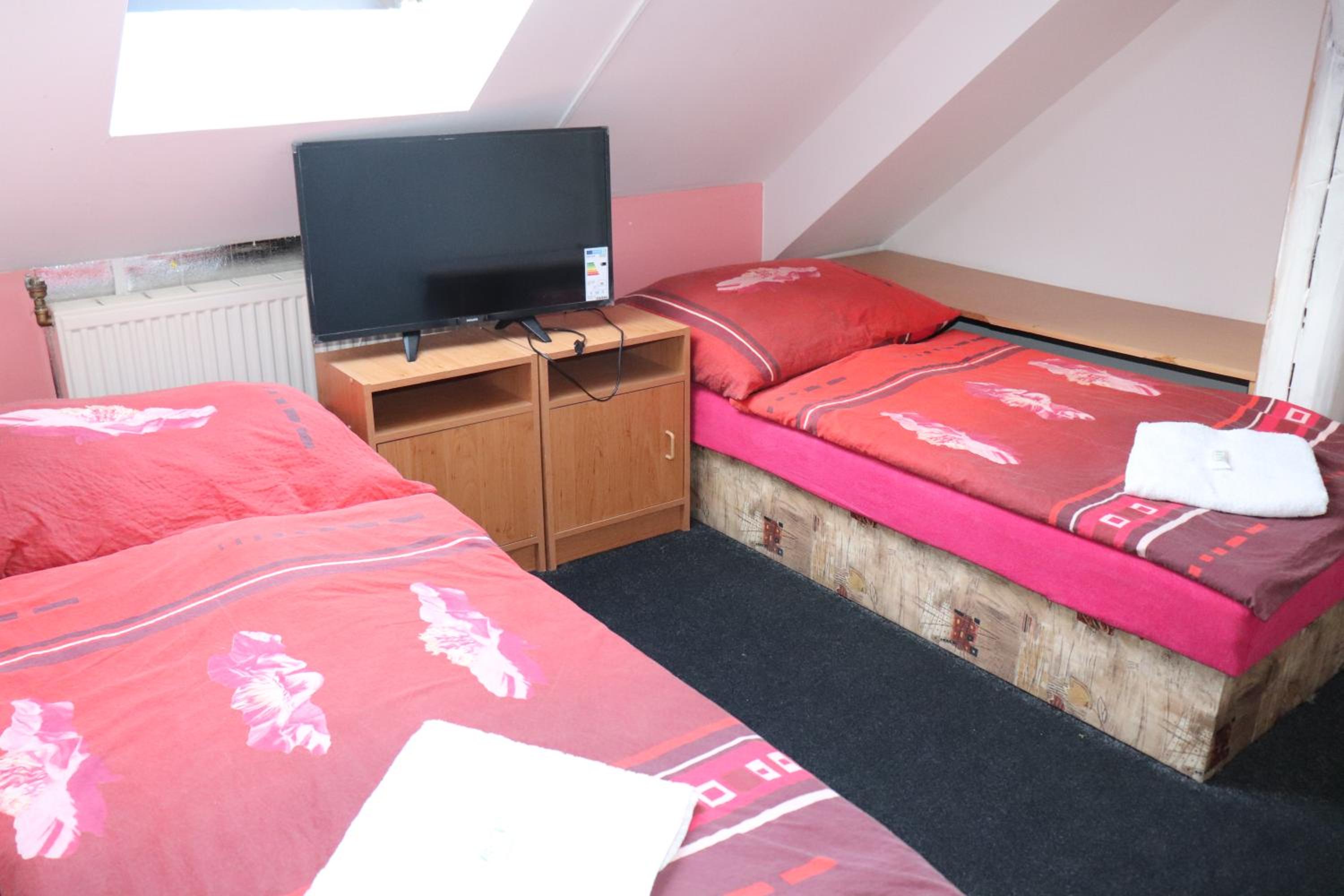 Koszos, büdös volt a szoba. Nem takaritják a fürdőszobát sem. Rettenetes bűz volt mindenhol. Az ablak alatt hajnalig beszélgettek ezért zajos volt. Nem volt szunyogháló az ablakokon. Az ágy kényelmetlen volt és az ágynemű mosatlanok. A szállásadó nem beszélt csak csehül, wifi kódot nem adta meg.