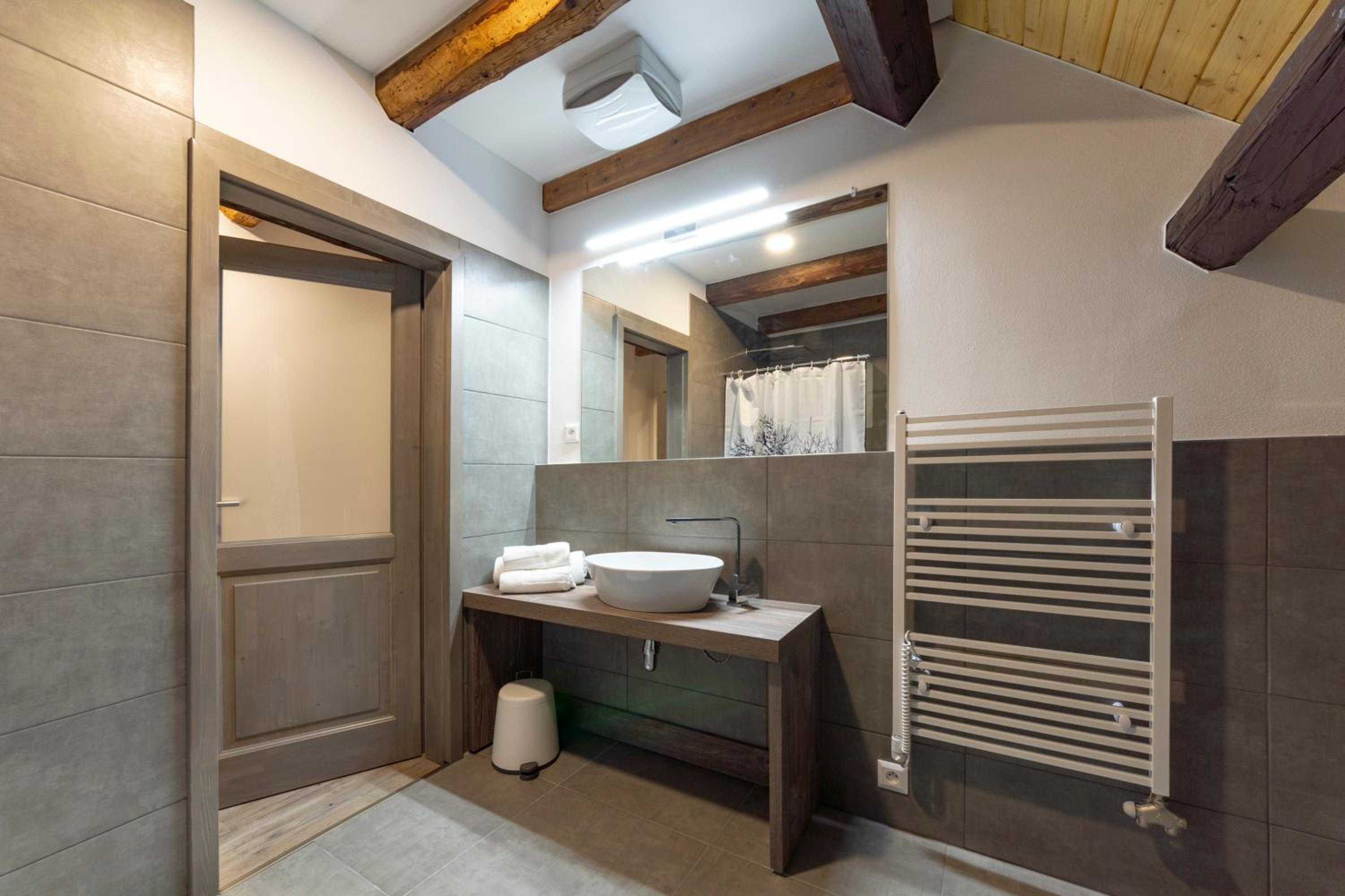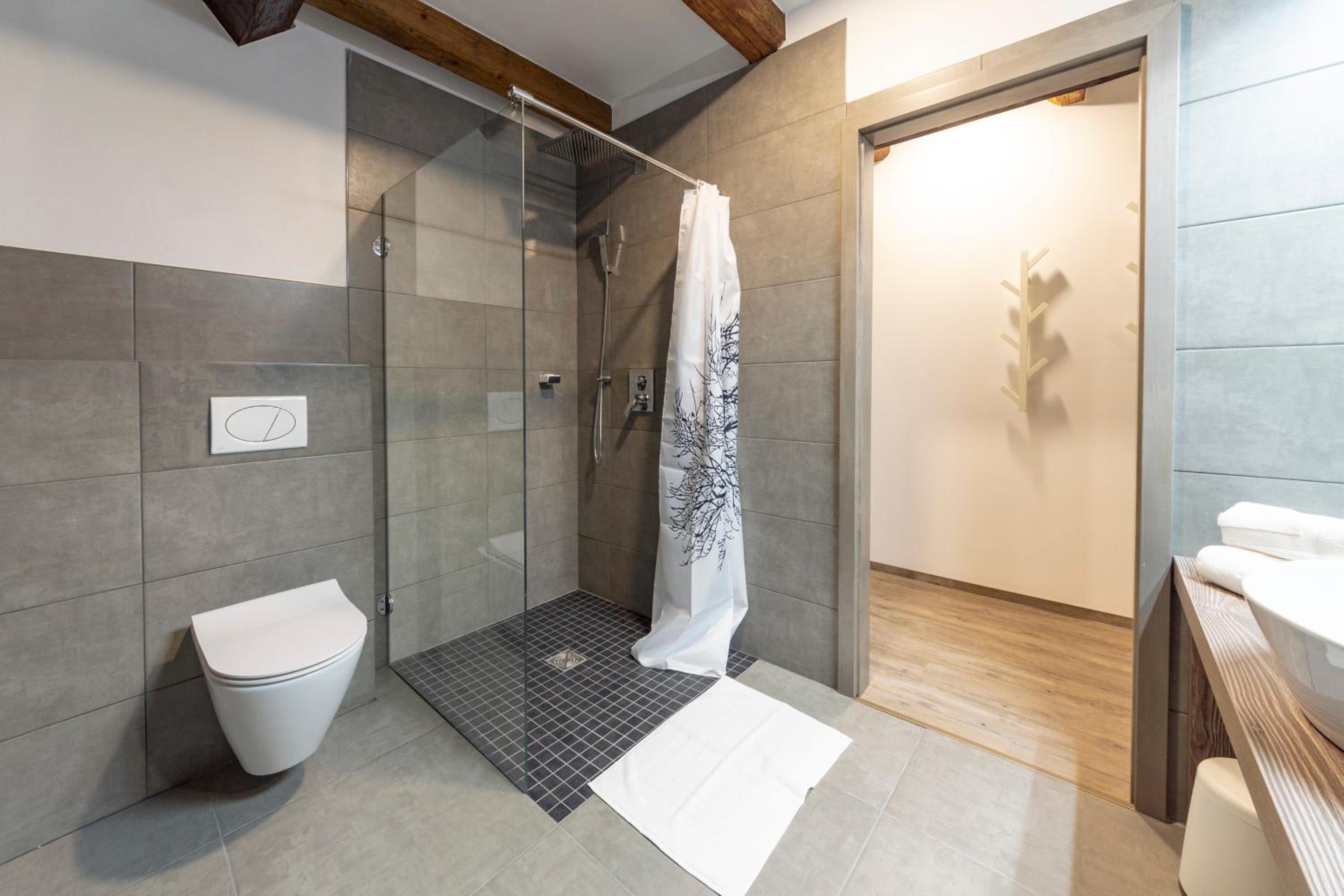 Sauberes und großes Doppelzimmer, Fußbodenheizung, großzügige Dusche. Sehr gute Lage in der Nähe von Skipisten.