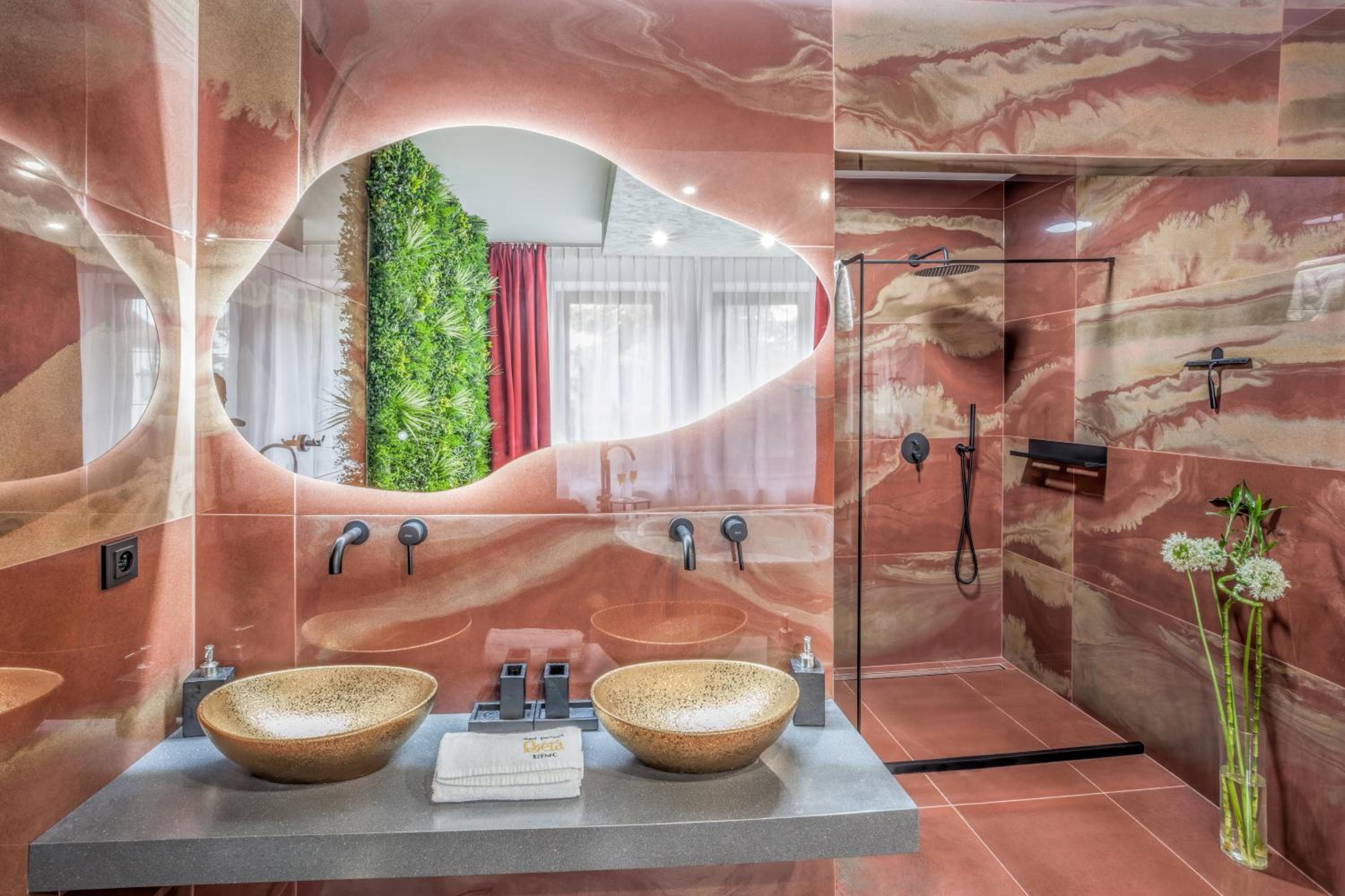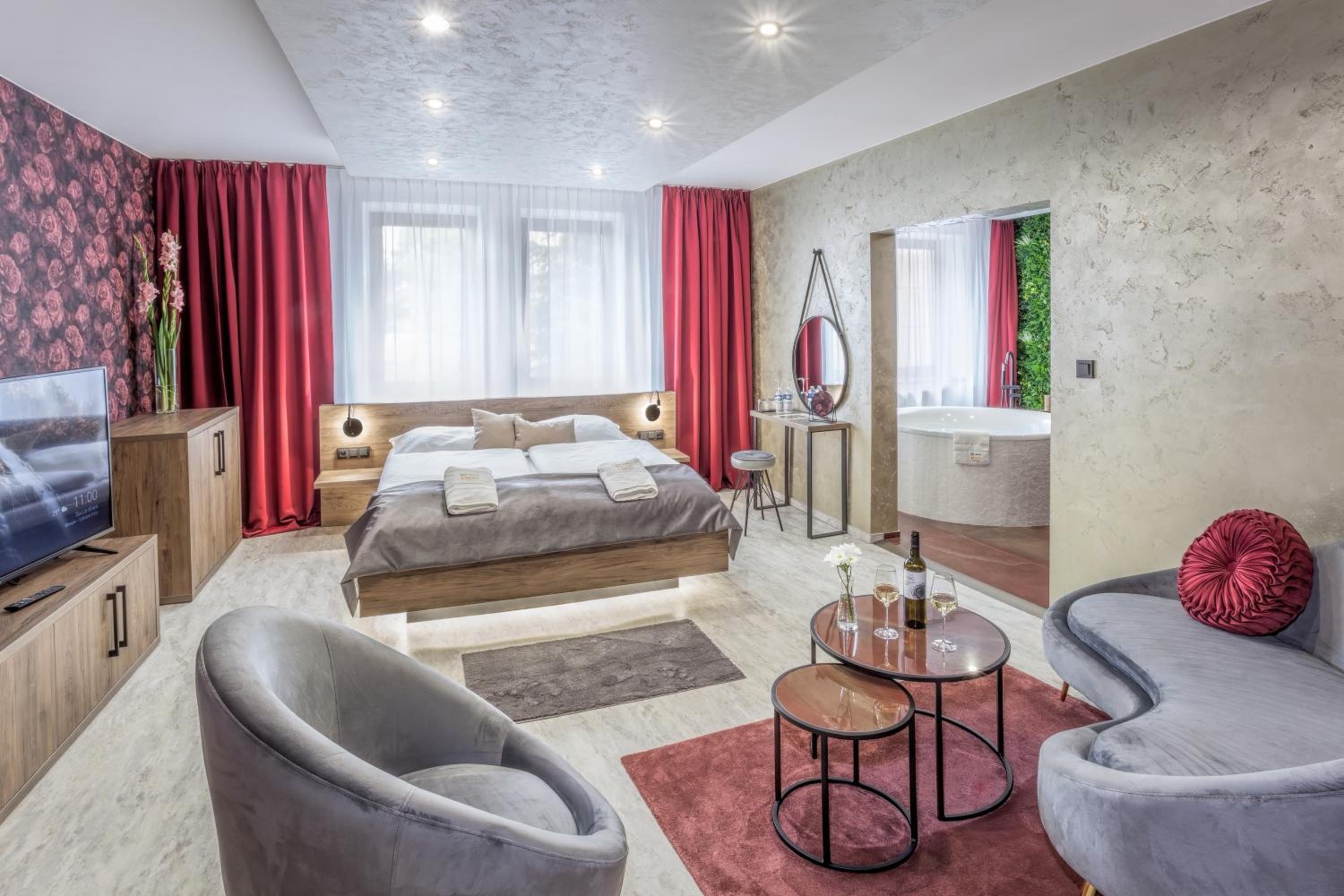 Výborná hotelová restaurace. Měli jsme na pokoji samostatně stojící vanu a bylo to opravdu boží :) . A postele byli taky skvělé. Koupelna parádní.