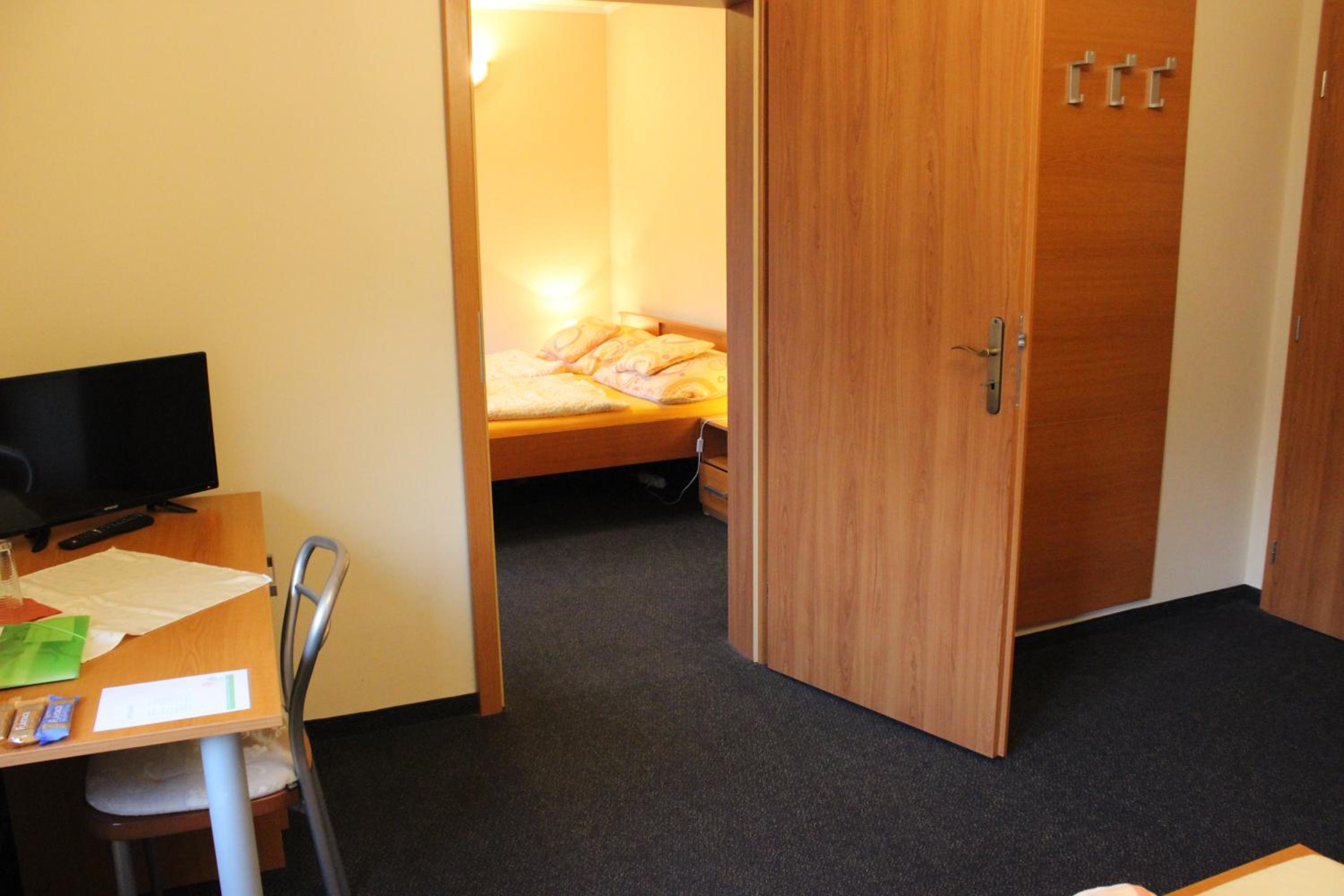 Ein tolles Hotel, um sich vom Alltag zu erholen. Es ist gemütlich, sauber und ruhig. Es liegt etwas außerhalb vom Zentrum und hat kostenlose Parkplätze. Wir haben zwei Zimmer gebucht. Beide Zimmer hatten eine Badewanne, einen Kühlschrank, einen Fernseher und einen Haartrockner. In einem Zimmer gab es zusätzlich einen Wasserkocher und einen Safe. Auf dem Flur gab es eine Mikrowelle und Geschirr. Das war sehr praktisch, weil es schwierig war, ein Restaurant mit vegetarischem Essen zu finden. 🫣