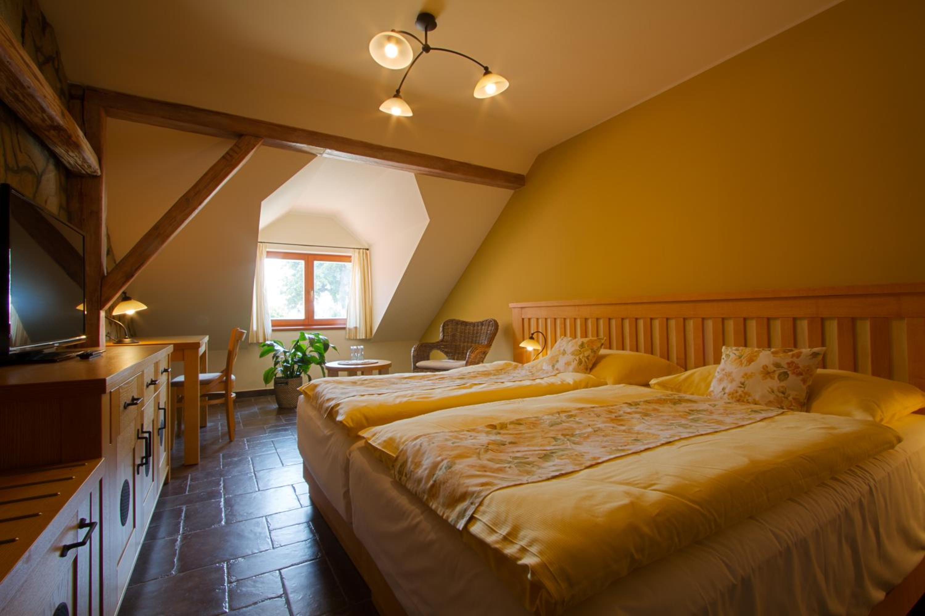 Book your stay at Hotel a restaurace Palfrig for a relaxing countryside getaway with convenient amenities.