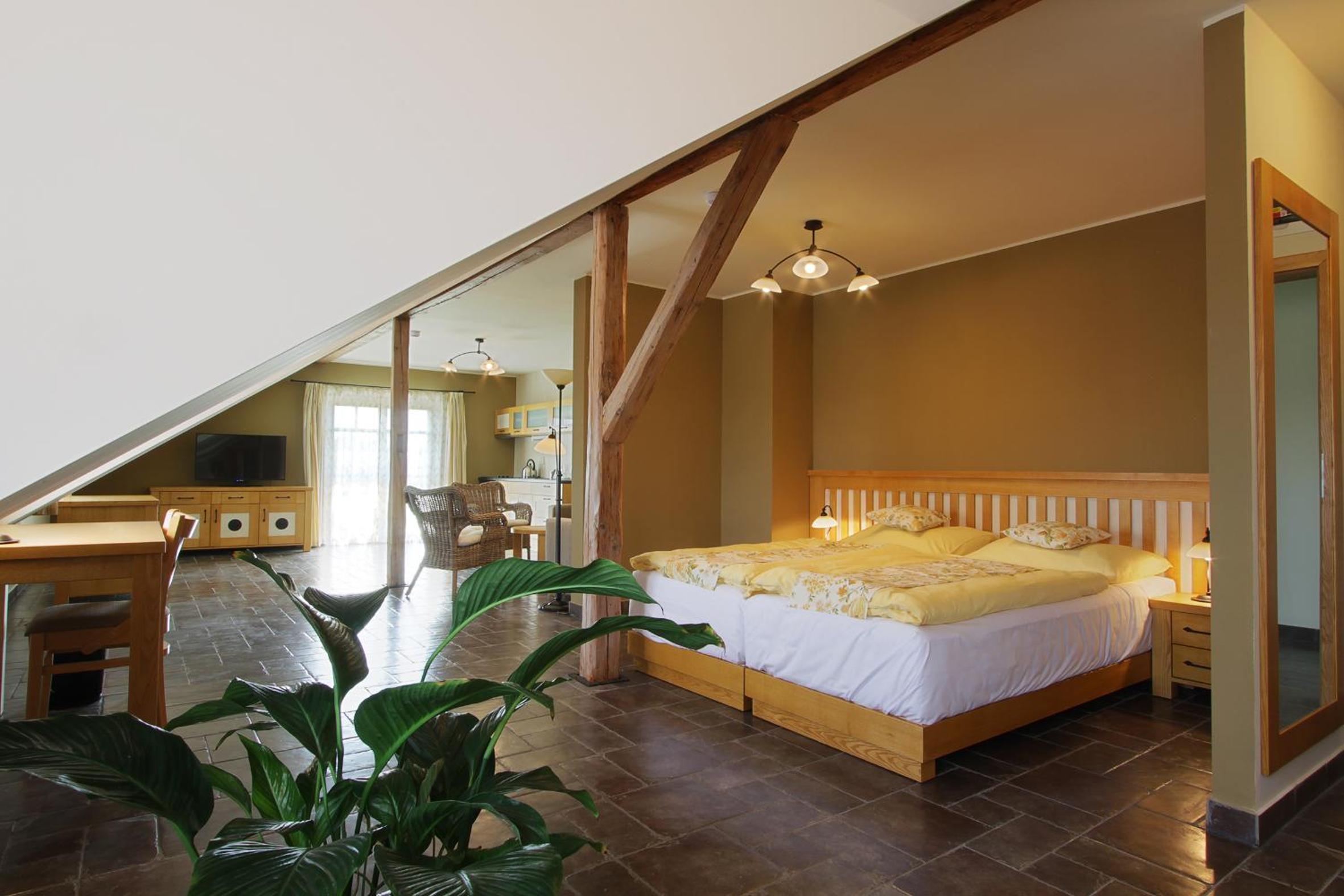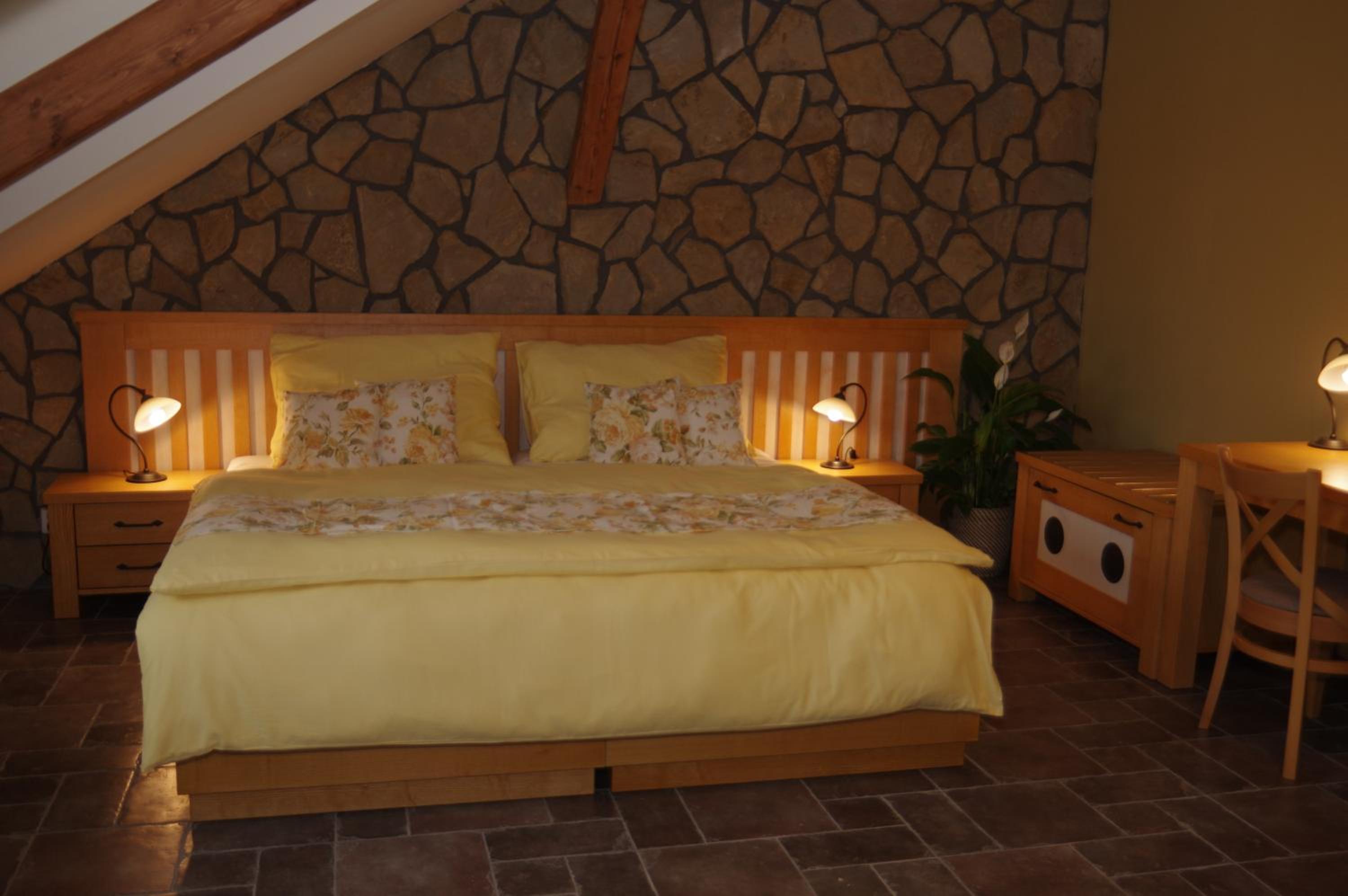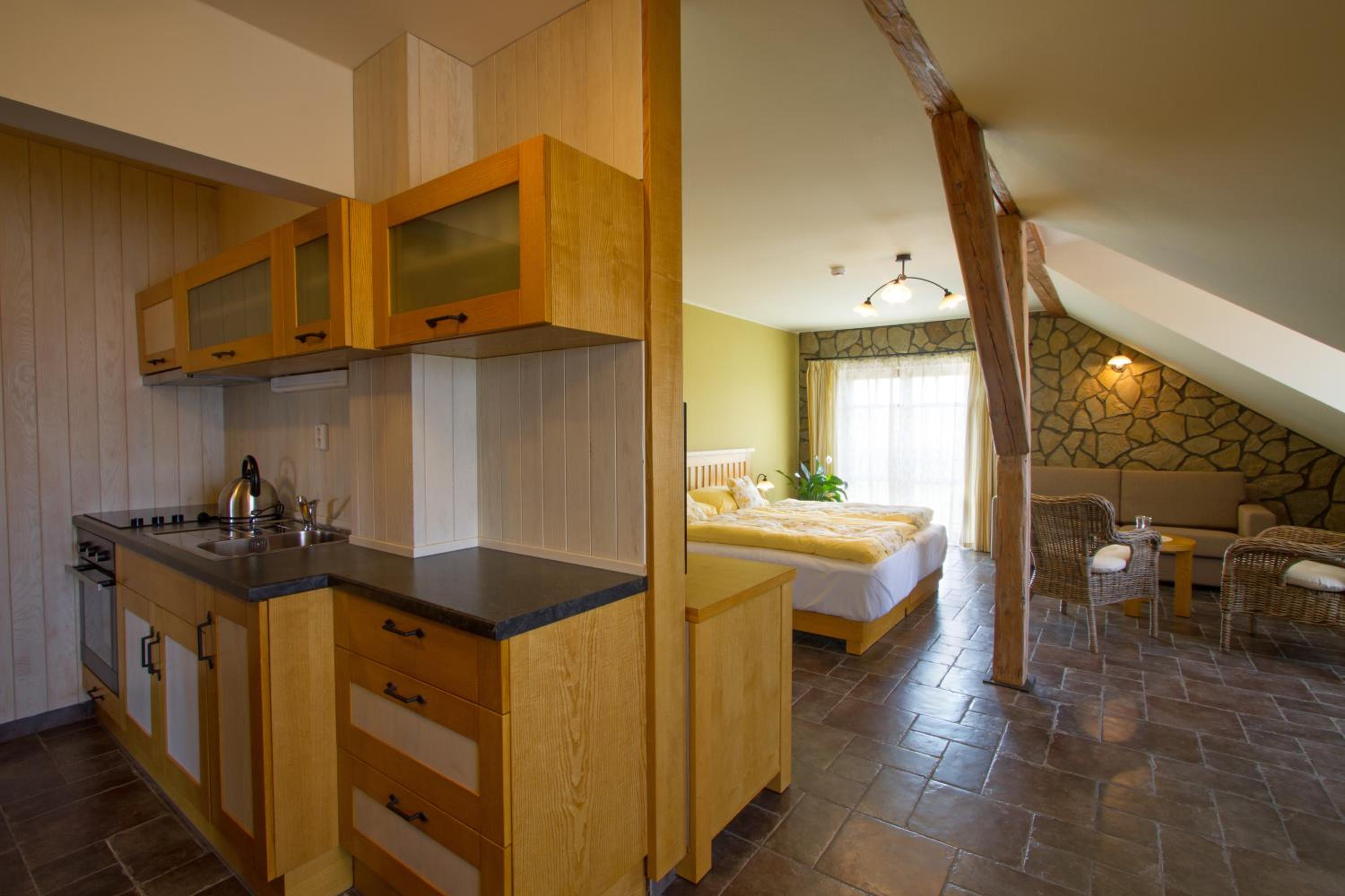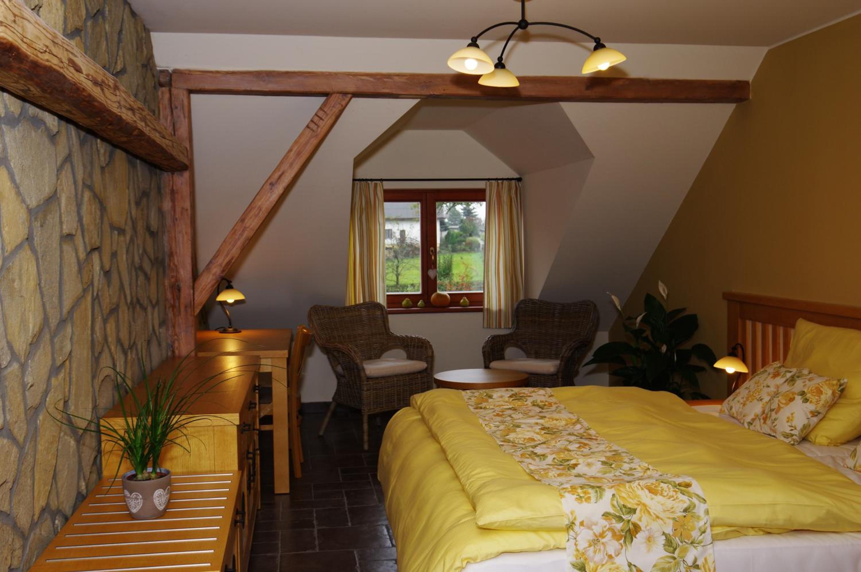 Even though I arrived much later than planned due to delayed flights, they opened up the kitchen and made me dinner. Kitchen was closing early due to no guests because of very rainy weather. Ate a delicioys Gulasch with Czech knödel and cucumber salad. Refreshed myself with Pilsner Urquell. Had my french bulldog puppy with me that I just picked up and he also was treated like a regular hotel guest. Moc děkuji!