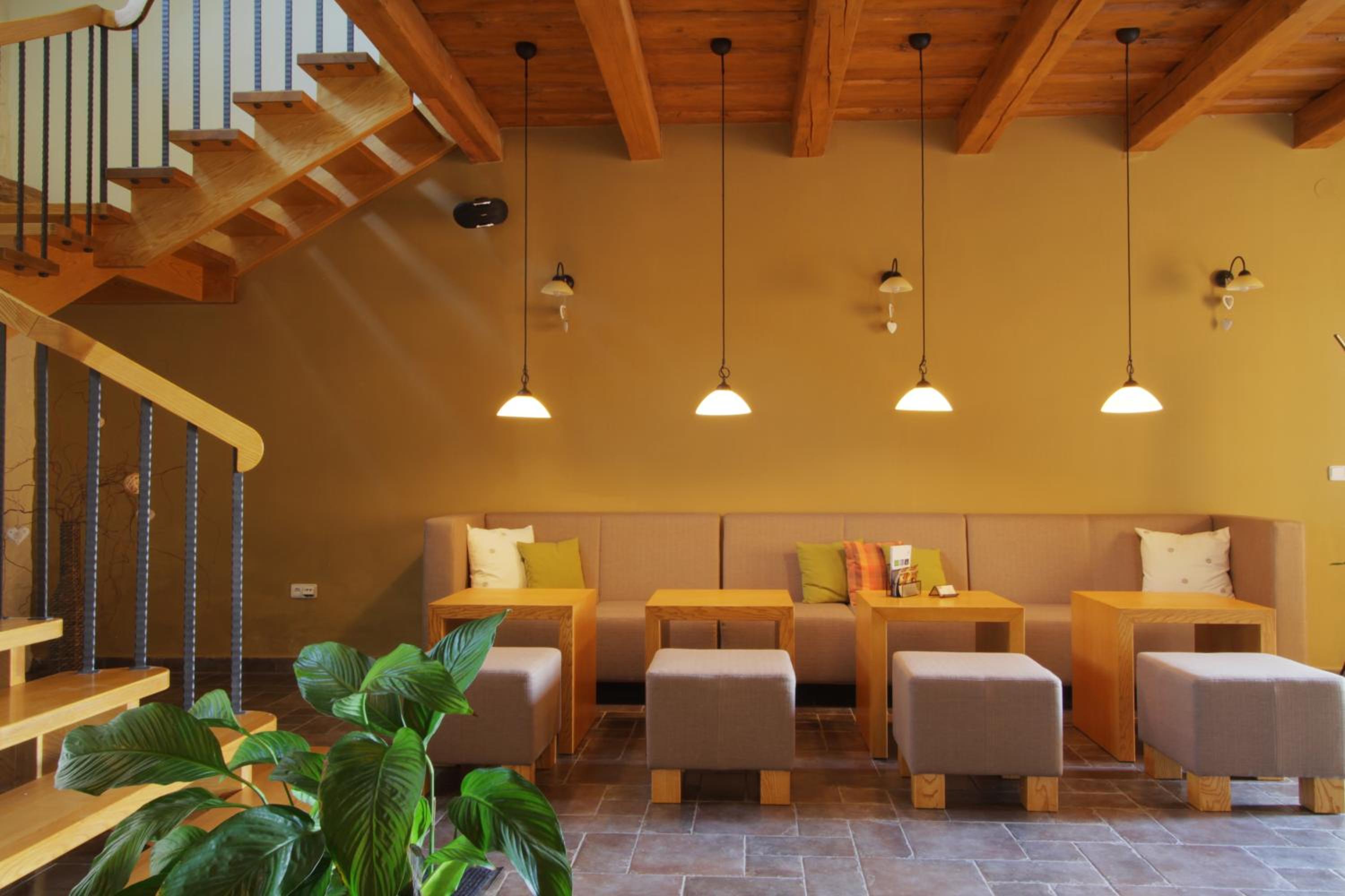 Experience cozy dining by the fireplace and unwind in the lounge at Hotel a restaurace Palfrig.