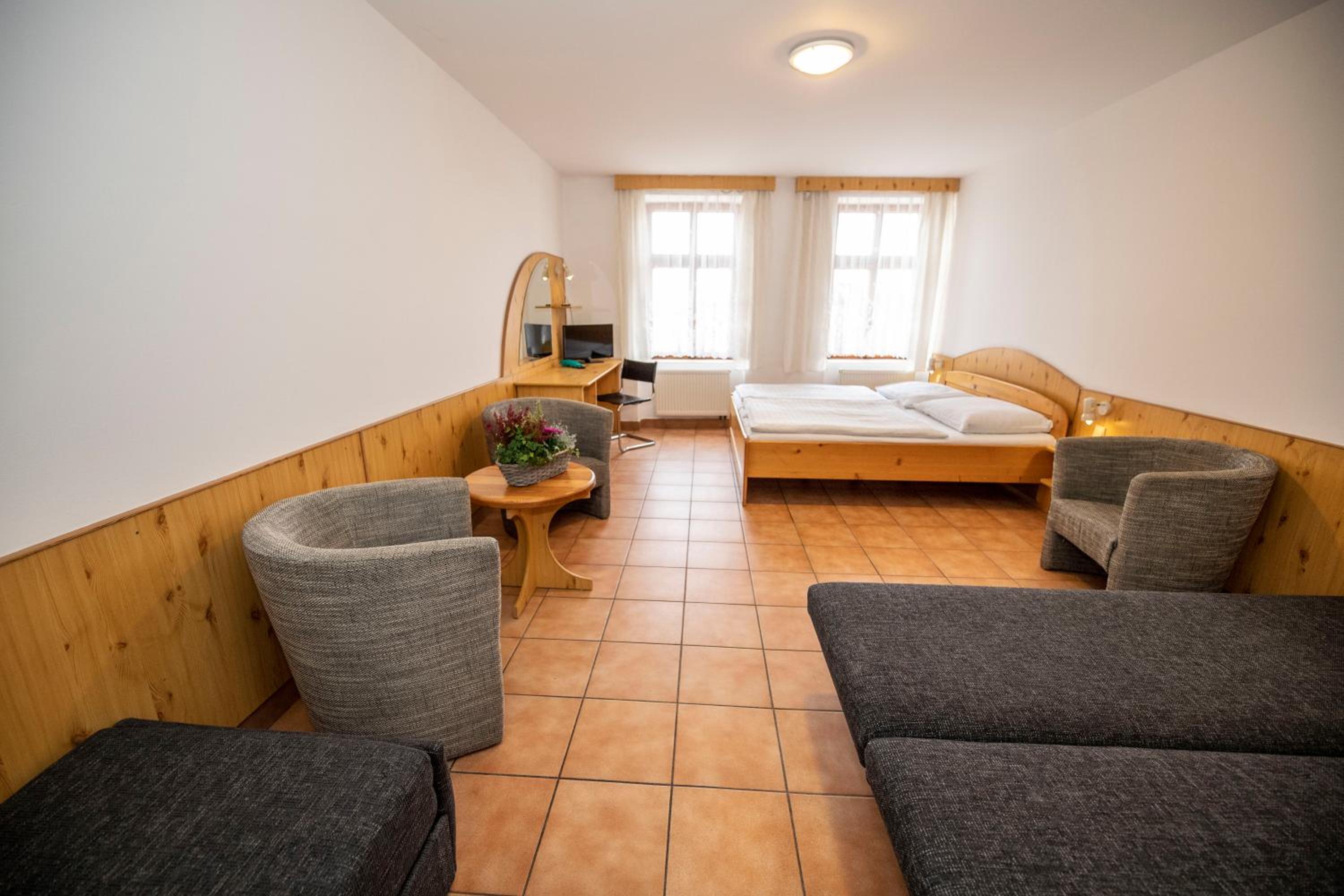 Located in the heart of Broumov, Hotel Praha is a historic gem, welcoming guests for over four centuries. Each room is equipped with a TV and private bathroom, with some featuring a cozy seating area. Indulge in a delicious buffet breakfast and dinner, offering a variety of dishes to satisfy your palate.