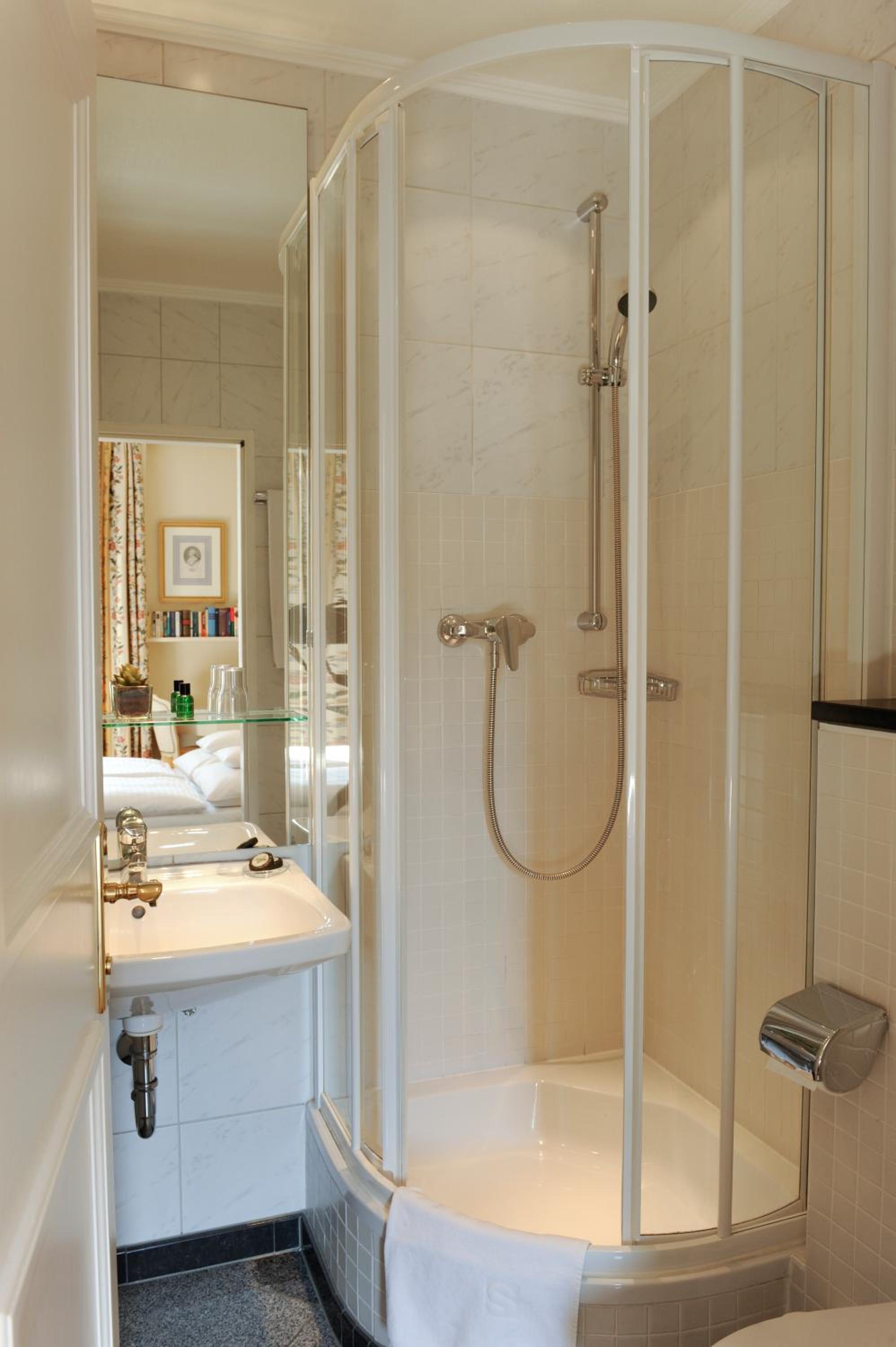 Ein wunderbar altmodisches kleines Hotel, in dem man sehr freundlich empfangen wird und sich gleich in den geschmackvoll eingerichteten Räumen wohlfühlt. V.a. der Salon mit Bar sowie der Frühstücksraum sind sehr gemütlich, die Zimmer ebenfalls stilvoll eingerichtet. Überall sind echte, dekorative Stiche aufgehängt. Die Lage im Lehel ist sehr günstig; U-Bahn und Tram sind ganz nah und verbinden einen in kurzer Zeit mit der Innenstadt und dem Hauptbahnhof. Sonderwünsche werden erfüllt, und das Personal ist durchweg sehr aufmerksam.