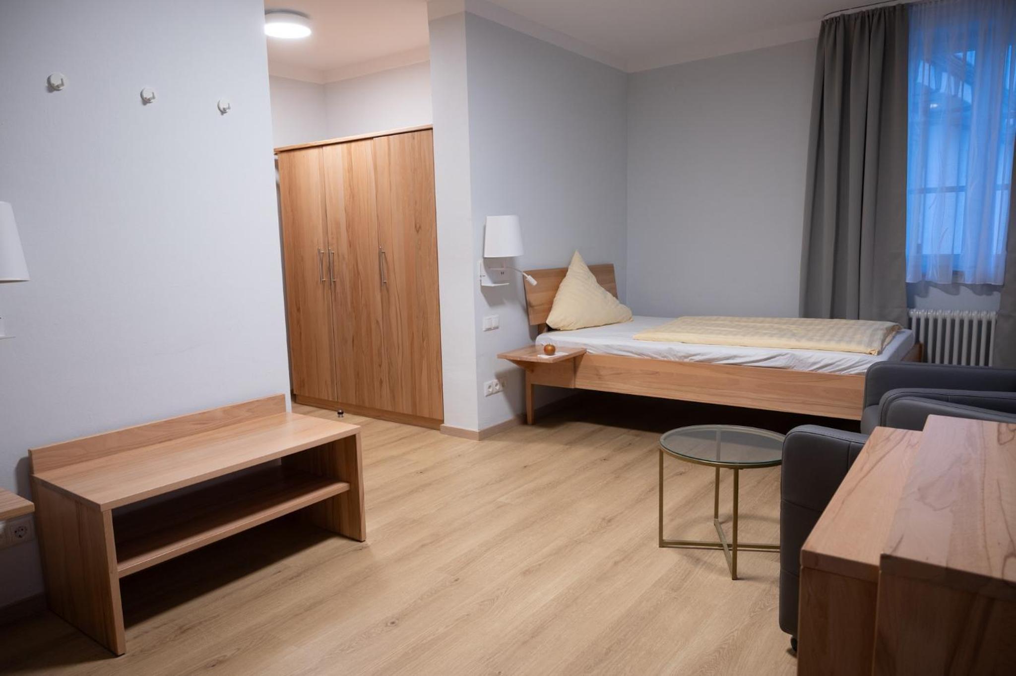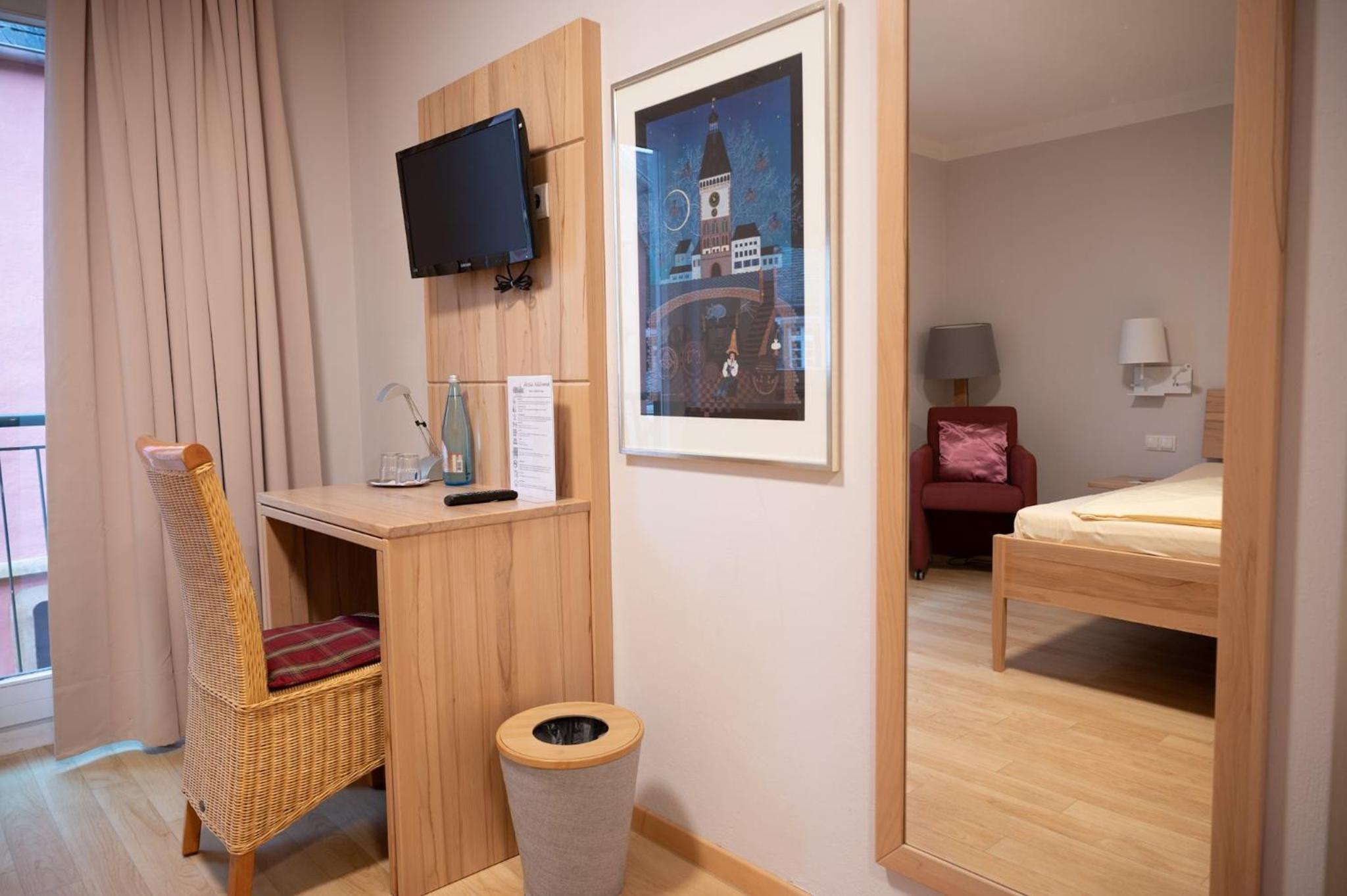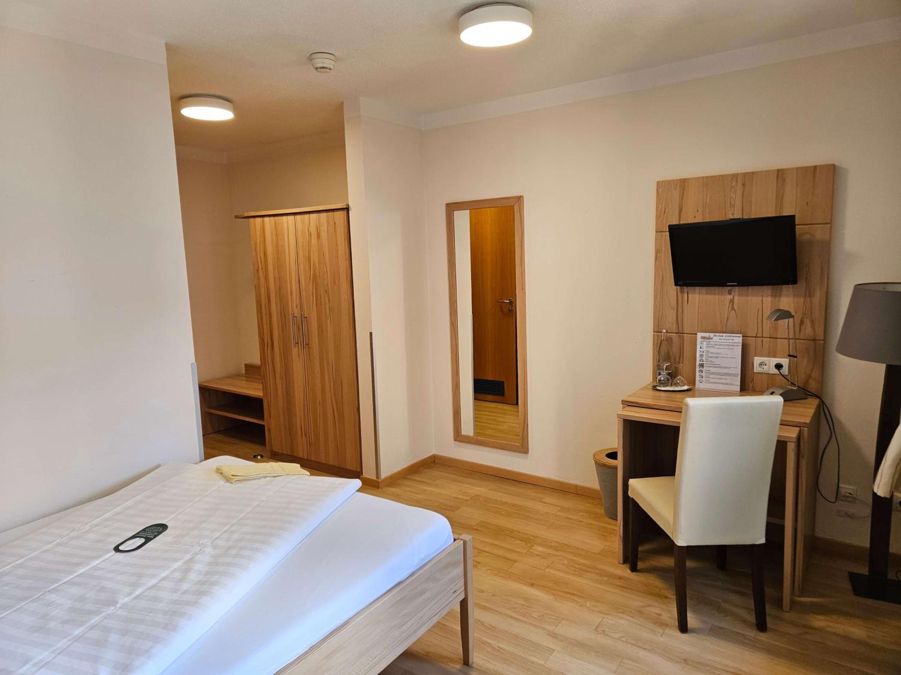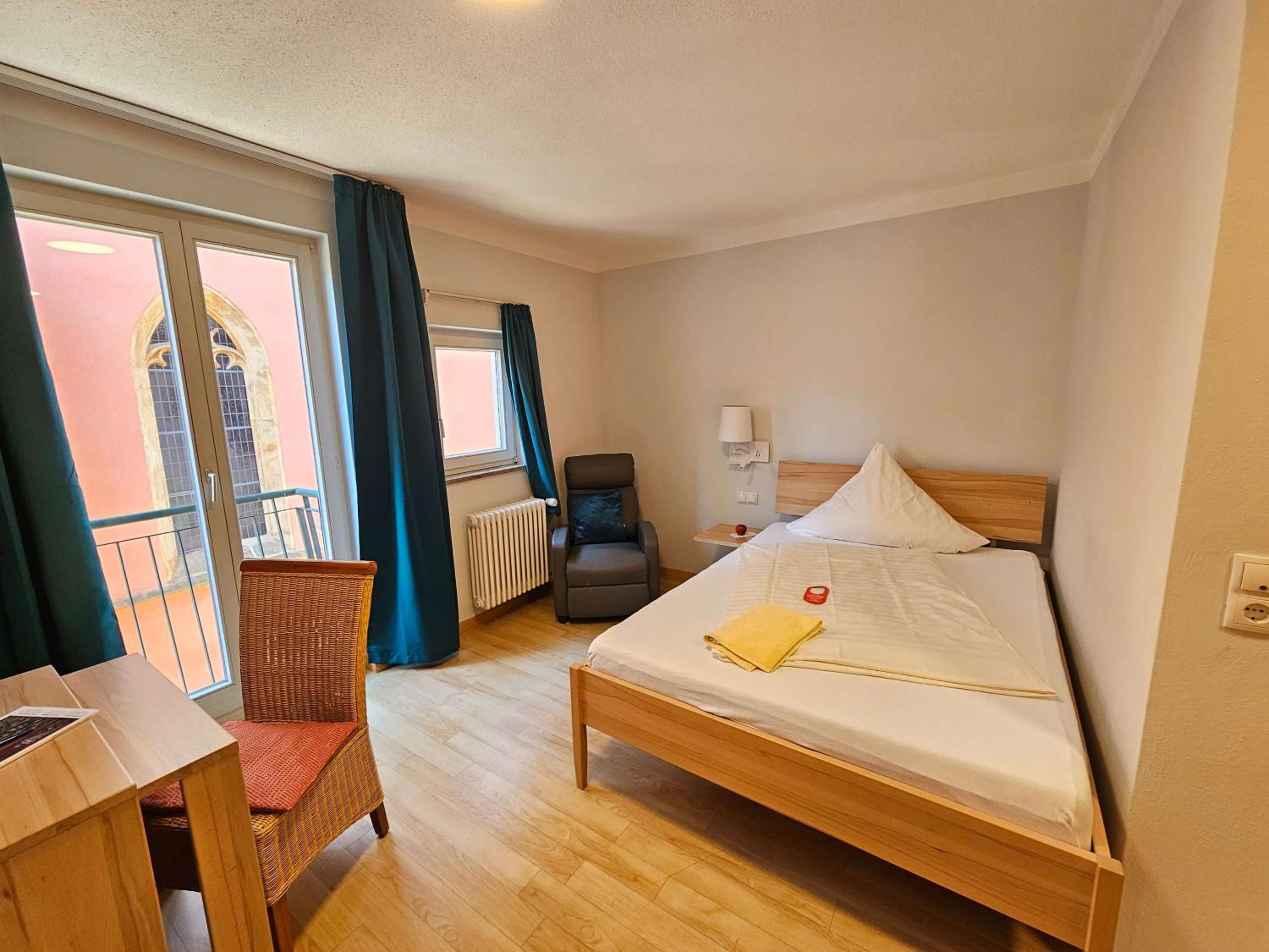 Sehr netter Empfang. Unser DZ war groß mit zwei französichen Einzelbetten, Badezimmer war ebenfalls sehr geräumig, alles sehr sauber, Einrichtung eher zweckmäßig ohne Schnickschnack, aber alles da, was man braucht. Für unseren Zweck war es optimal. Sehr schöner, heller Frühstücksraum im Atrium mit Glasdach und schönes Frühstücksbuffet. Kostenlose Parkplätze vorhanden. Zentrale Lage.