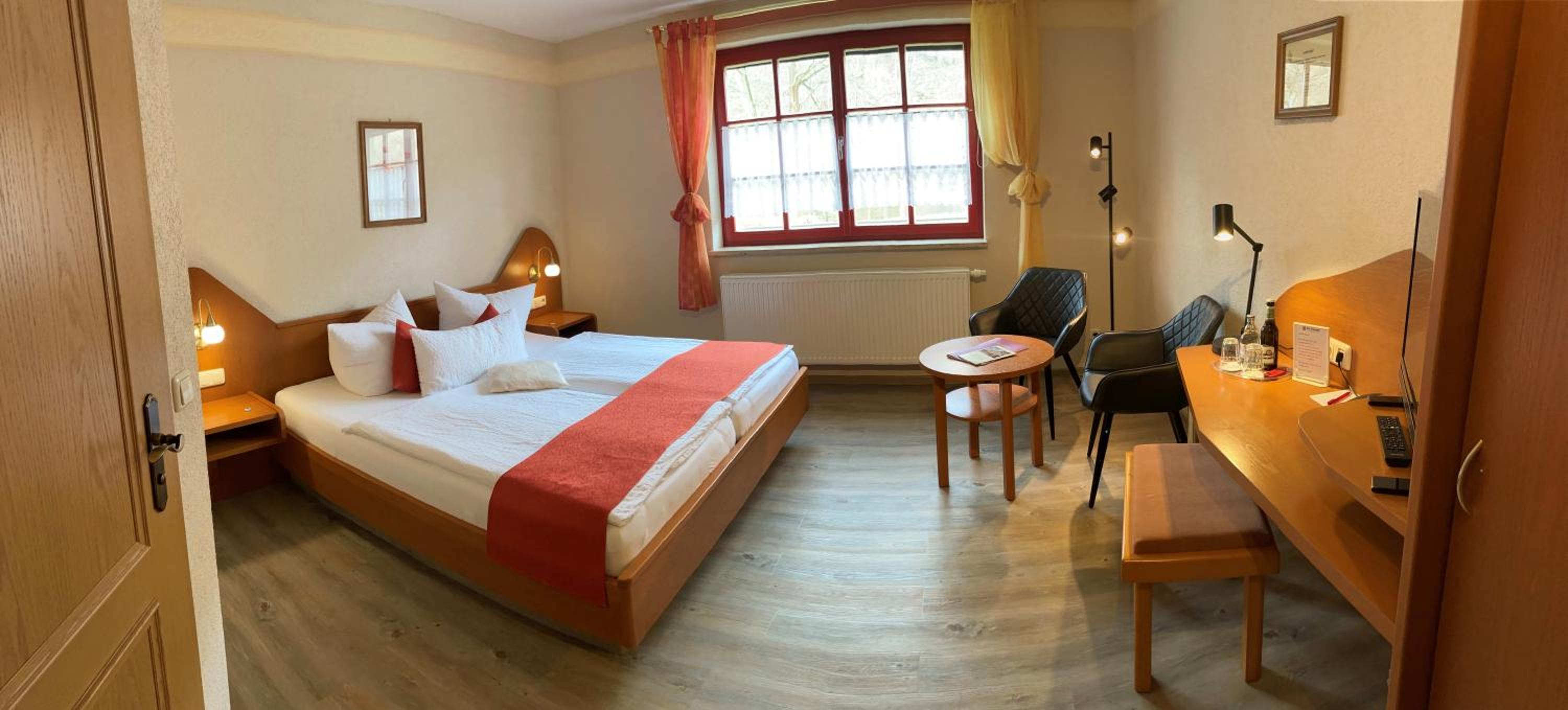 Die Unterkunft, Bedienung und die Freundlichkeit des Personals waren überragend. Besonders gefallen hat uns das Engagement sowohl in der Gaststätte, als auch beim Frühstück. Es hat uns sehr gut gefallen.