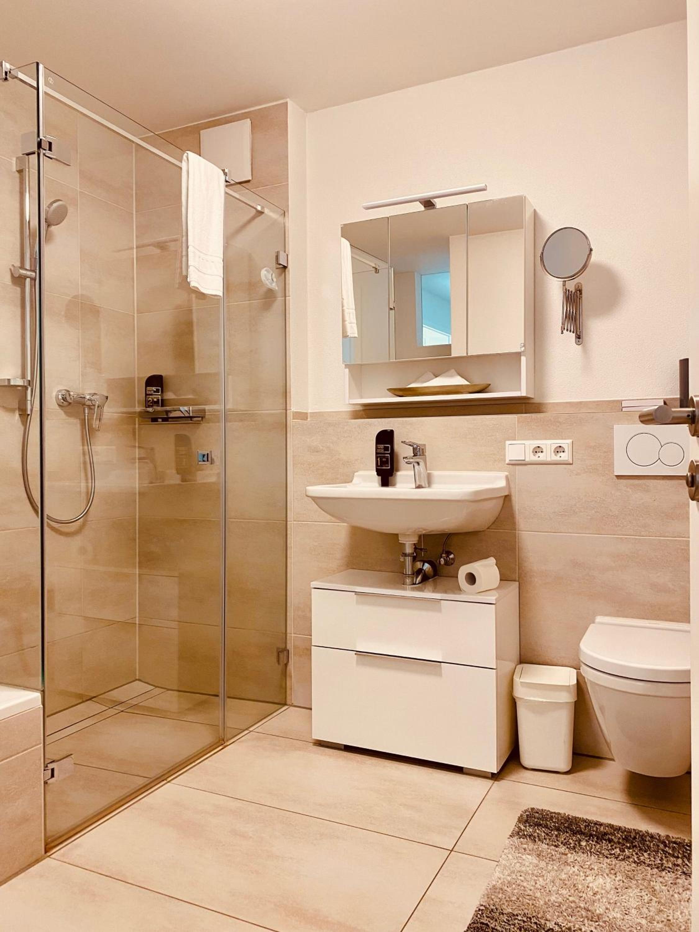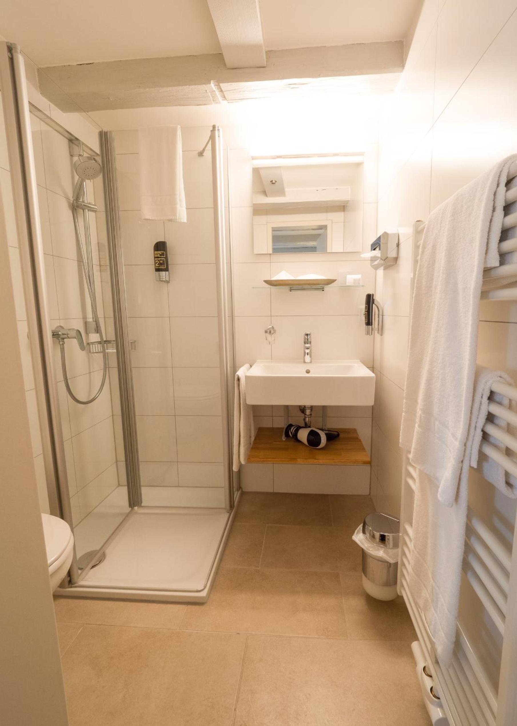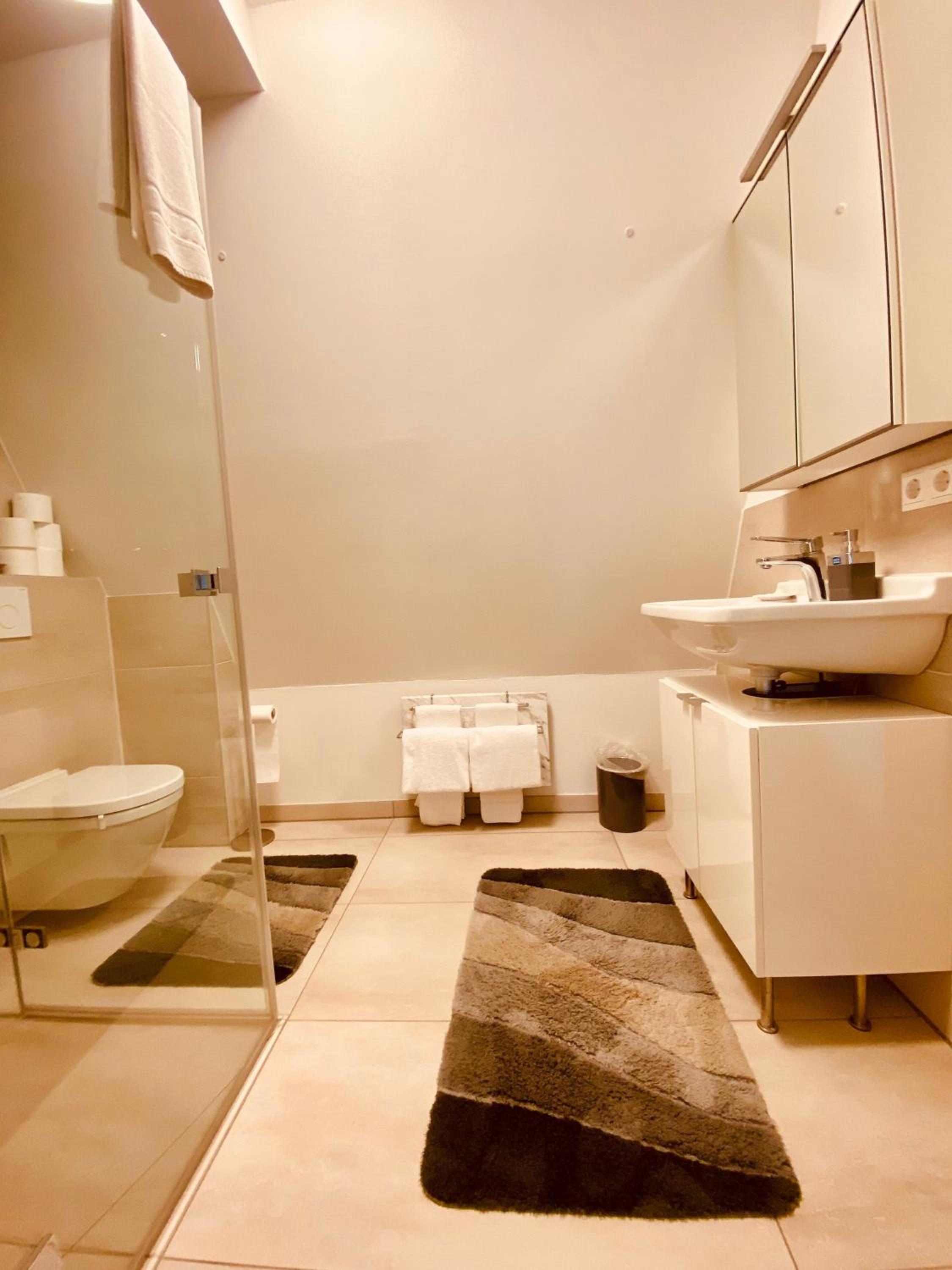 Das Zimmer insgesamt war groß. Das Bad jedoch sehr eng (Toilette) und kaum Ablagemöglichkeiten. Der Fußboden des Zimmers war nicht sauber; hier waren Haare und Flusen zu finden.