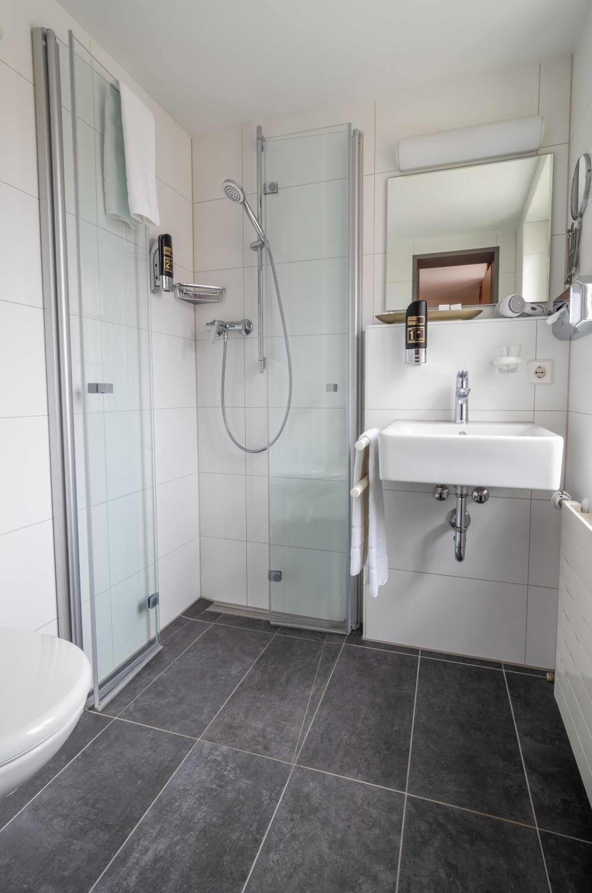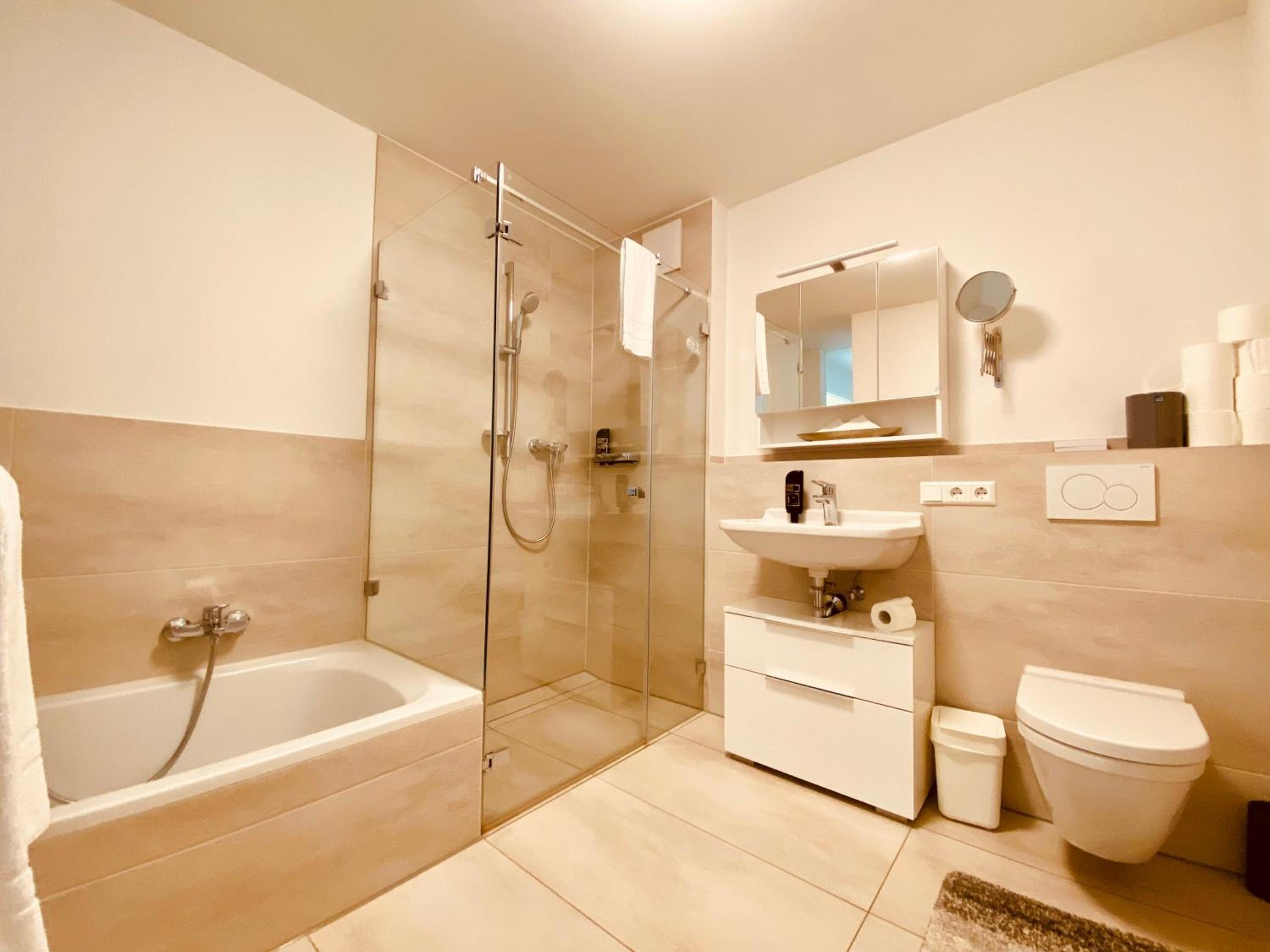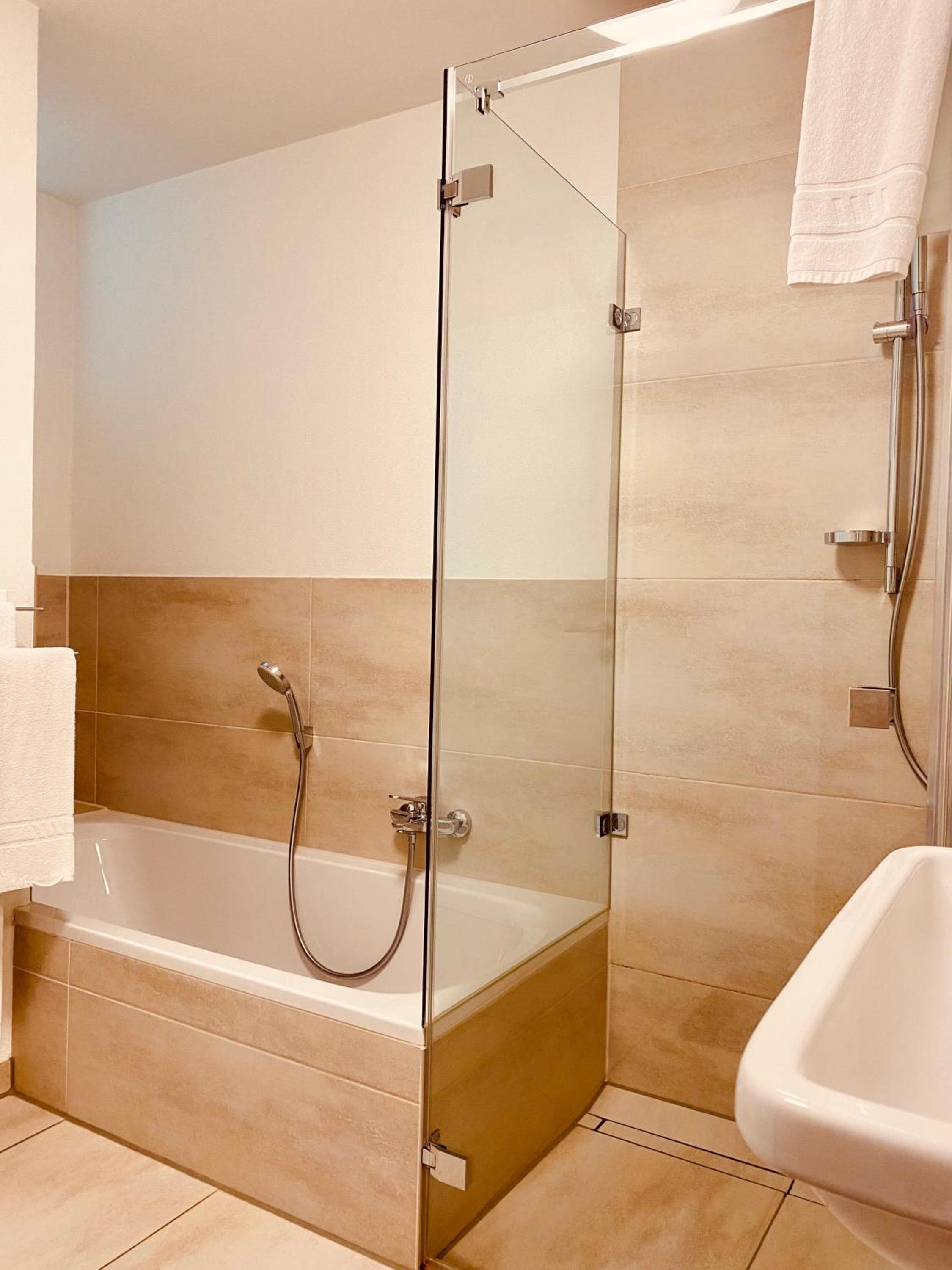 Das Zimmer insgesamt war groß. Das Bad jedoch sehr eng (Toilette) und kaum Ablagemöglichkeiten. Der Fußboden des Zimmers war nicht sauber; hier waren Haare und Flusen zu finden.