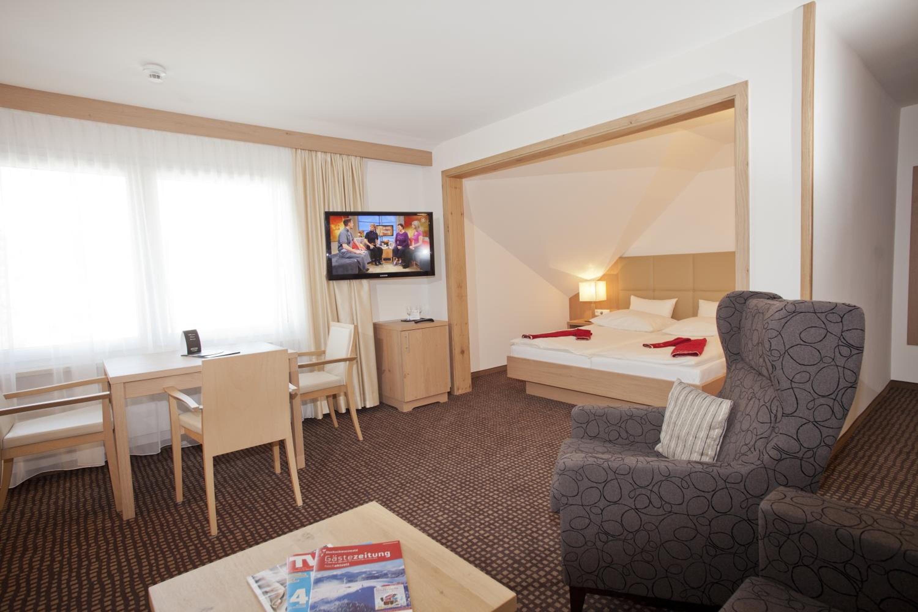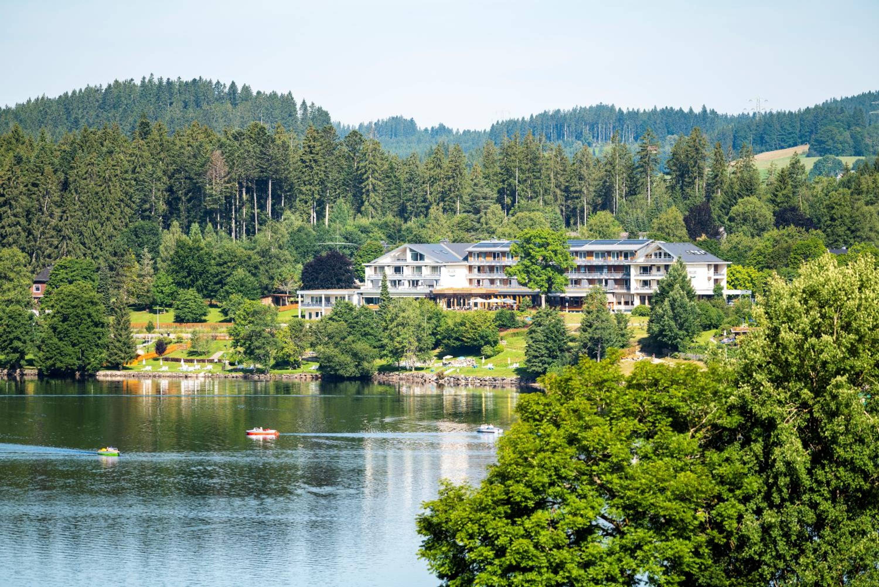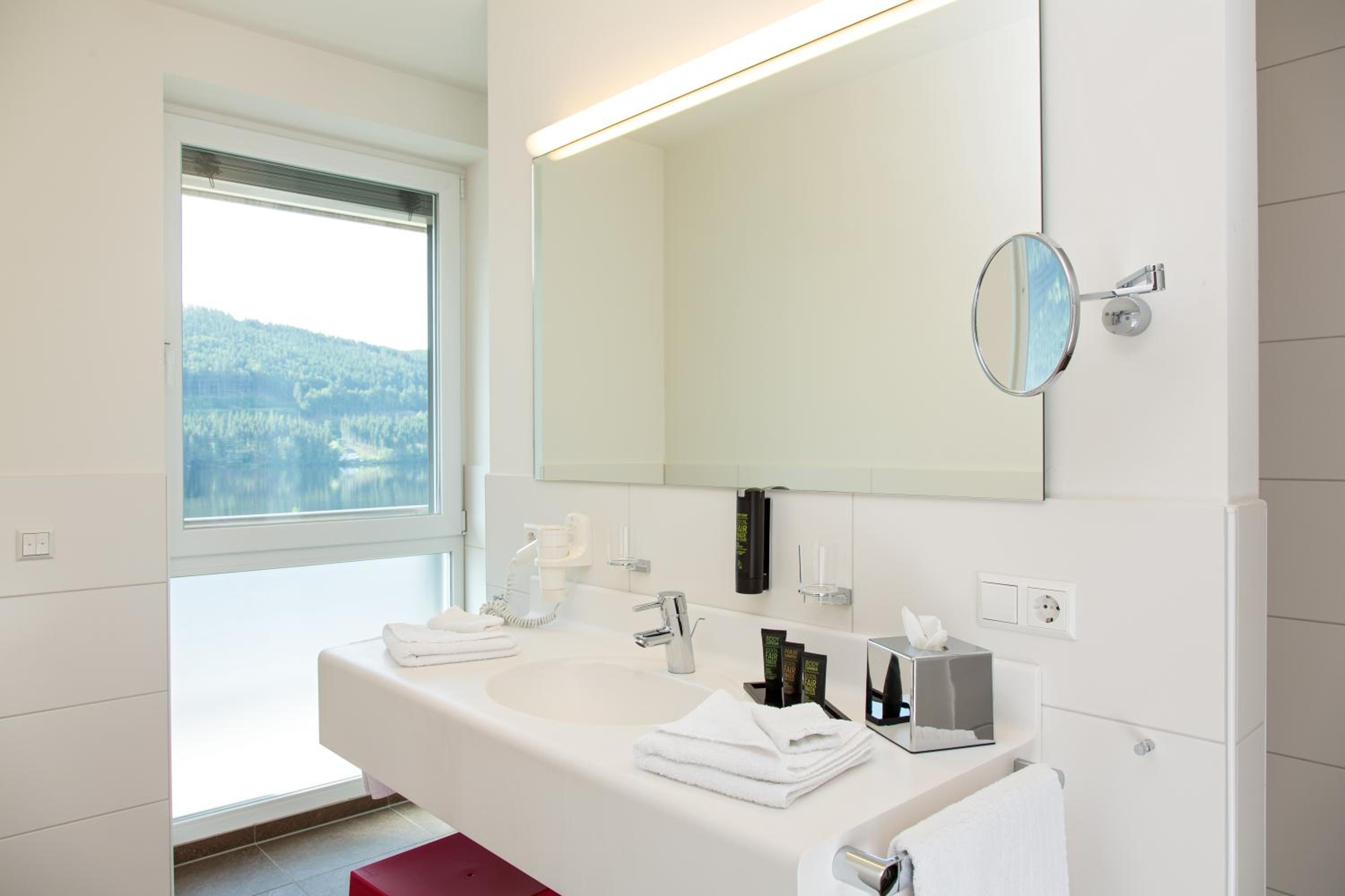 Breathtaking Views: Enjoy spacious, modern rooms with stunning views of Lake Titisee or the forest, each equipped with satellite TV and a private bathroom.