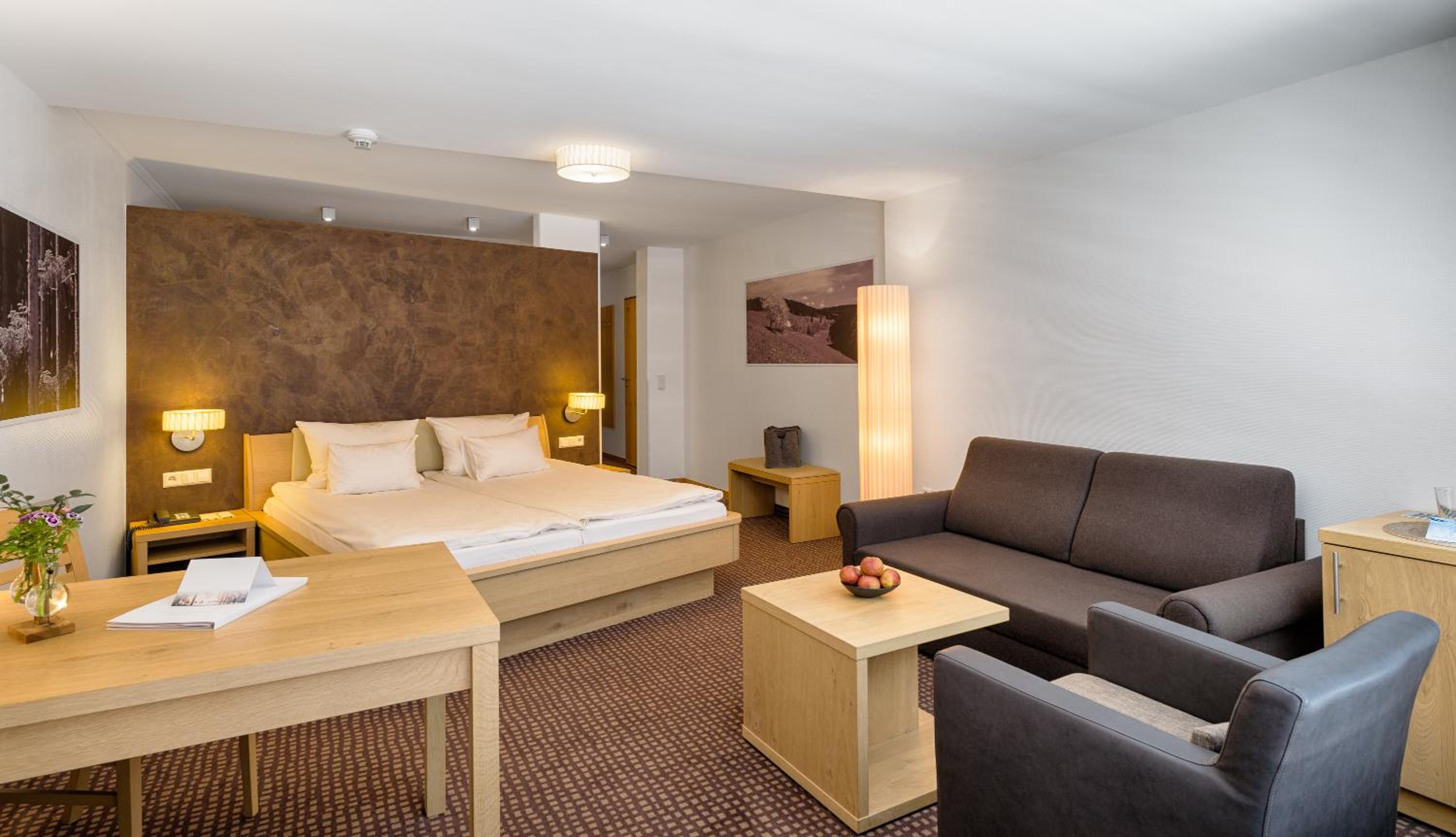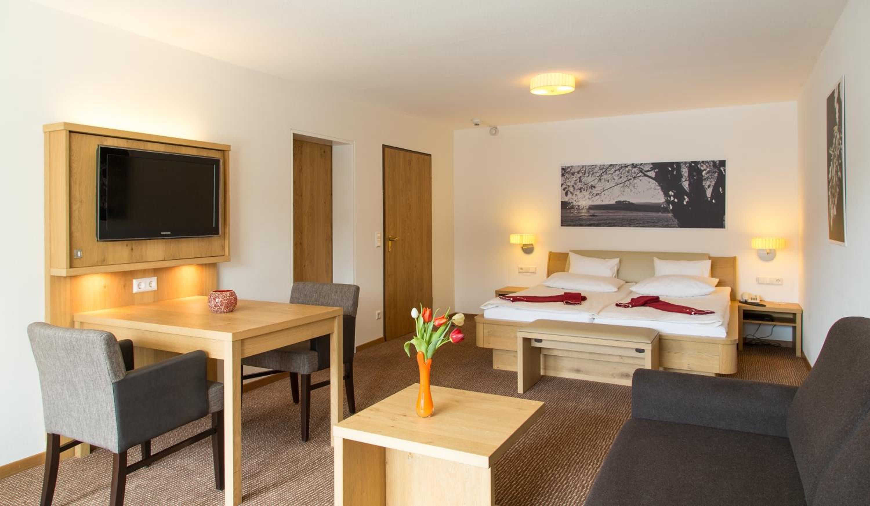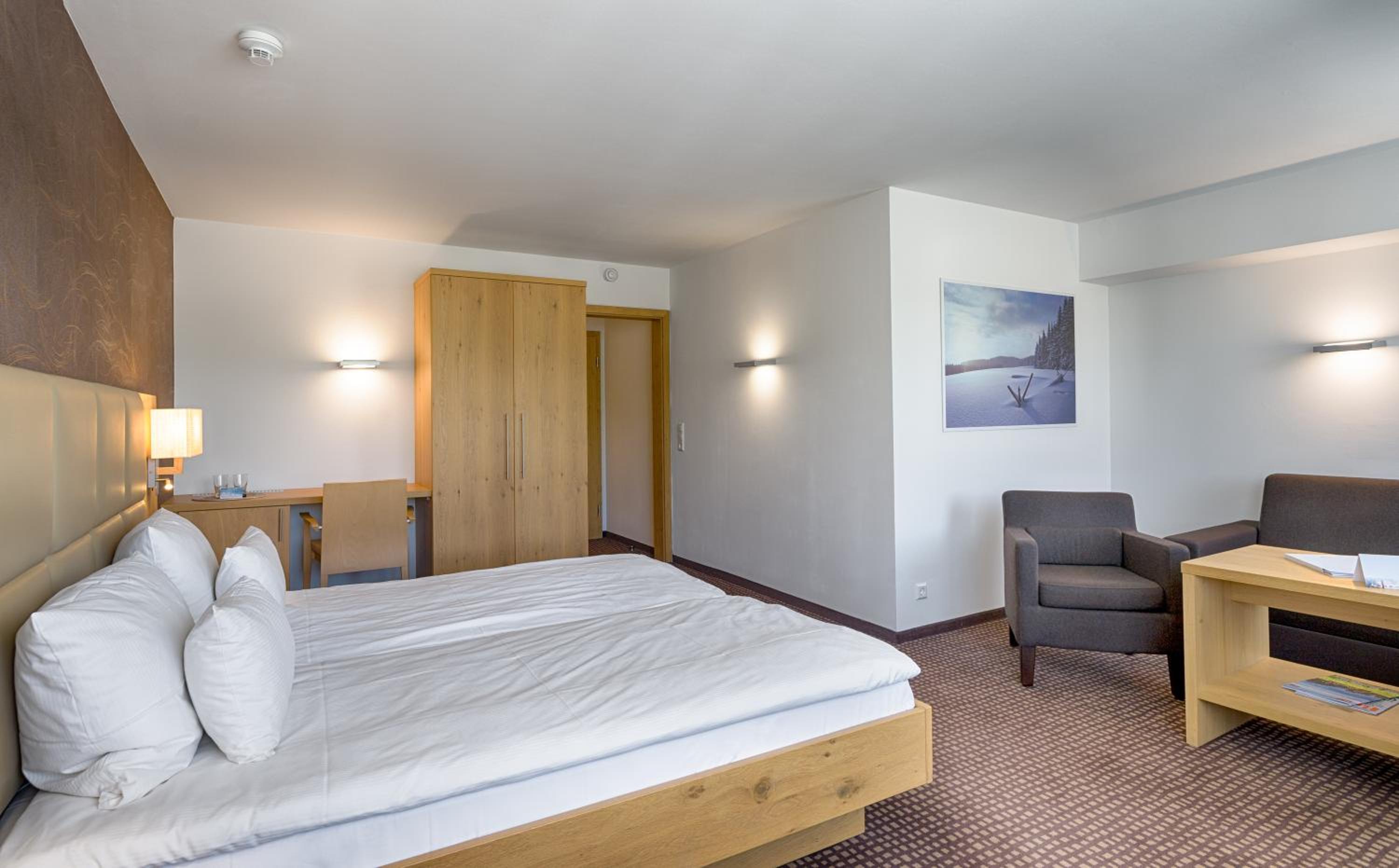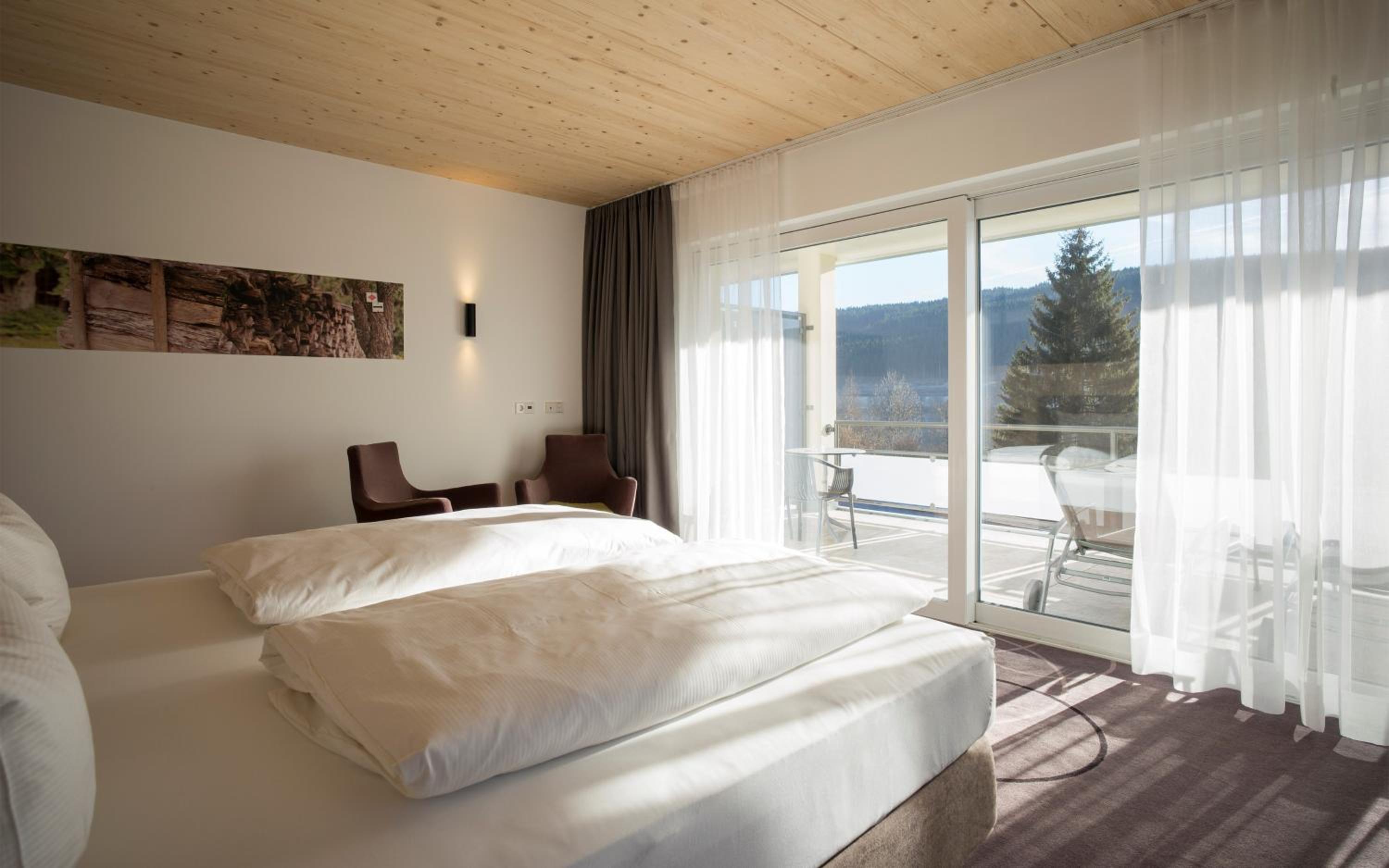 Breathtaking Views: Enjoy spacious, modern rooms with stunning views of Lake Titisee or the forest, each equipped with satellite TV and a private bathroom.