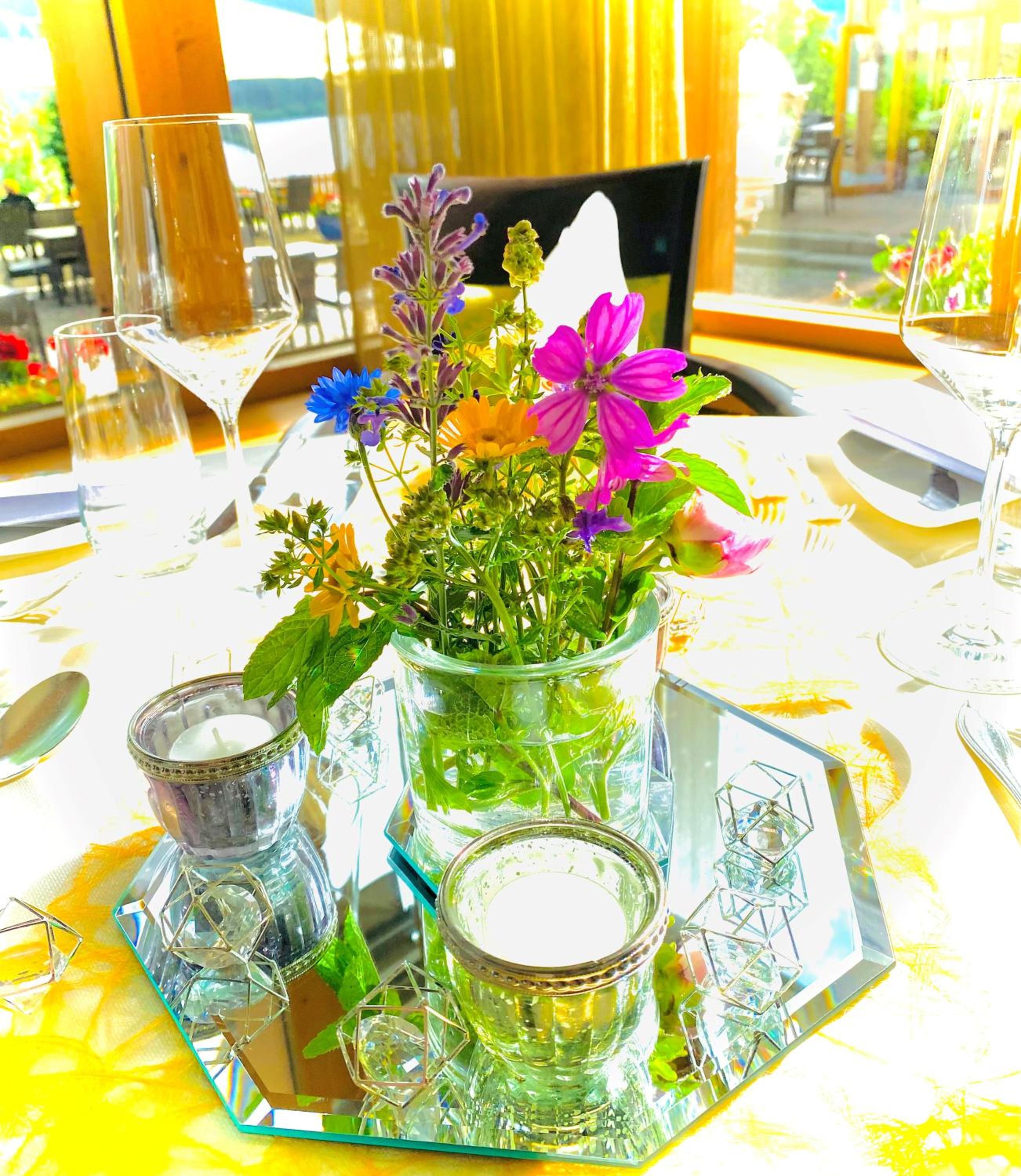 Keine frischen Blumen auf den Tischen,keine
