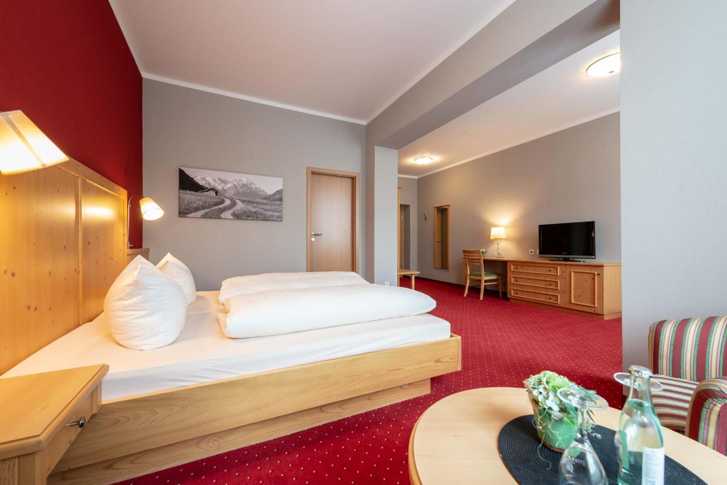 You can use the Sparkasse garage just next door to park, (discounted 8,5 € per exit, paid at the hotel). The hotel is in the town centre. The train station is less than 10 minutes by foot, easy access to Garmisch-Partenkirchen and München, for example. Would love to stay here again.