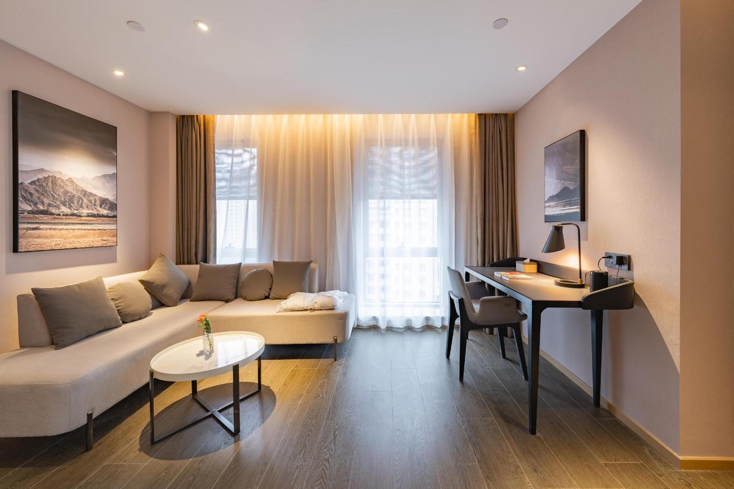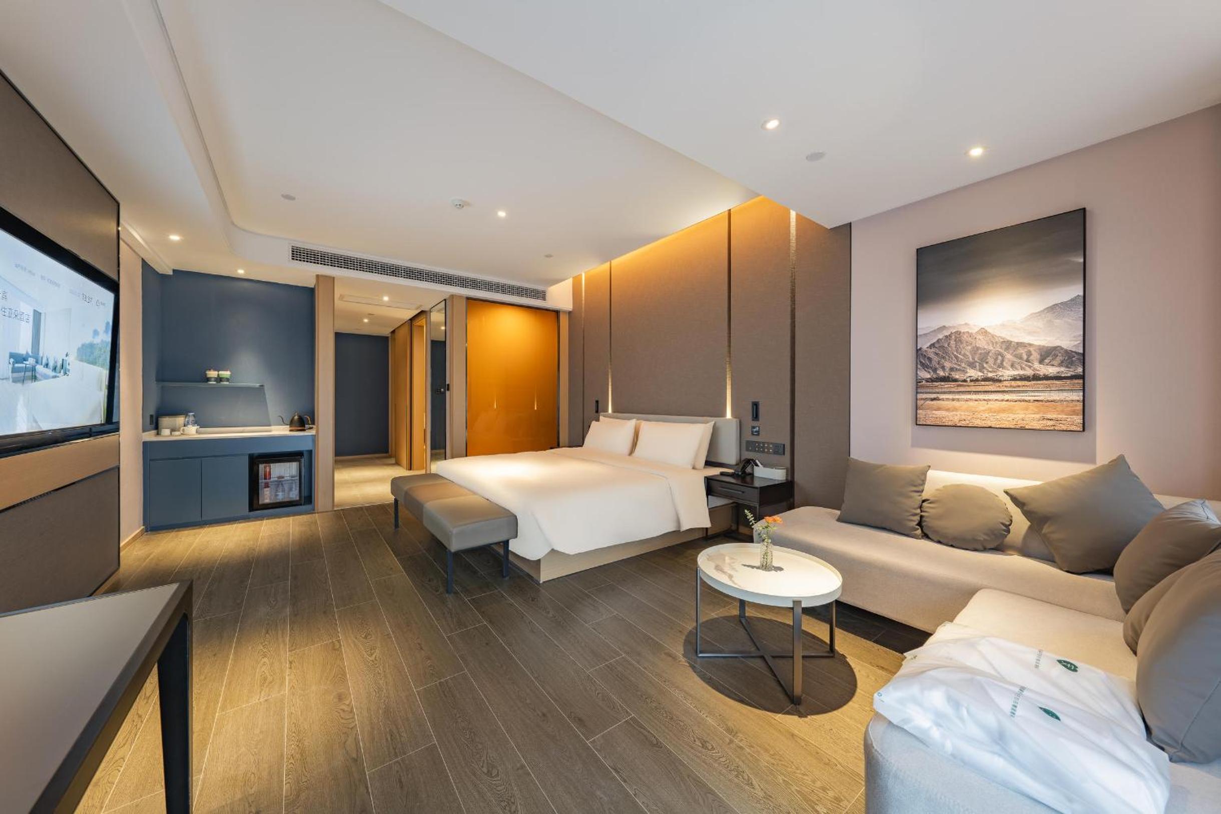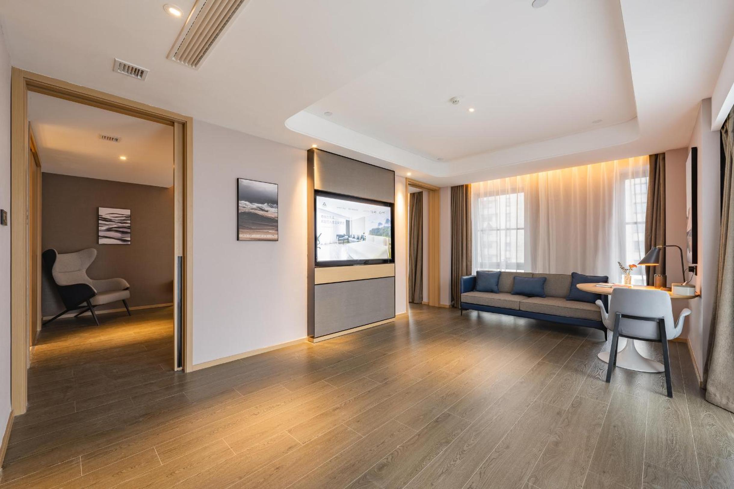 At Atour Hotel Hai an City Government, guests can enjoy spacious rooms with a comfortable seating area, TV, air conditioning, and a convenient desk for work or leisure.