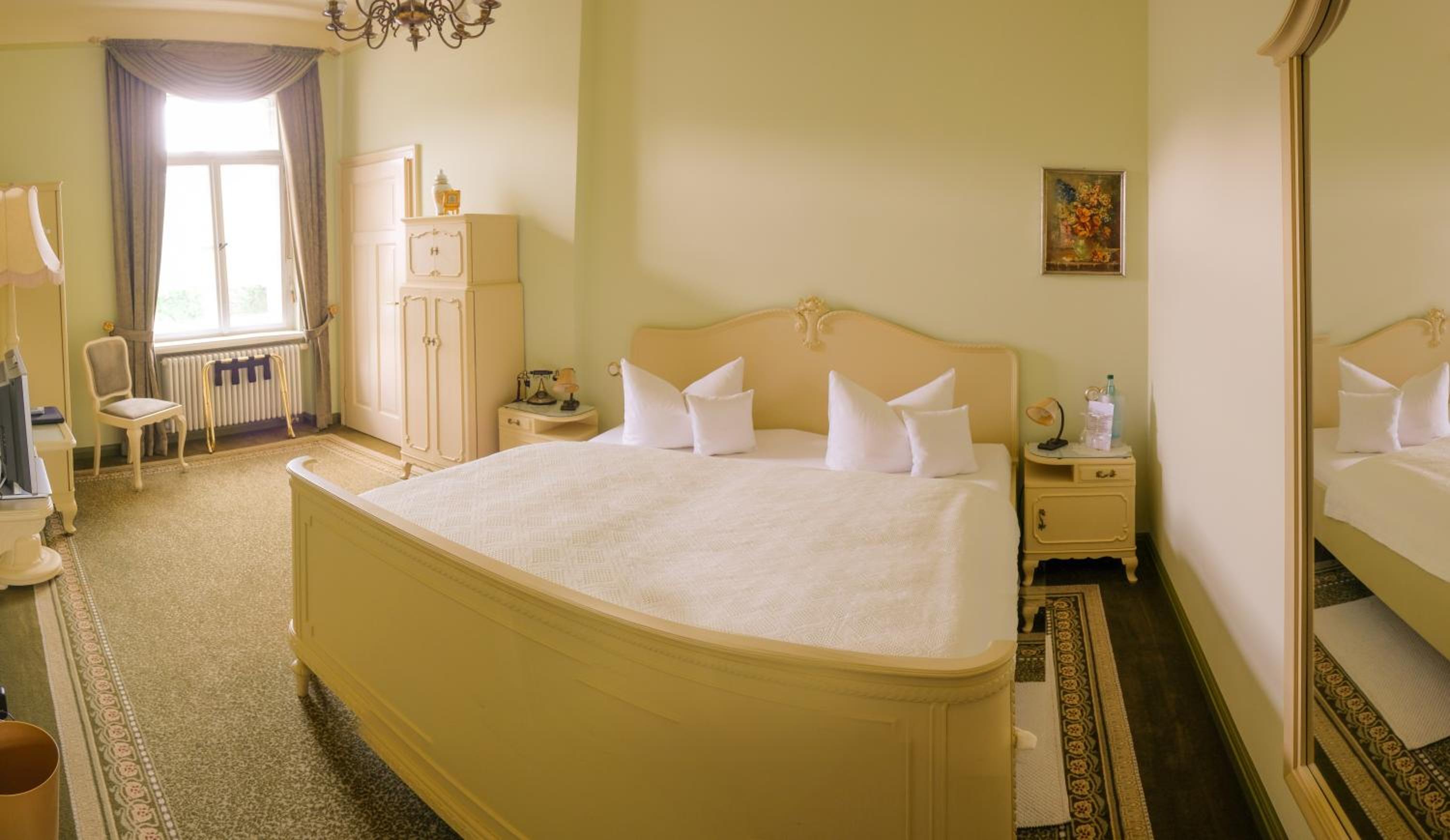 Sehr ungewöhnlich gute Unterkunft, Jugendstil und Königin Luise wirken in der großzügigen Villa sehr angenehm. Frühstück in hellen Räumen, wintergartenflair, dazu ein wunderschöner Garten und superfreundliche und aufmerksame Bedienung!
