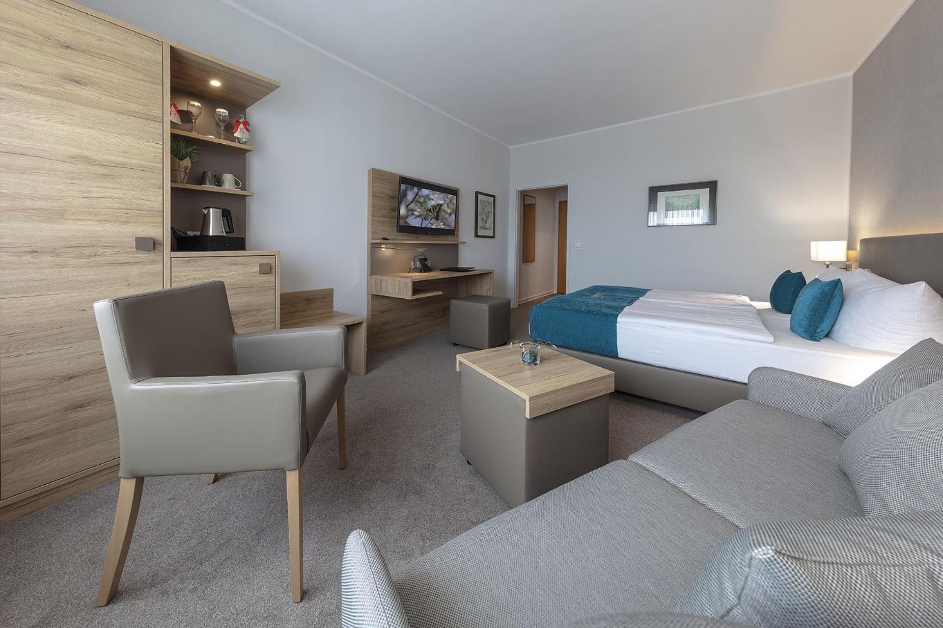 Zimmer ist geräumig mit bequemen Sesseln. Toll, mit Wartburgblick . Immer freundliches, hilfsbereites Personal.