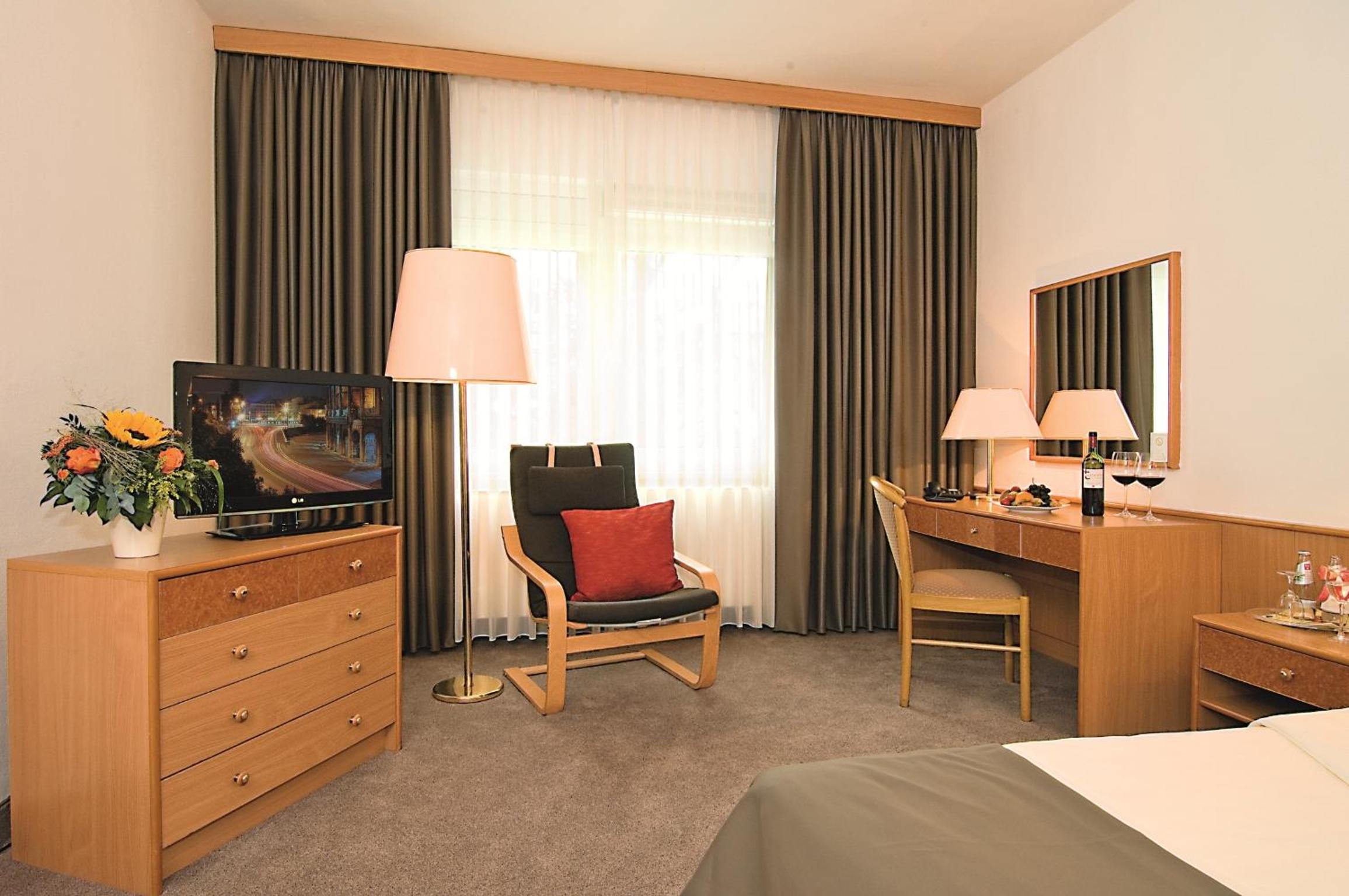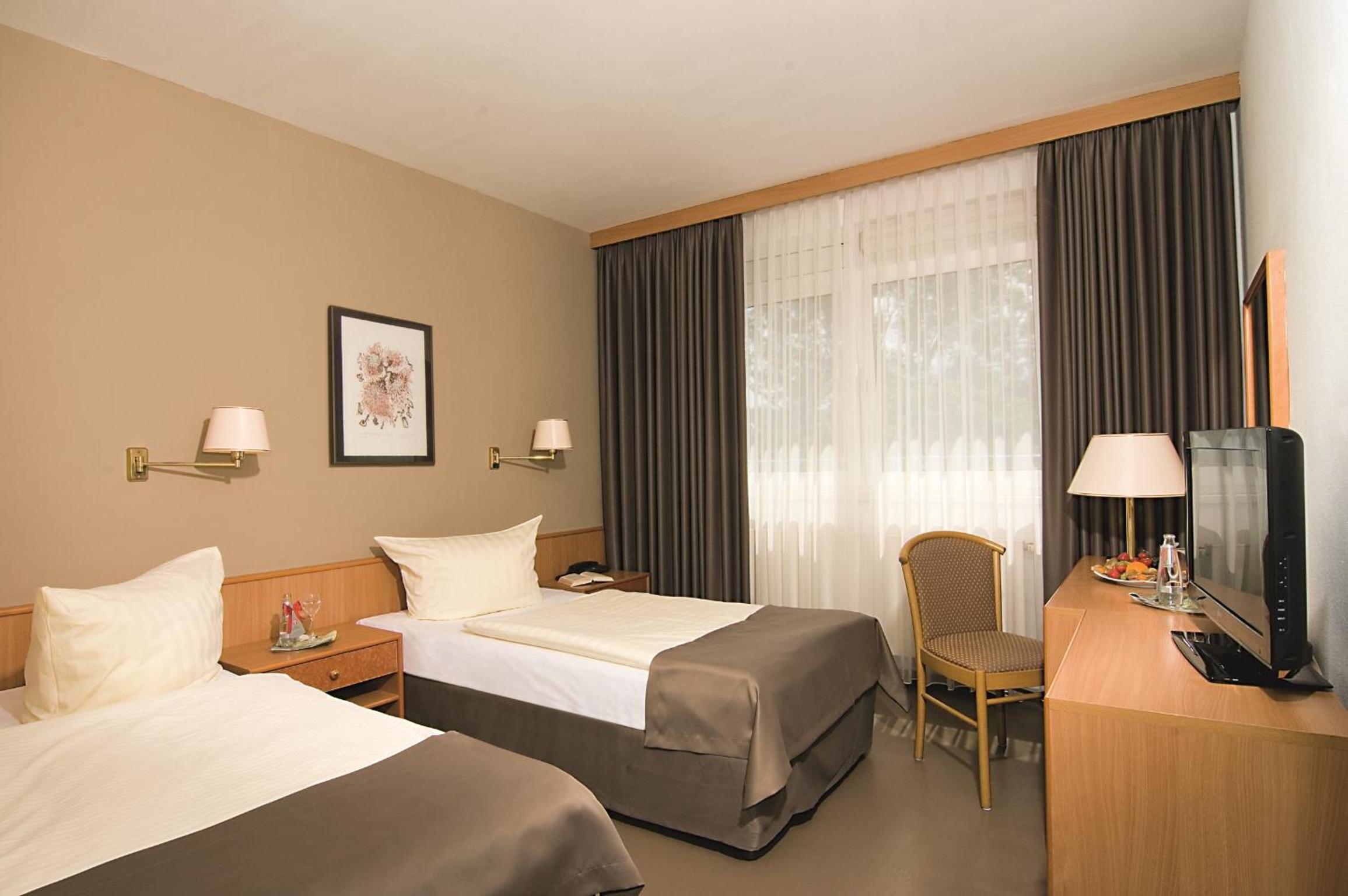 The rooms at Hotel Logotel Eisenach are generously sized and elegantly designed, offering a relaxing retreat. Each room is equipped with modern amenities including a flat-screen TV and a private bathroom.
