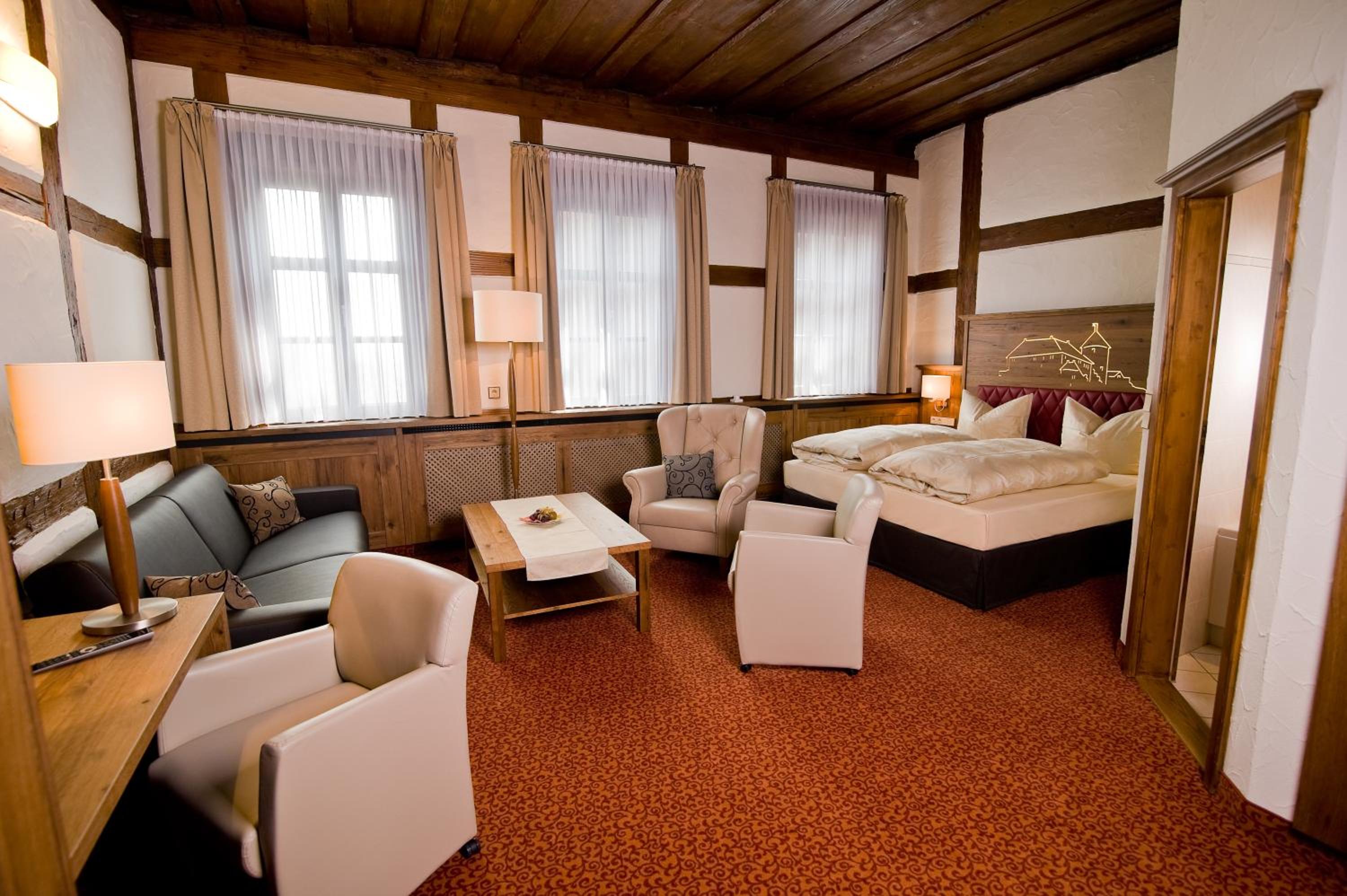 The Burg Colmberg Hotel offers a unique experience, blending traditional elegance with modern amenities. The historic castle setting dating back over 1000 years provides a charming backdrop for your stay, while the free Wi-Fi ensures you stay connected throughout.