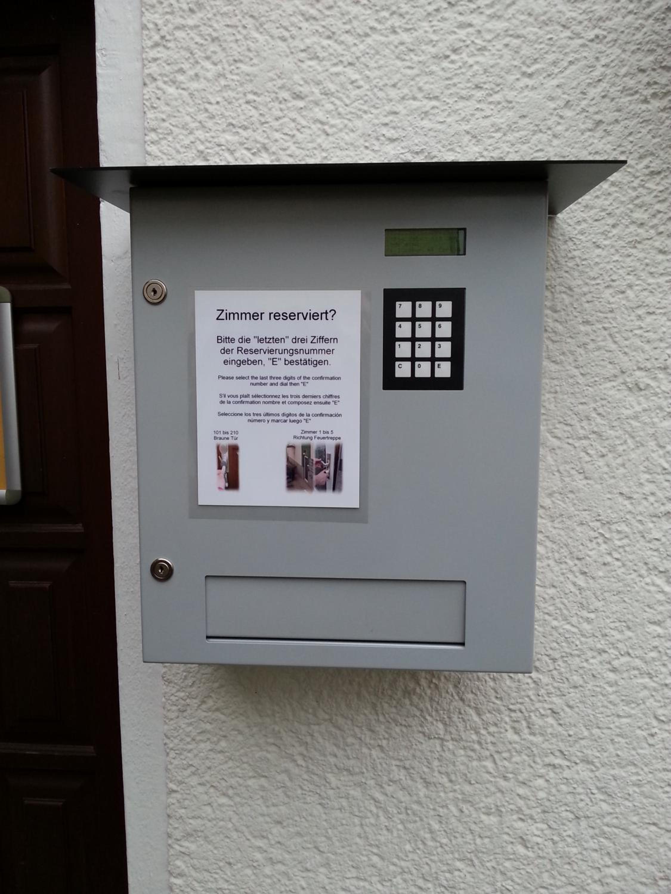 Please note that reception is not always staffed. When it is not staffed, please use the combination safe at the main entrance to retrieve your key. You need the last three digits of your reservation number - then an 'E' (Example: 248E). Further information is available on the paper flags on the key. In case you have booked several rooms, please enter the reservation numbers in ascending order starting from the smaller/smallest number.