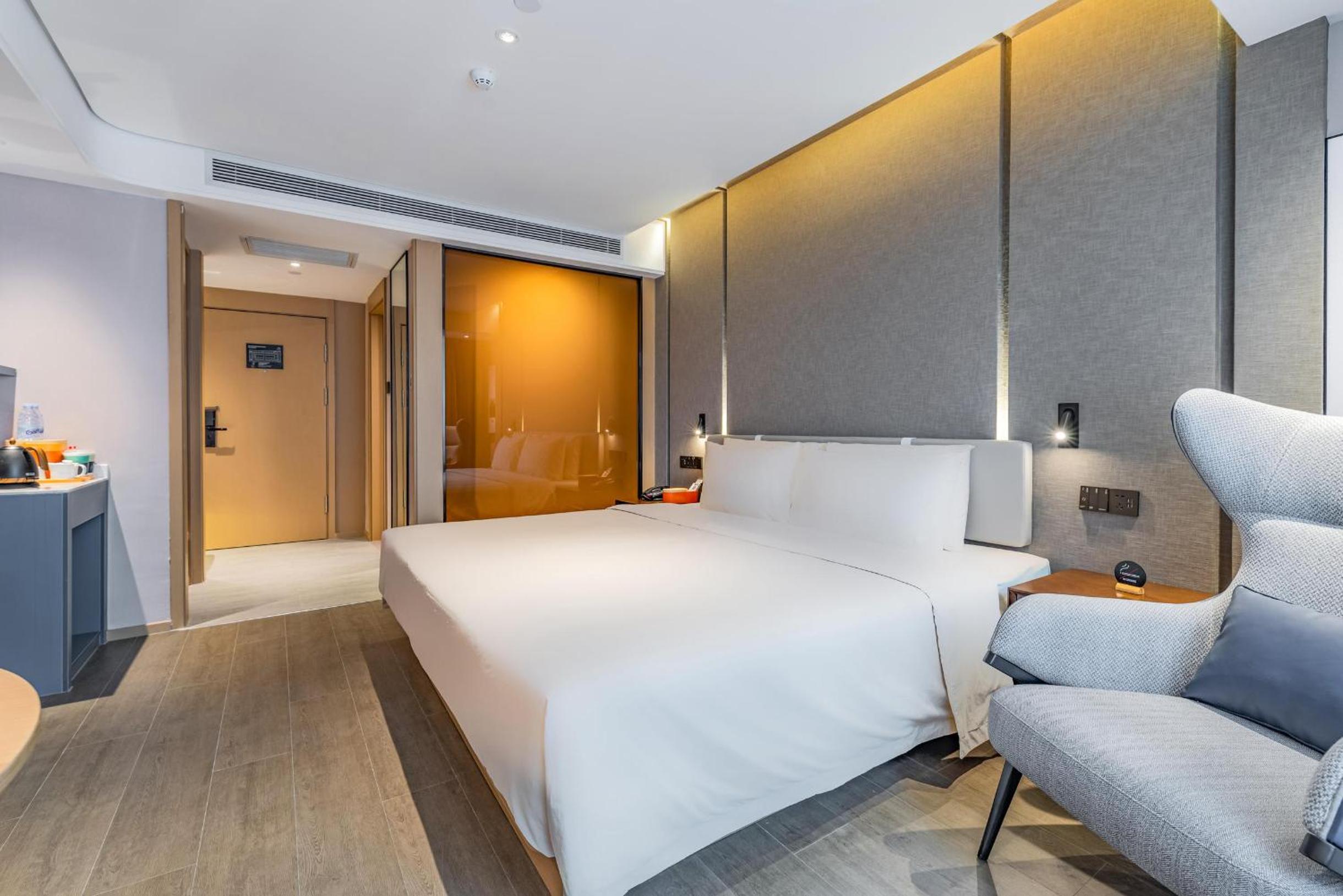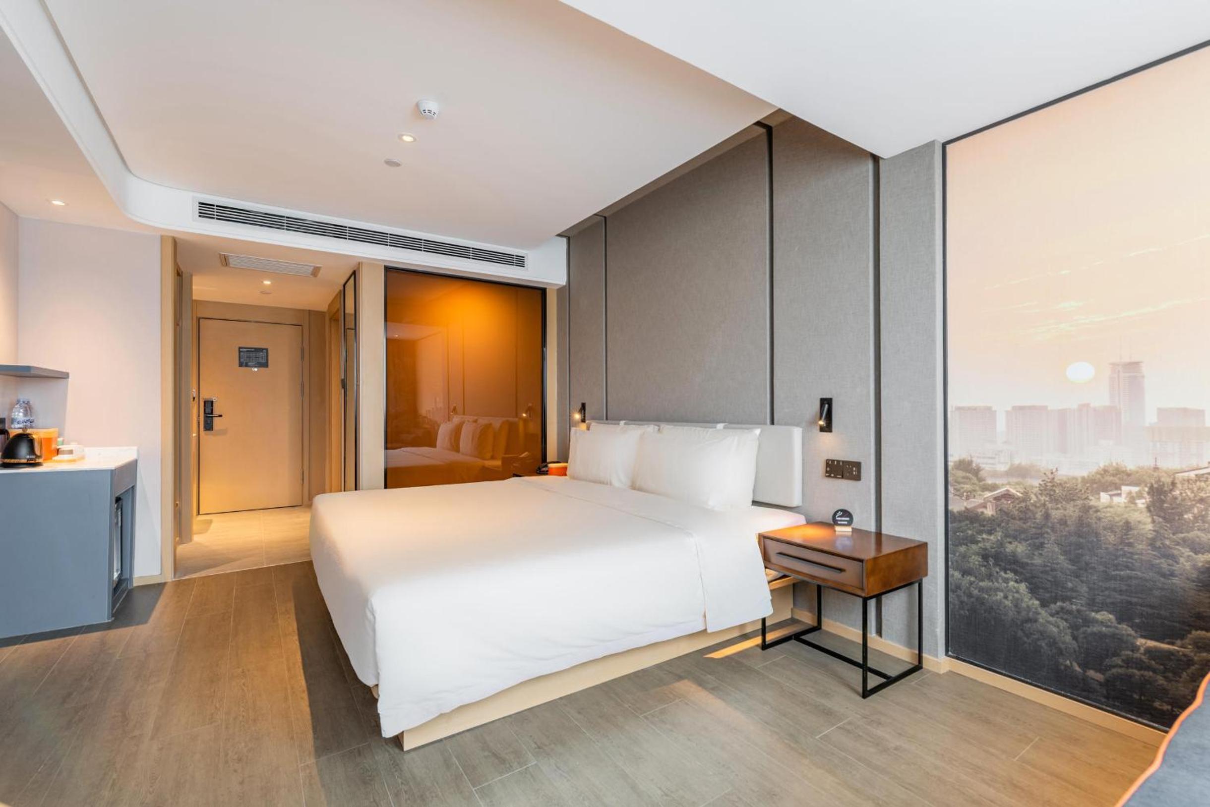 The staff were very keen to help and were very outstanding. Even though we didn't know a word of Chinese, they were able to communicate with us through translator apps. It is a very convenient location for good local food and friendly locals. The surrounding street comes alive with food in the evenings! The buffet in the restaurant has a lot of variety. We looked forward to it every morning. The bed was super comfortable! (There is a robot roaming the hallways and can use the elevator by itself!)
