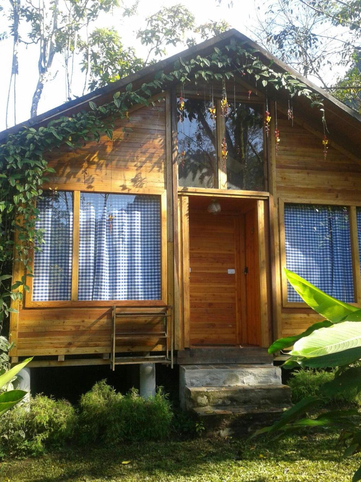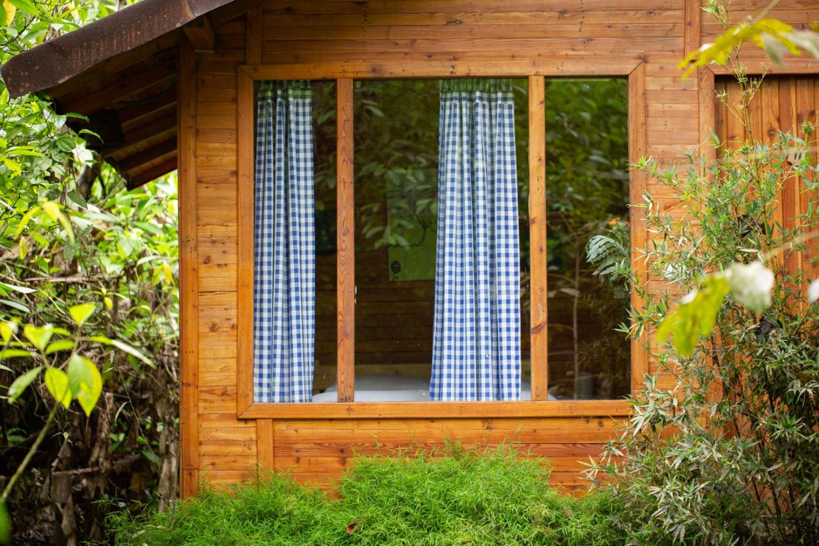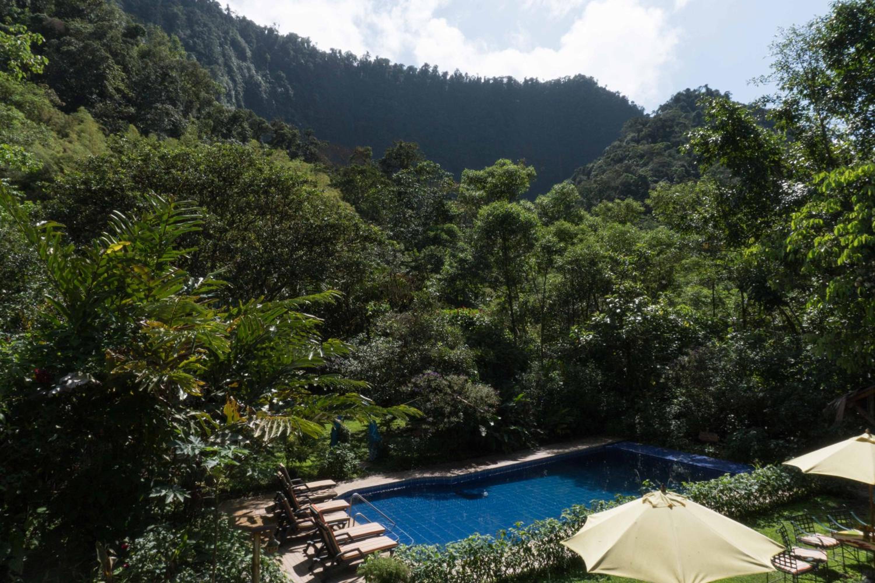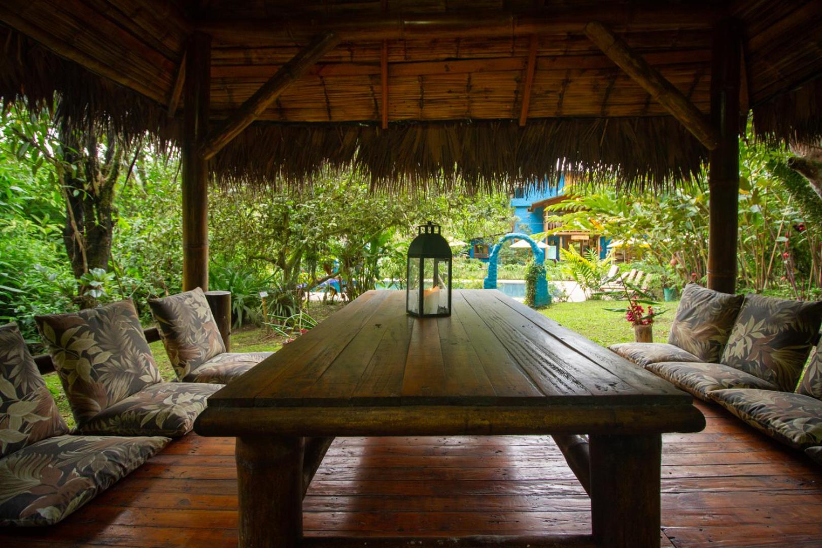 Escape to Hotel El Abrazo del Arbol, a serene oasis in Mindo. Relax in the lush garden, take a dip in the outdoor pool, or unwind in the sauna.