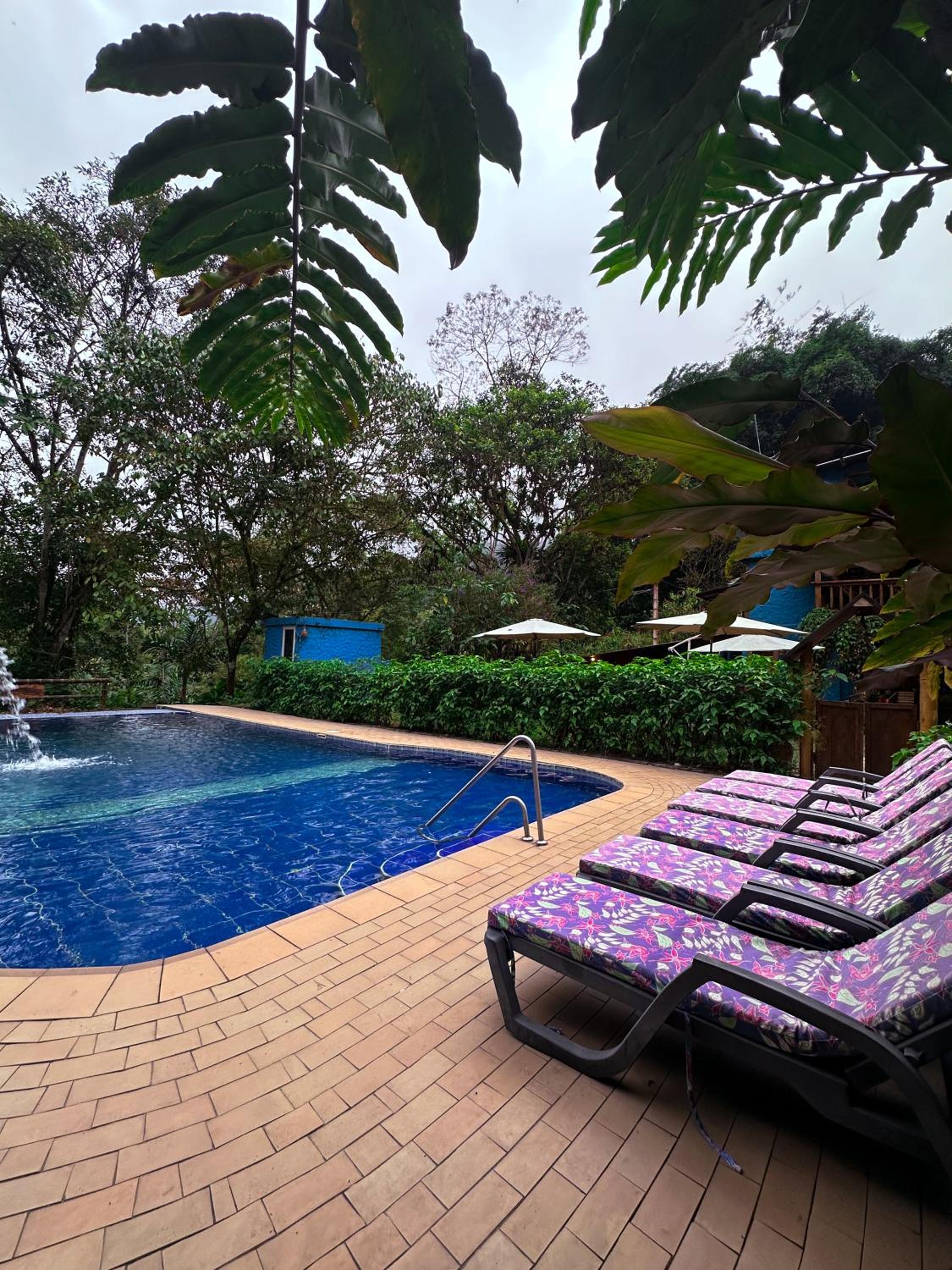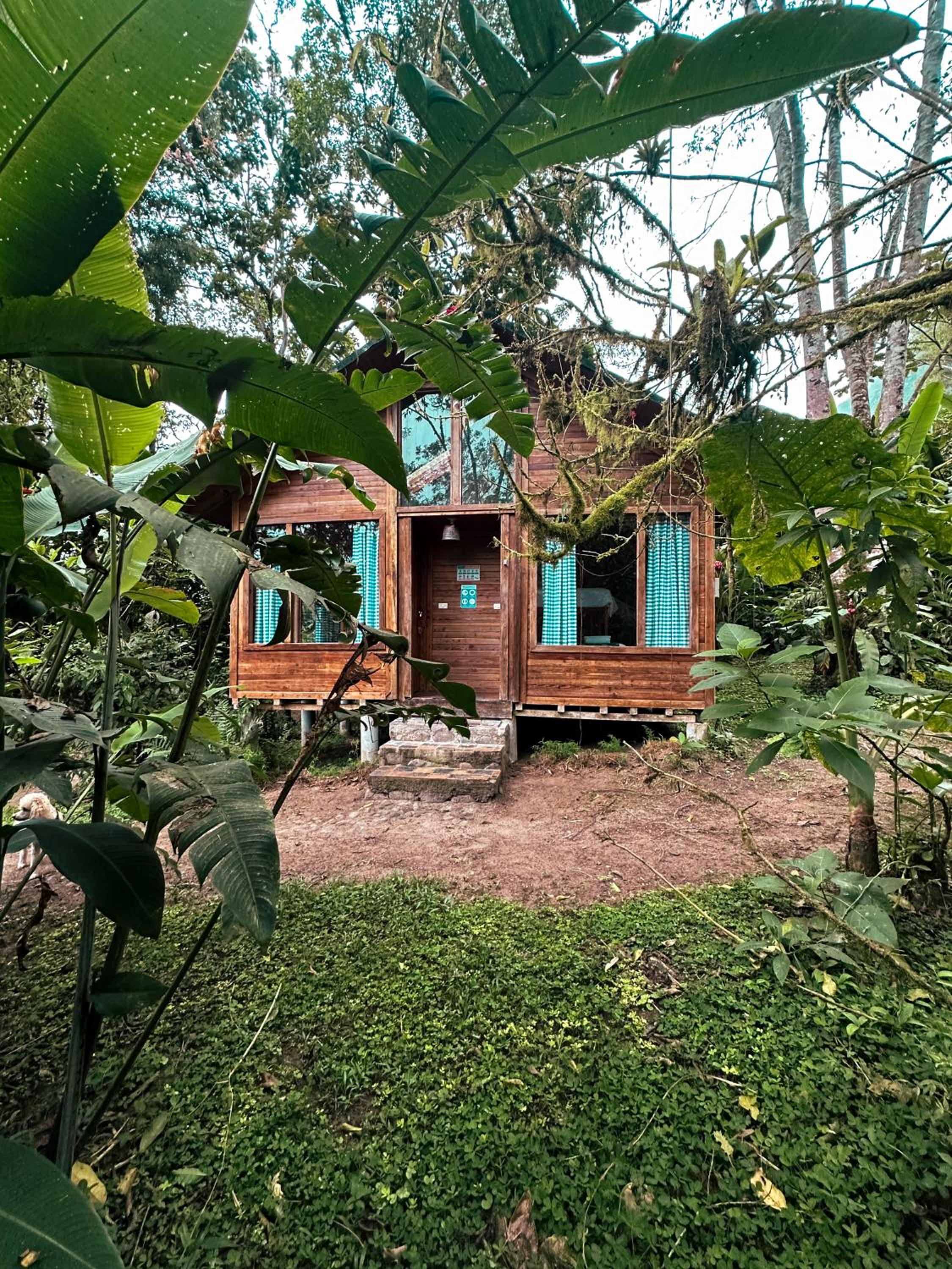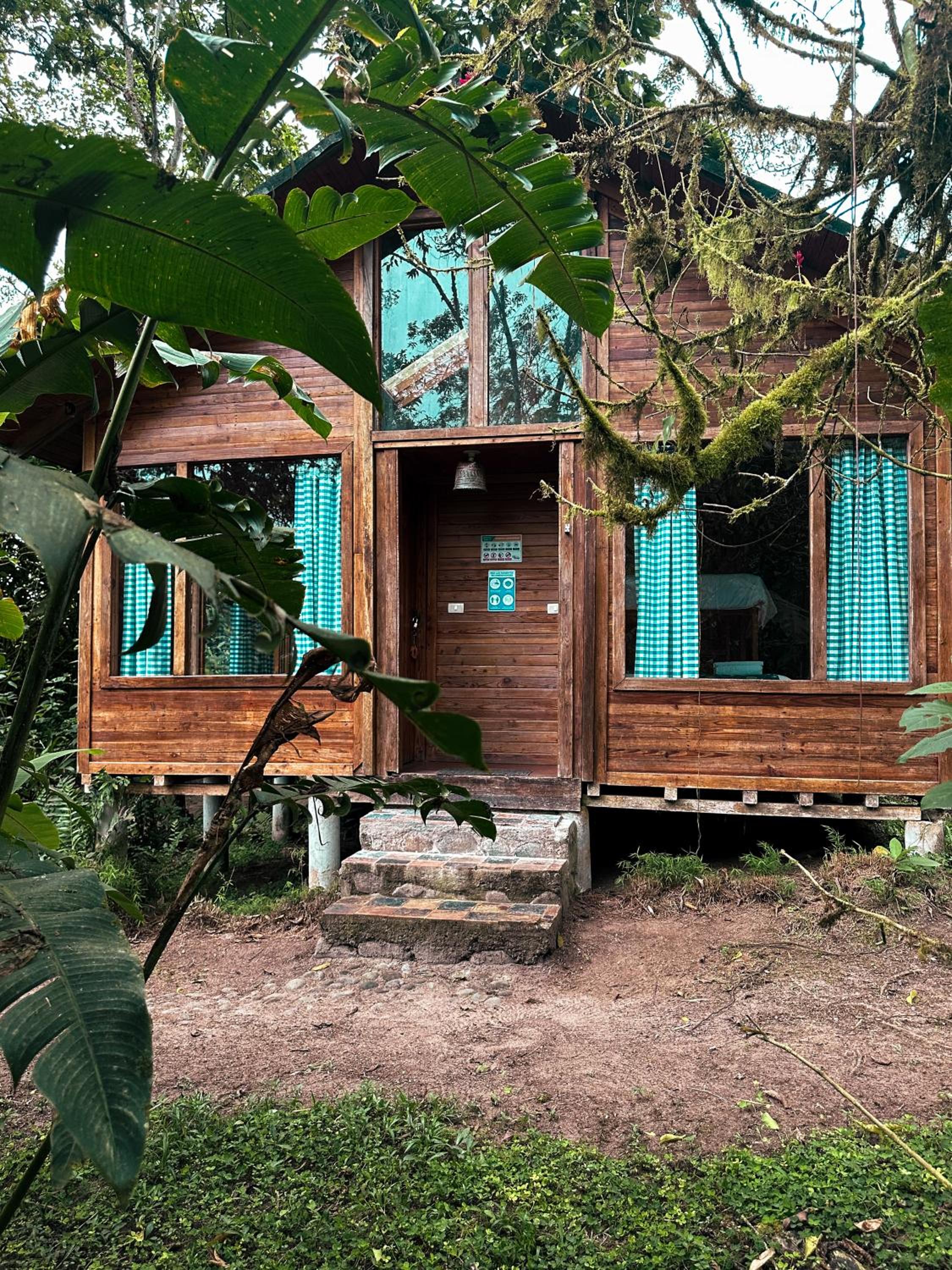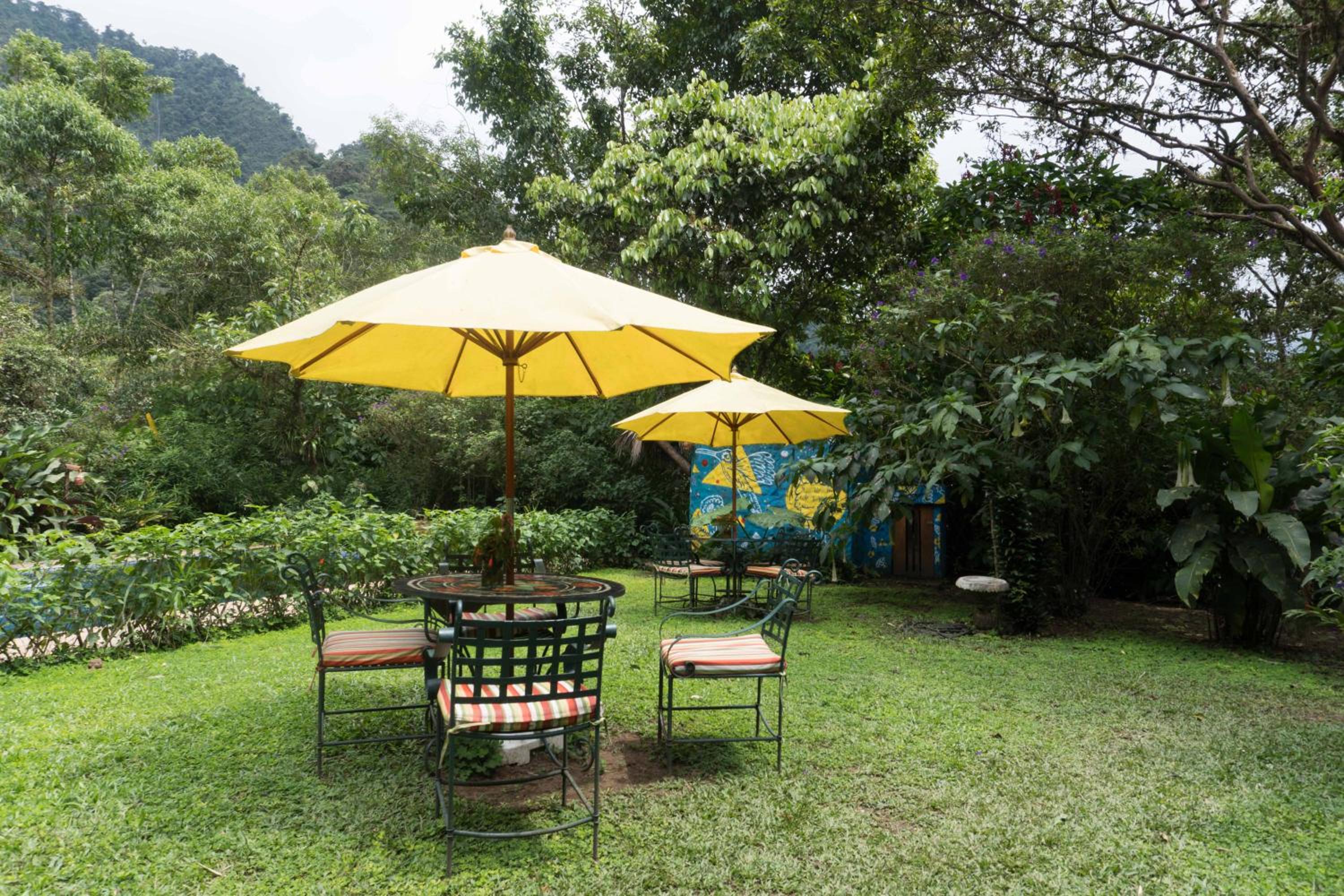 Escape to Hotel El Abrazo del Arbol, a serene oasis in Mindo. Relax in the lush garden, take a dip in the outdoor pool, or unwind in the sauna.