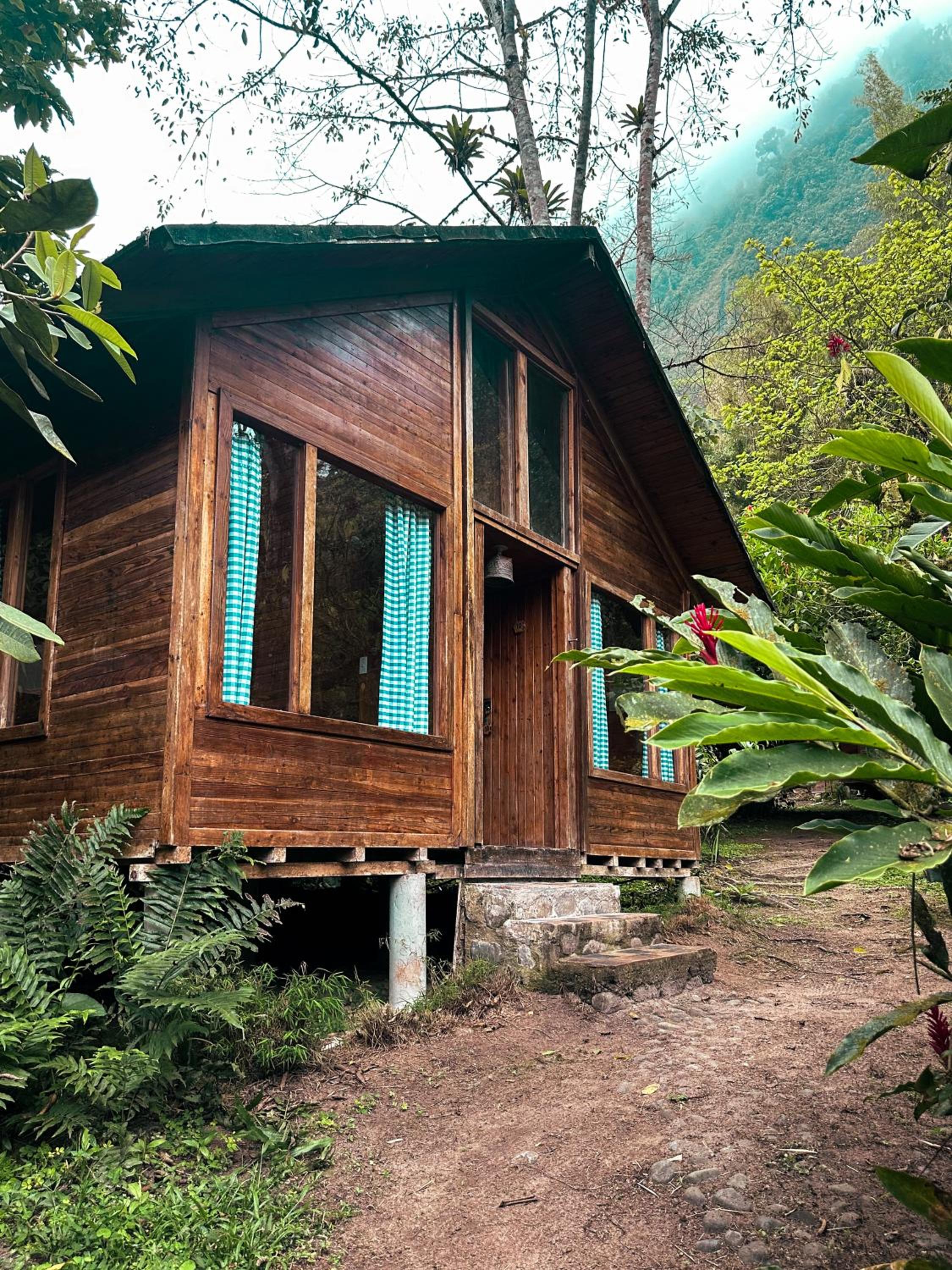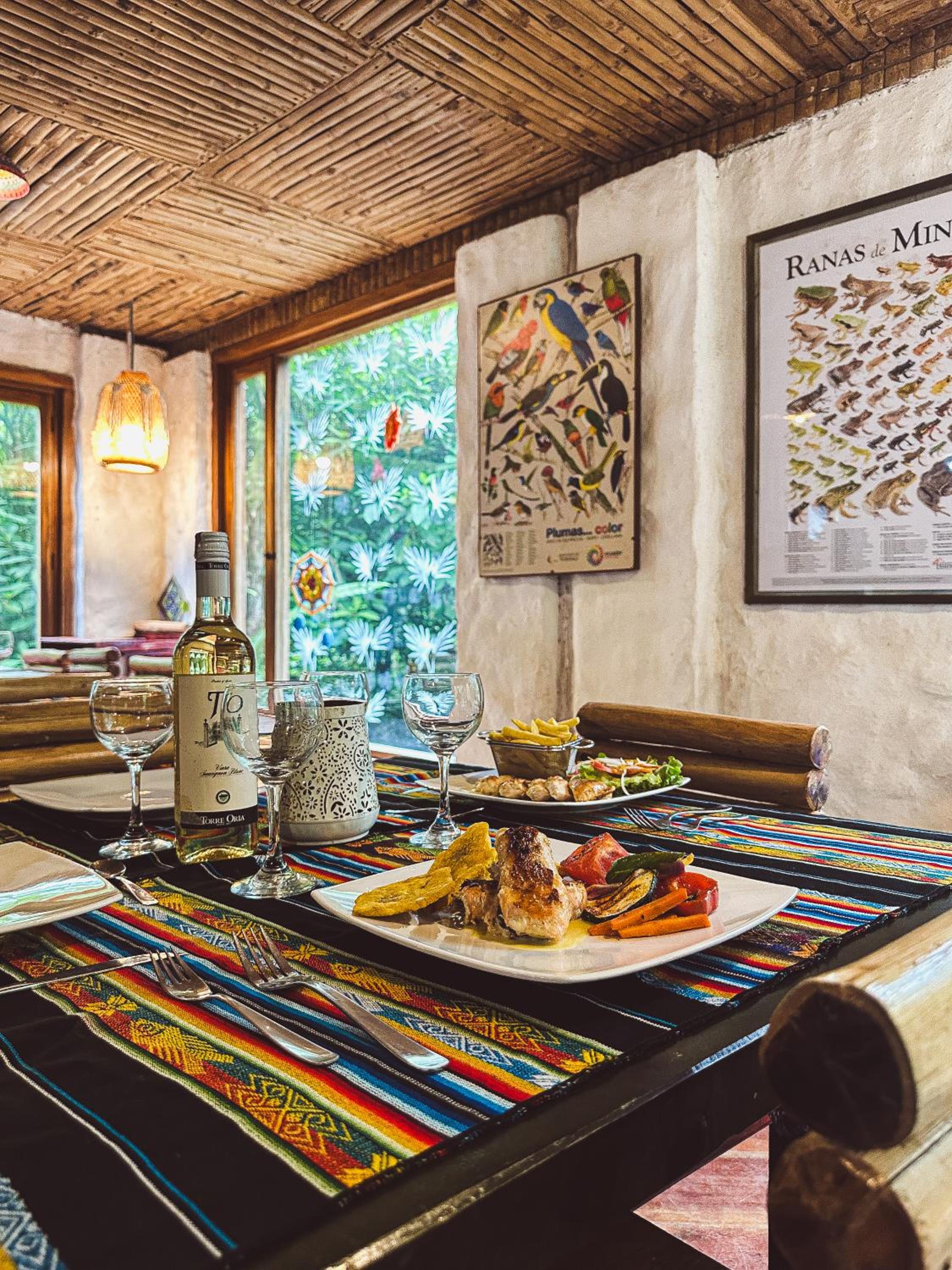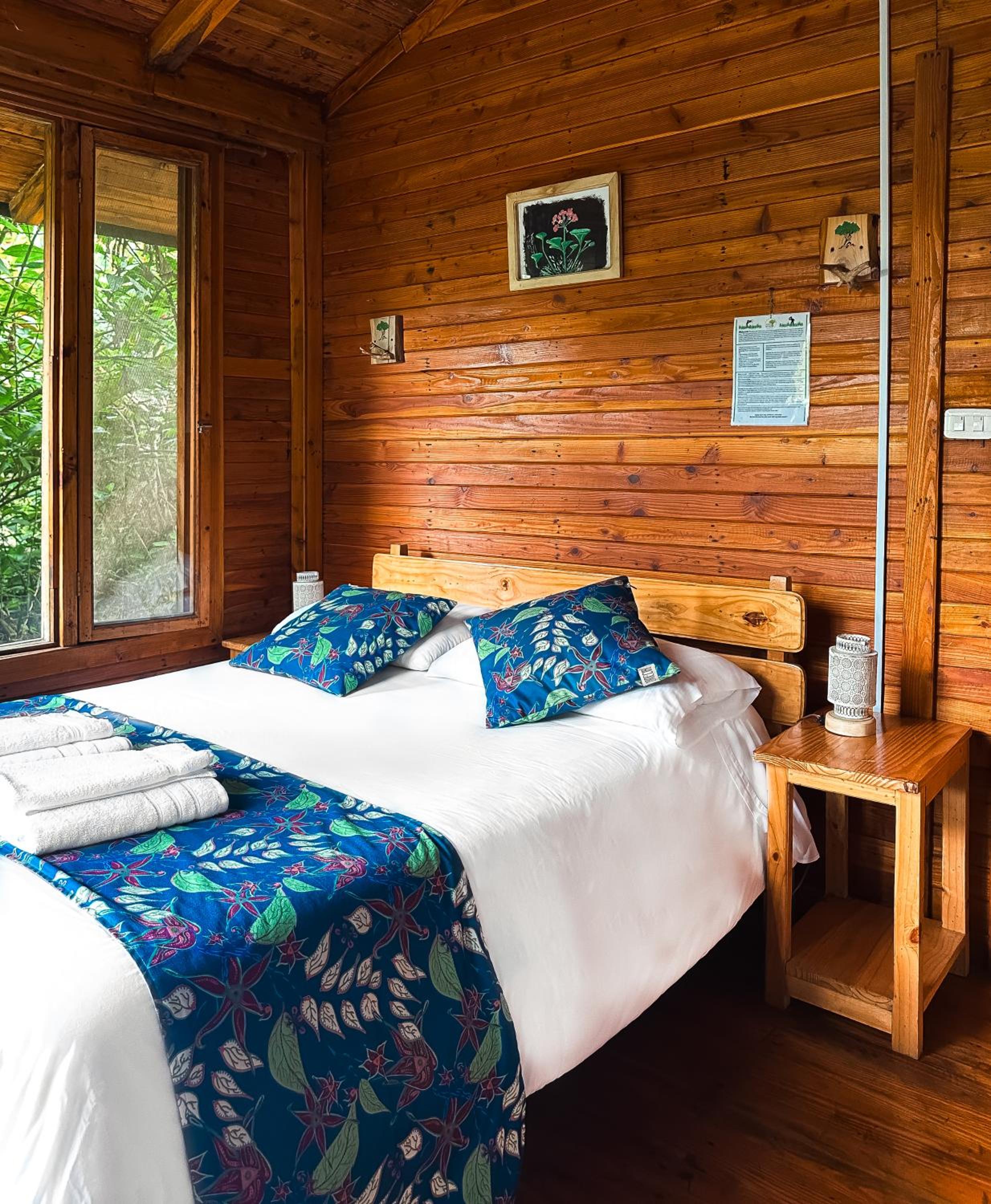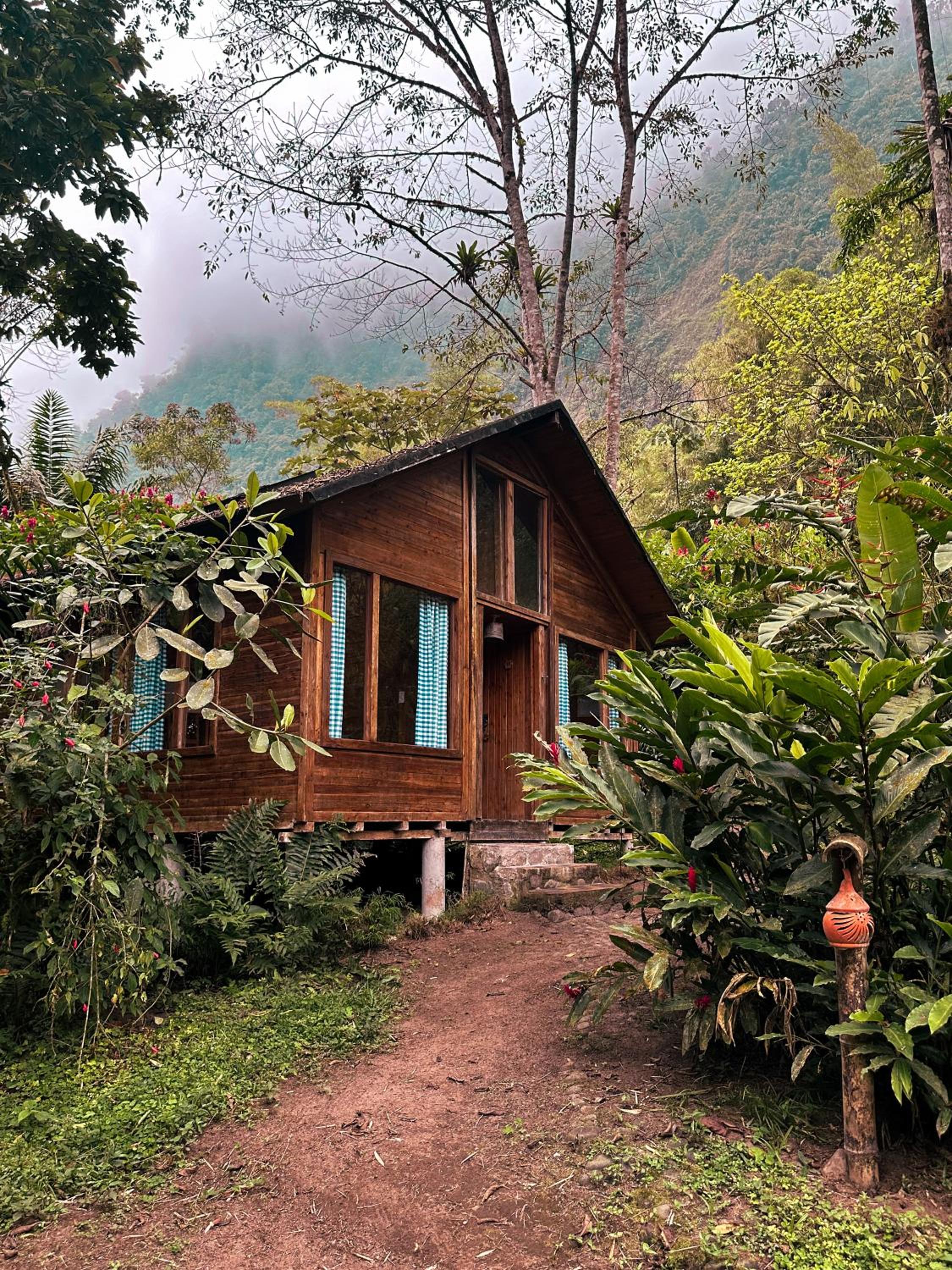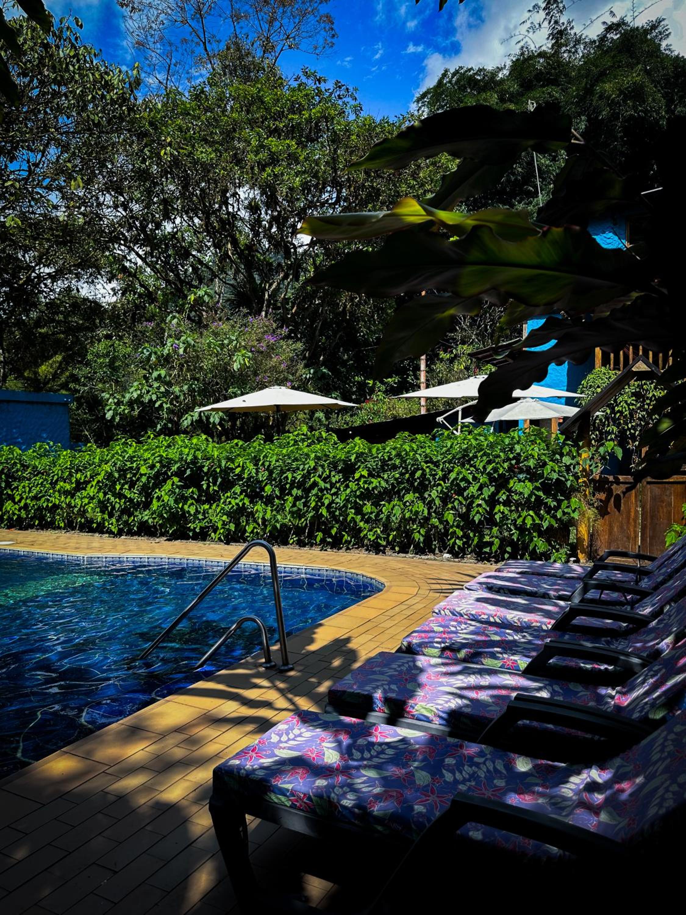 Escape to Hotel El Abrazo del Arbol, a serene oasis in Mindo. Relax in the lush garden, take a dip in the outdoor pool, or unwind in the sauna.