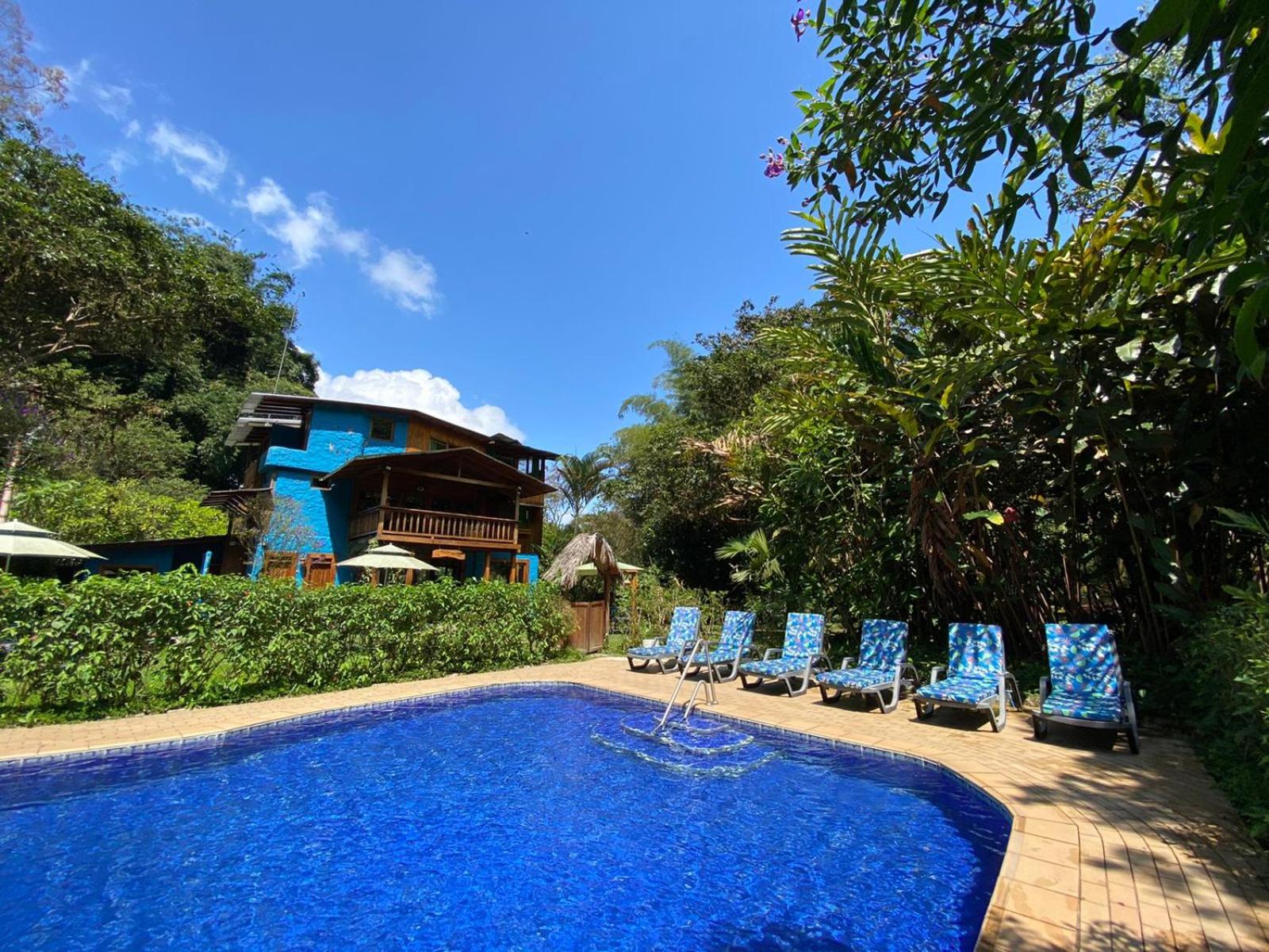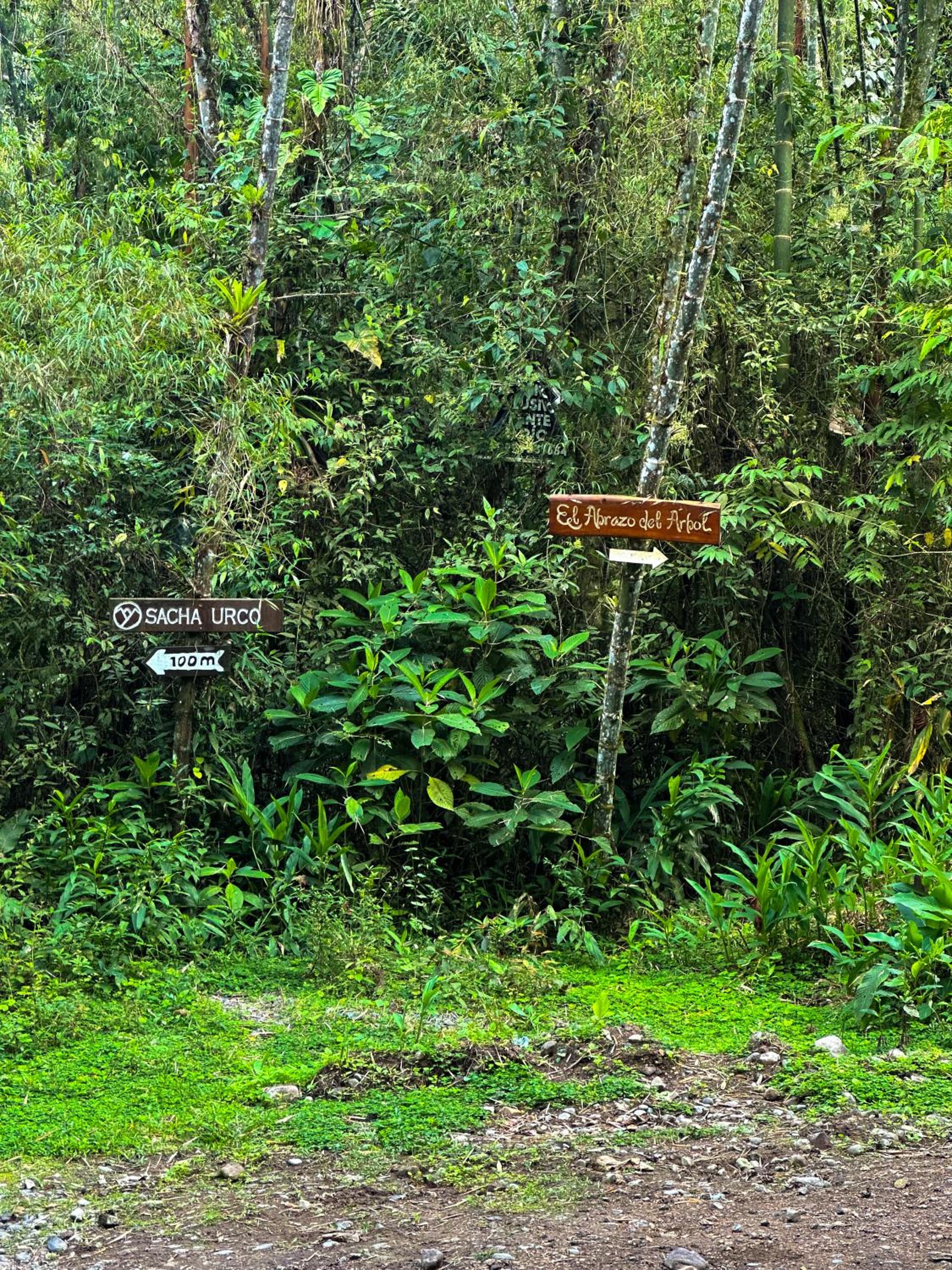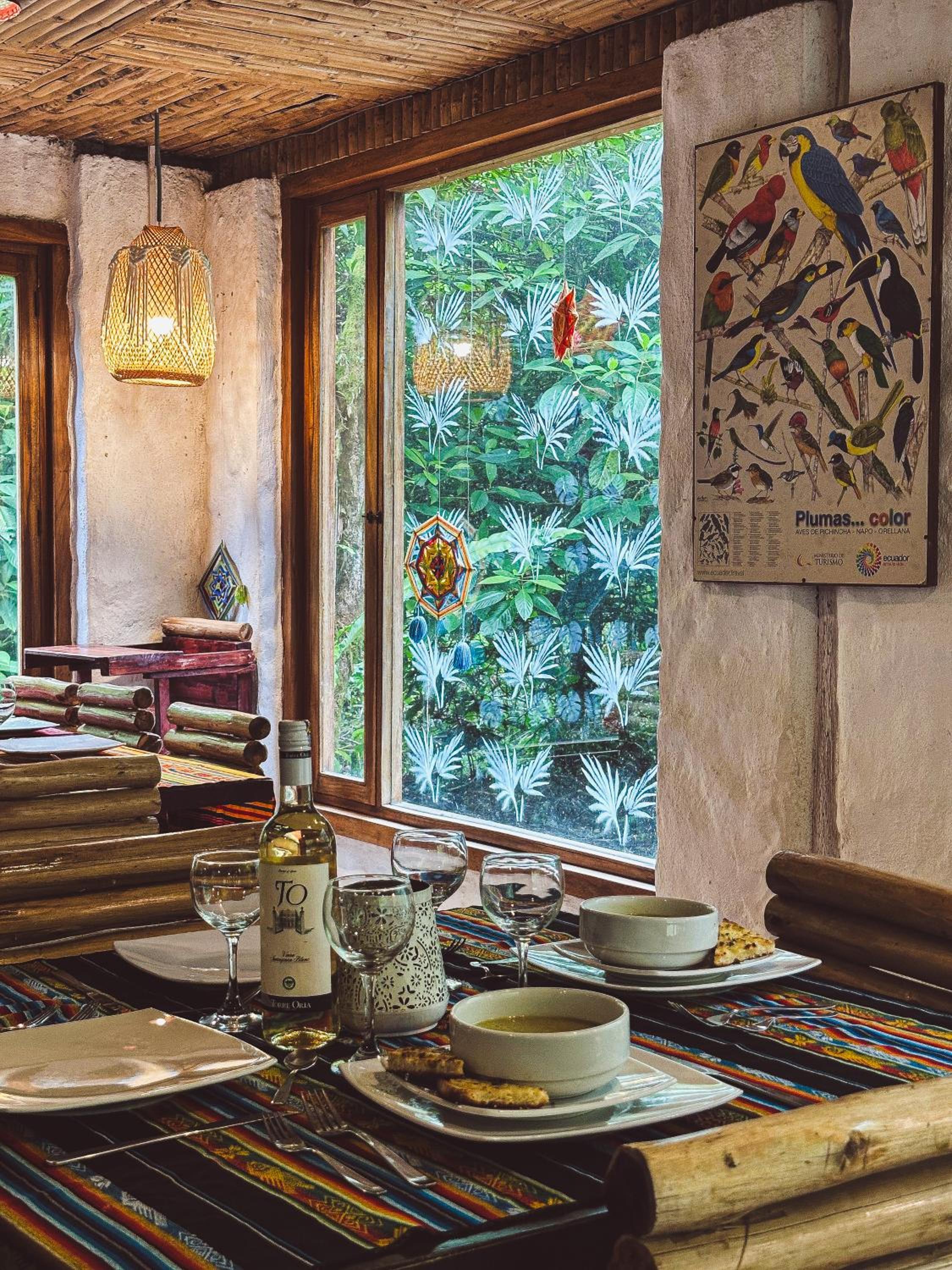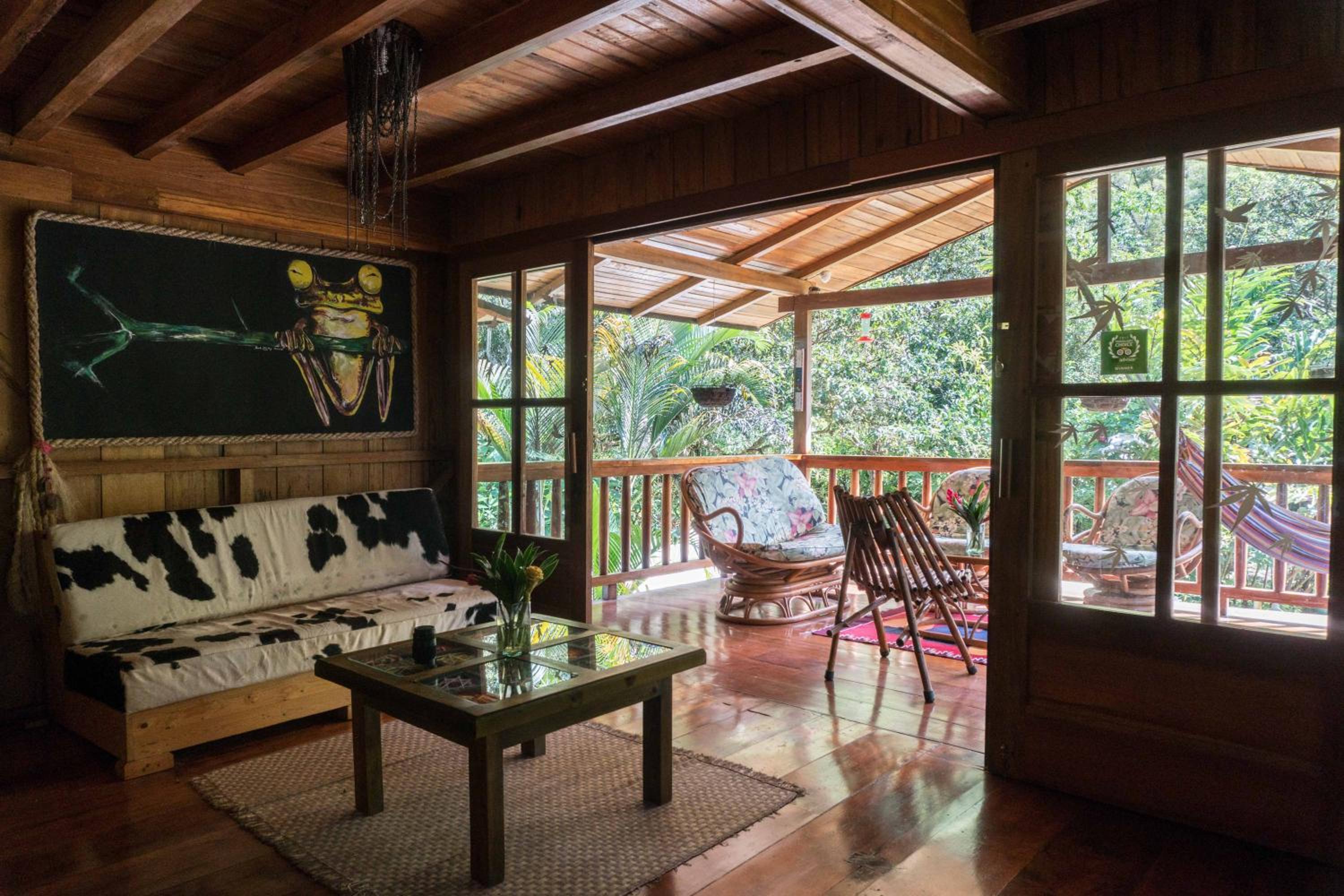 Escape to Hotel El Abrazo del Arbol, a serene oasis in Mindo. Relax in the lush garden, take a dip in the outdoor pool, or unwind in the sauna.