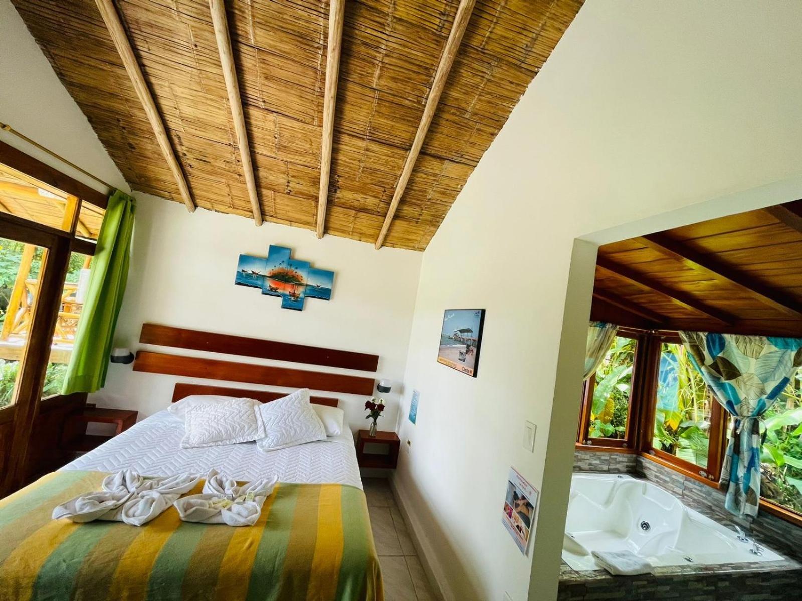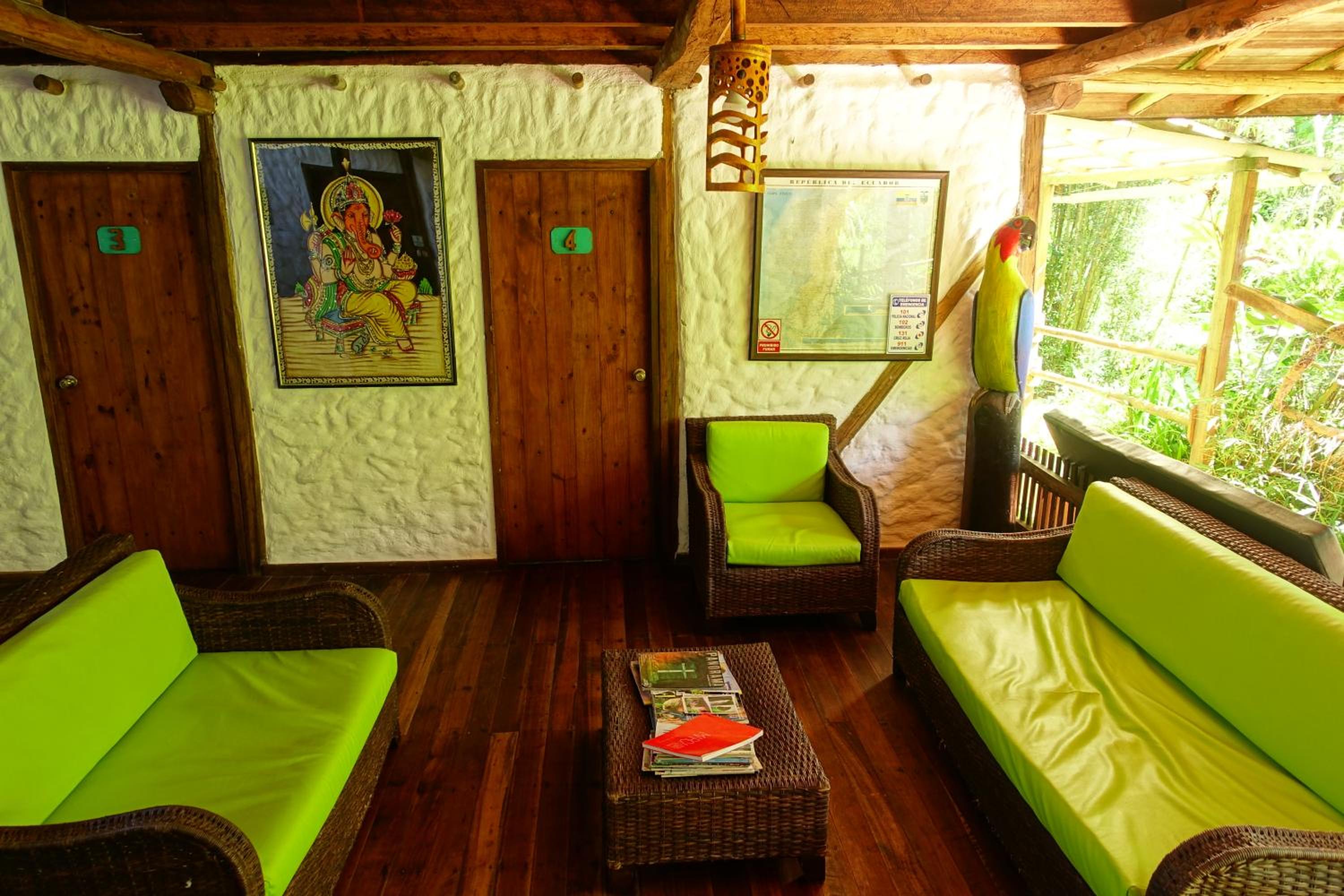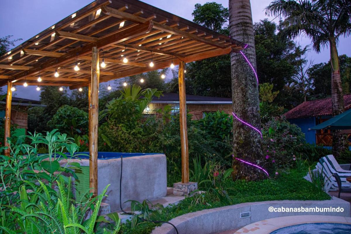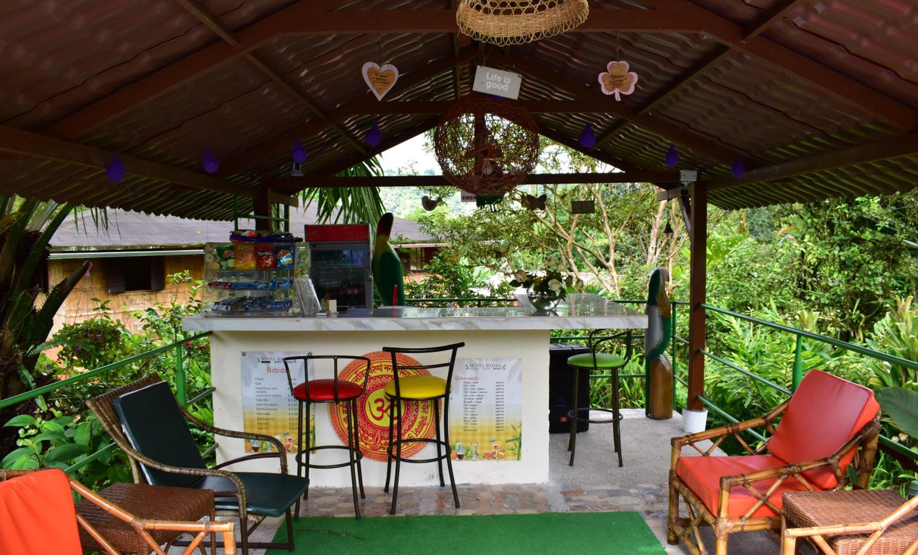 Cabañas Bambu Mindo offers an outdoor swimming pool, garden, shared lounge, and terrace, providing guests with a relaxing and tranquil atmosphere. The hotel also features a restaurant, shared kitchen, and room service, ensuring all your culinary needs are met during your stay.