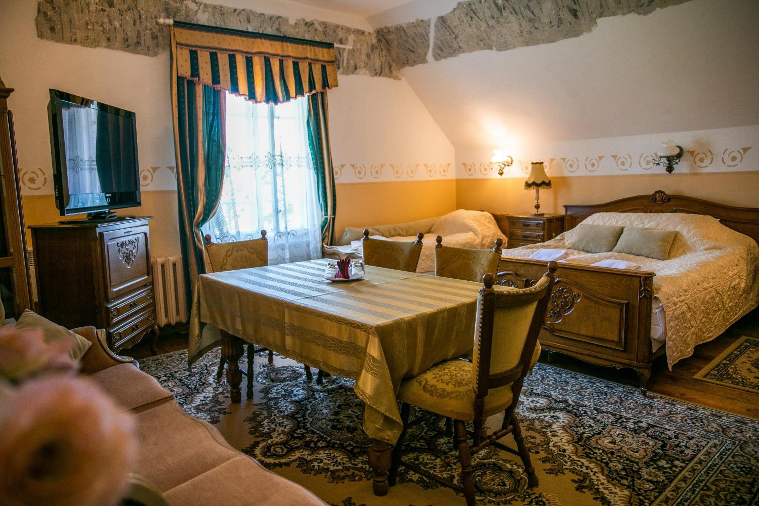 Authenticity and the feeling of being back in time. The bed was very comfortable, perfect for sleeping. The service staff is very friendly, the kitchen is open until 8:00 PM, but we still got dinner around 10:00 PM. Even though the lights went out for a few minutes, there were candles burning everywhere, which gave a great atmosphere and authenticity. Everything was perfect.