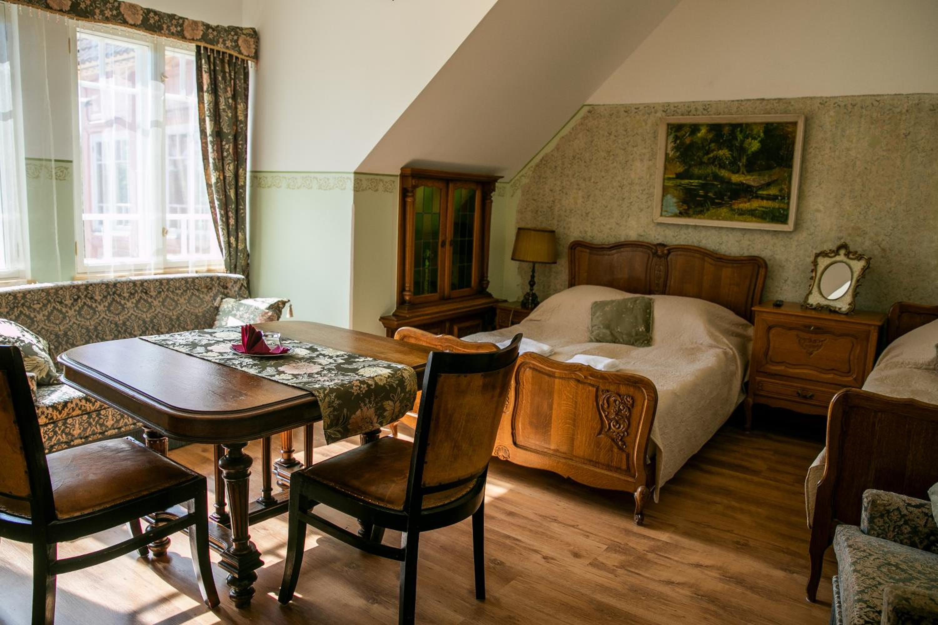 Very good breakfast, the rooms and bathroom were clean, historical vibe. We had free access to a sauna every evening. The staff was very friendly.