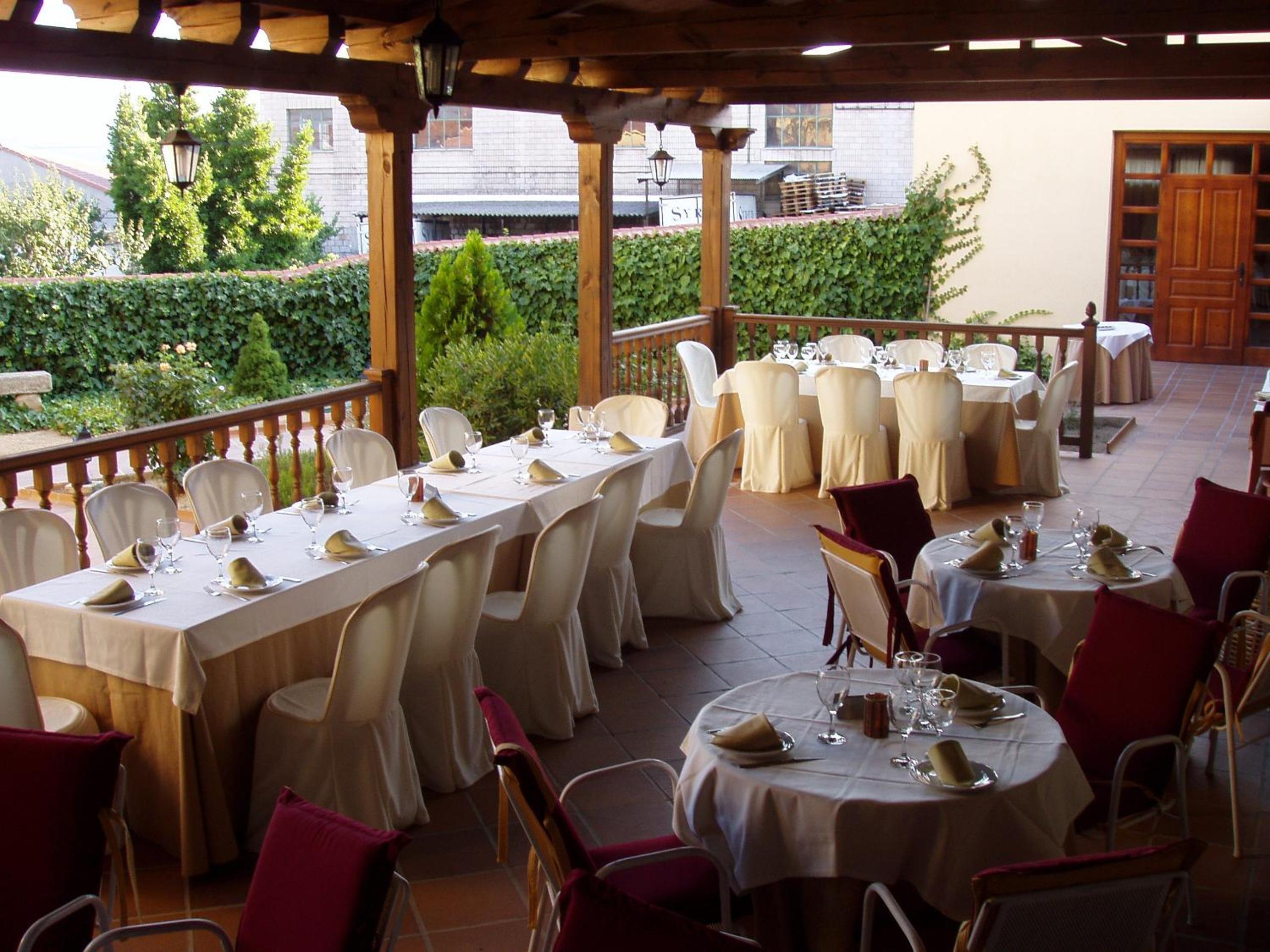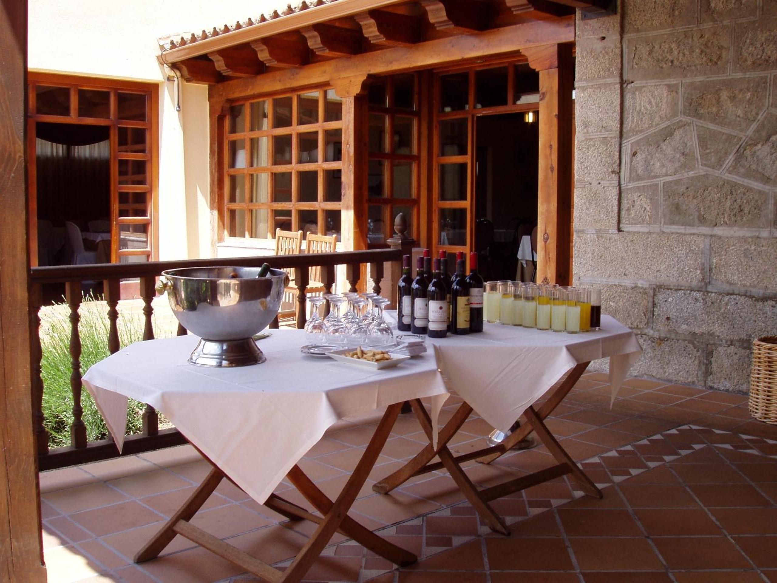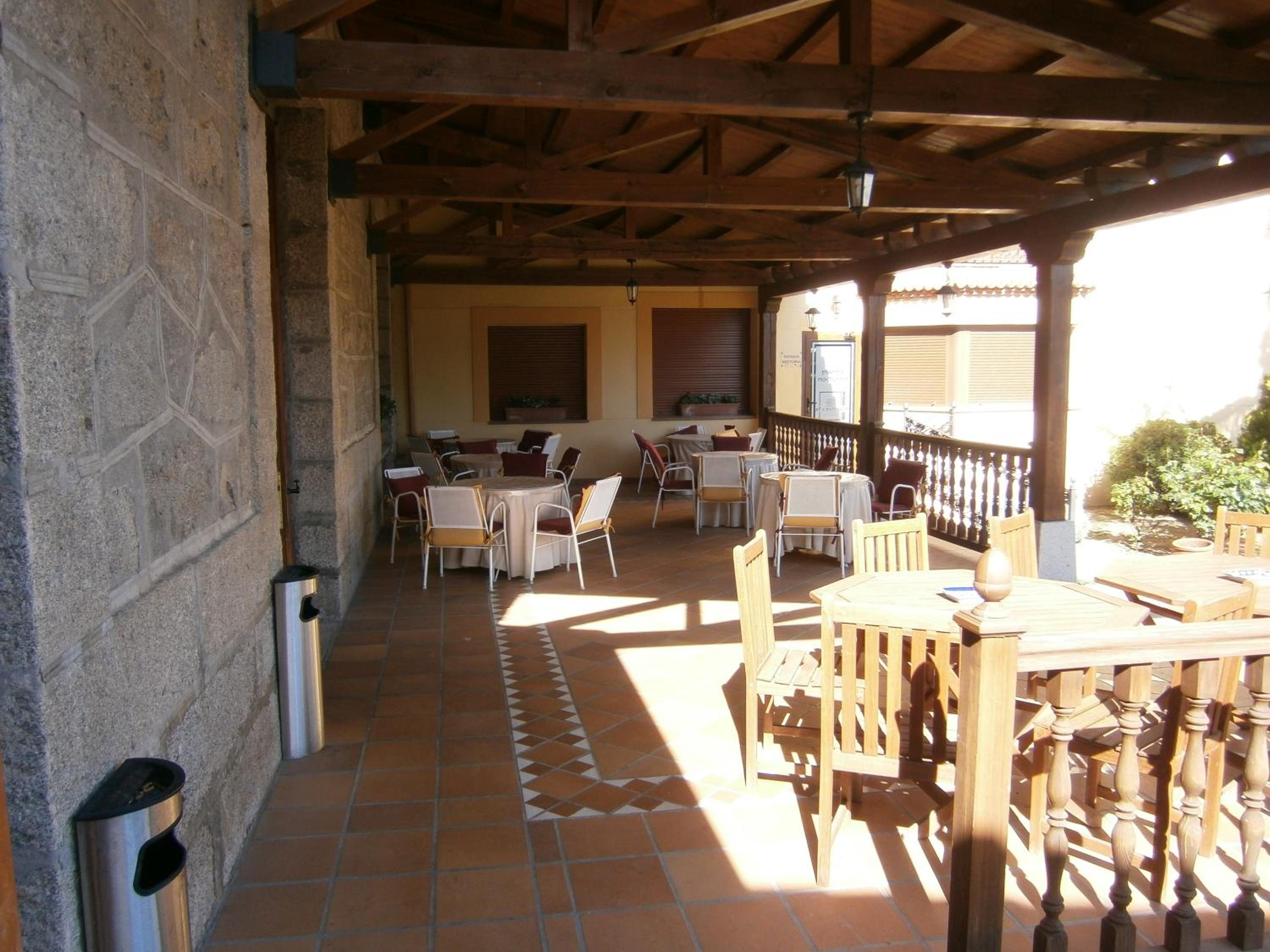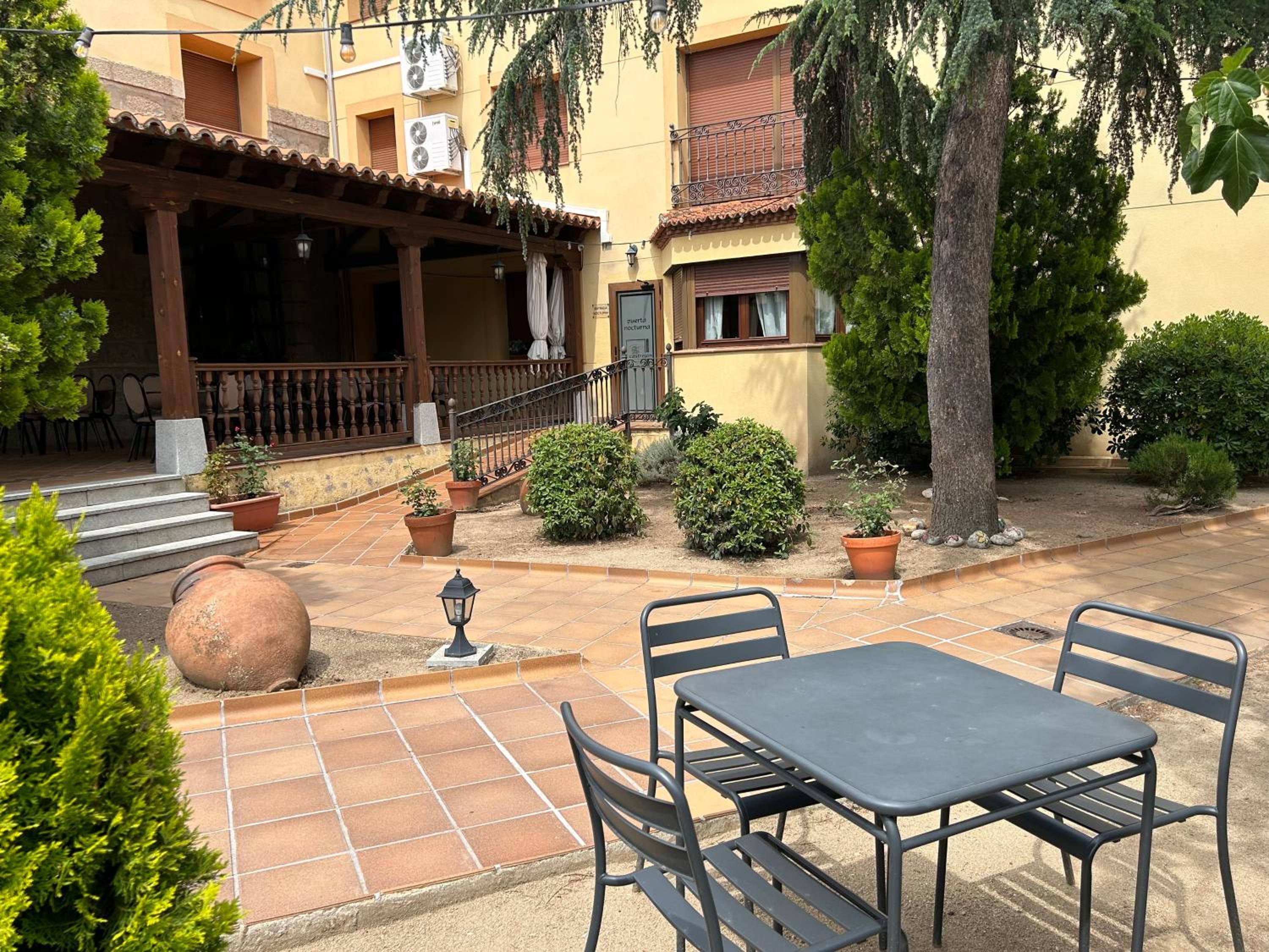 End your day on a high note at the outdoor terrace, surrounded by lush greenery and stunning architecture. Take in the fresh air while appreciating the beauty of Castrejon Hotel. Book now for a memorable stay!
