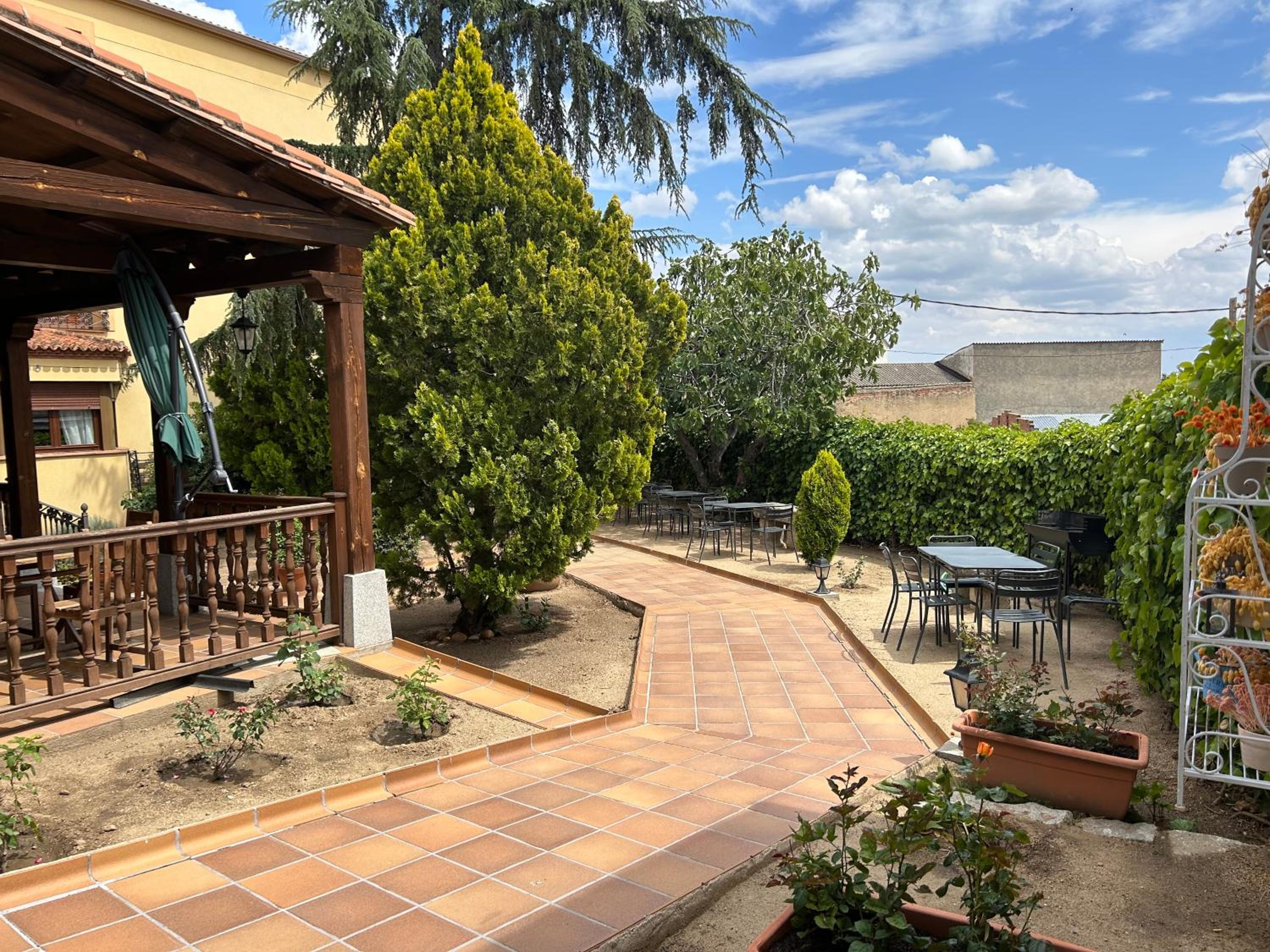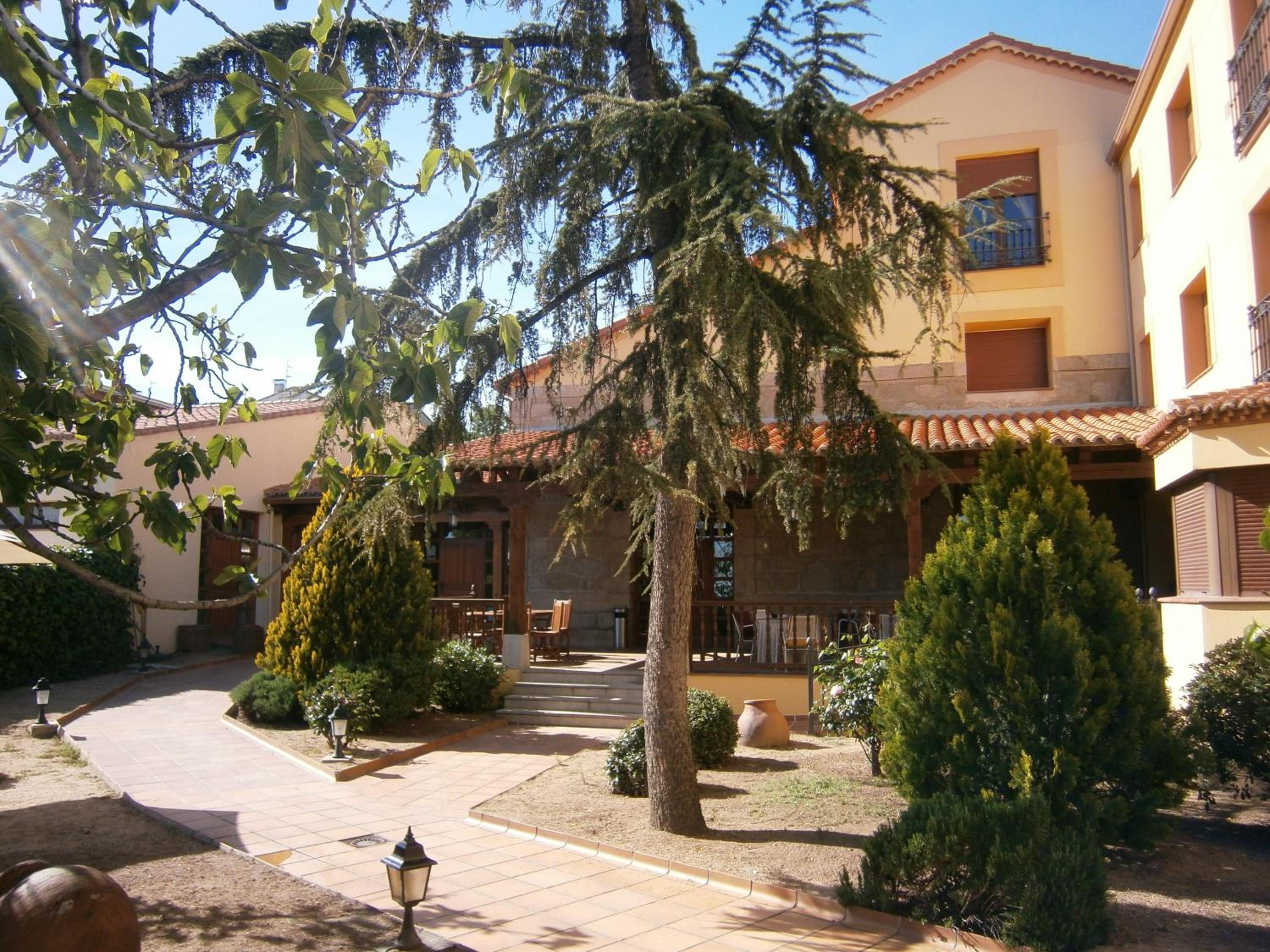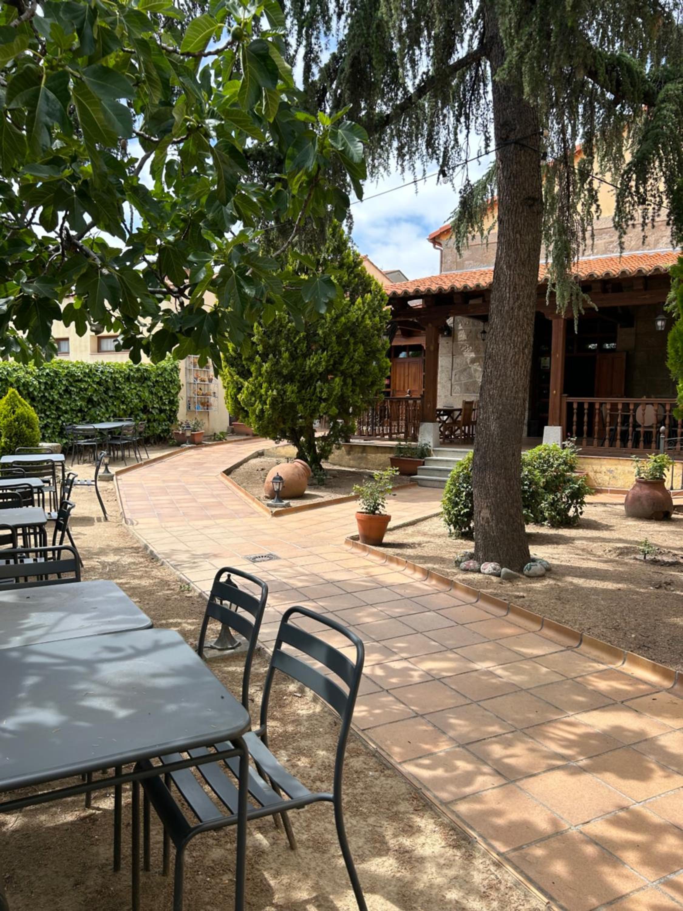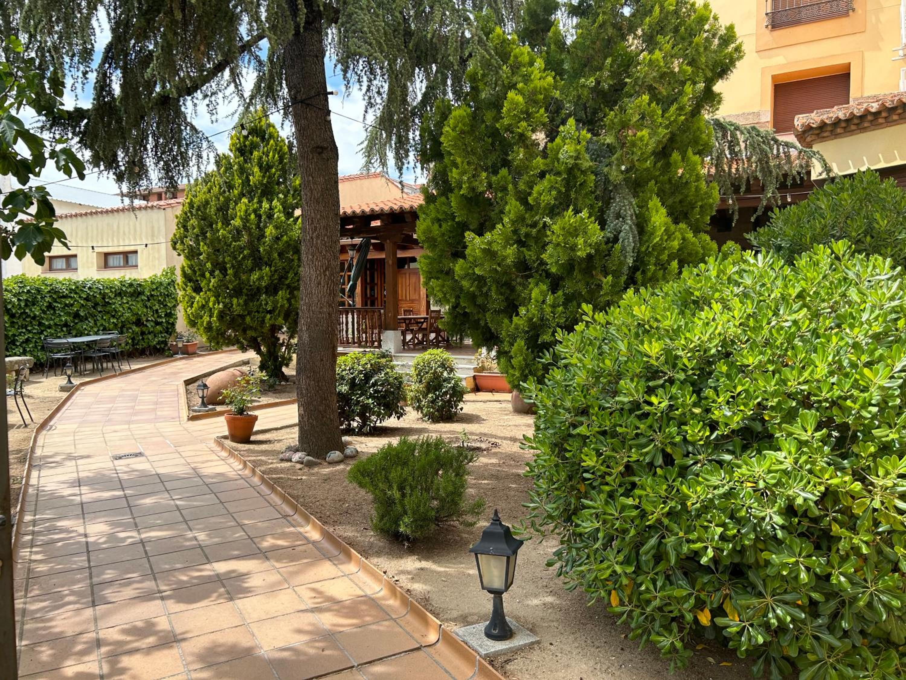 End your day on a high note at the outdoor terrace, surrounded by lush greenery and stunning architecture. Take in the fresh air while appreciating the beauty of Castrejon Hotel. Book now for a memorable stay!