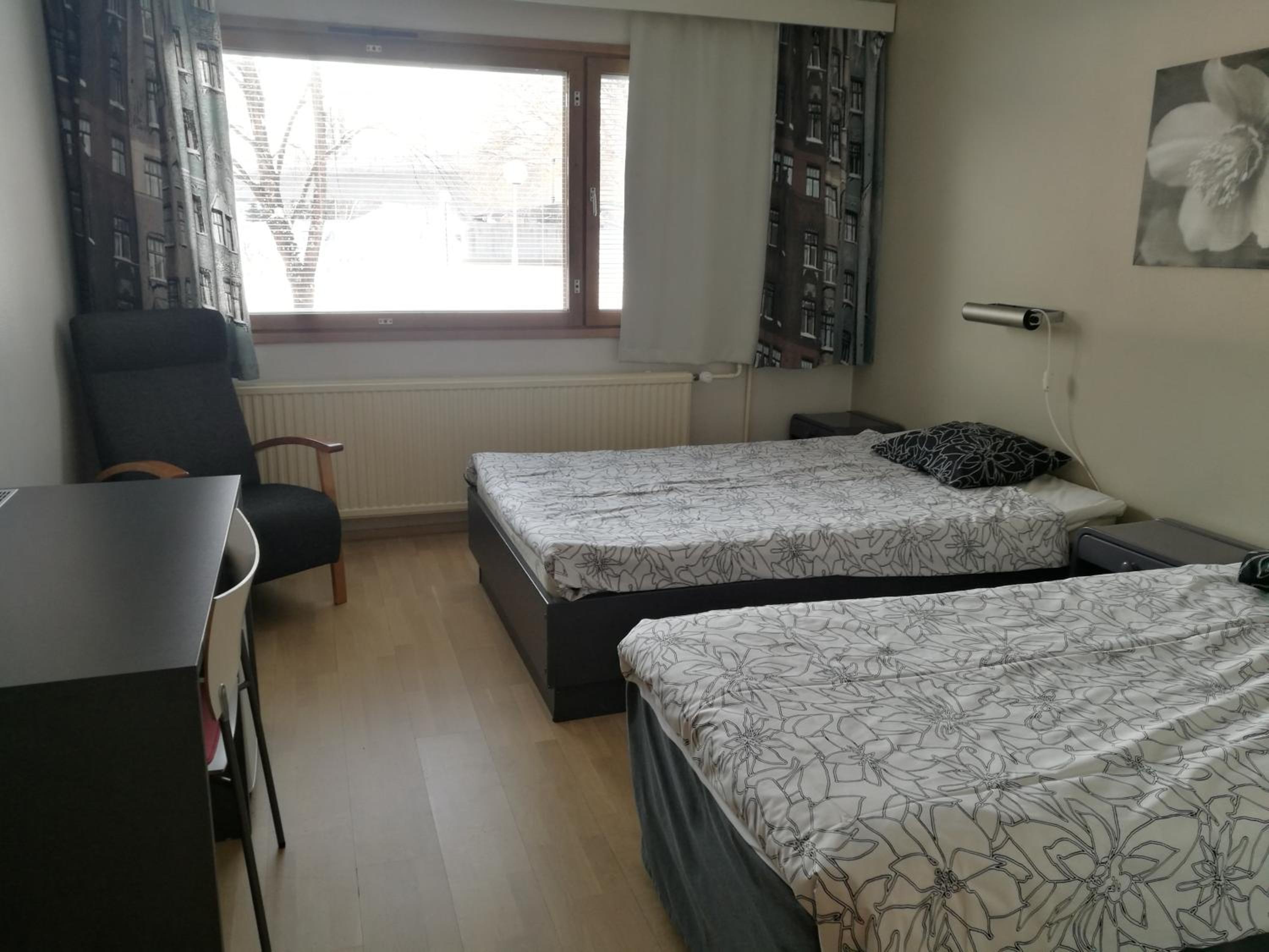 Huoneen kaksi sänkyä olivat eri korkuisia, hankala näin avioparille.