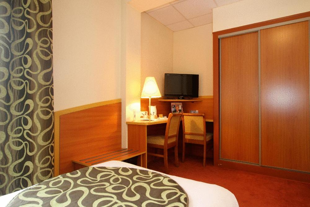 Guest rooms at the Kyriad Hotel Lamballe are designed with your comfort in mind, featuring amenities such as a welcome tray, tea/coffee facilities, and a flat-screen TV for your entertainment.