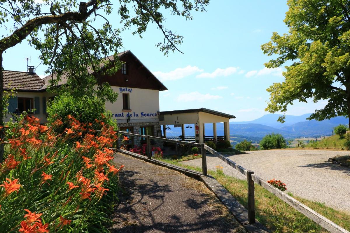 Experience breathtaking mountain views and soak up the sun on our inviting terrace at La Source in Saint-Jean-de-Chevelu.