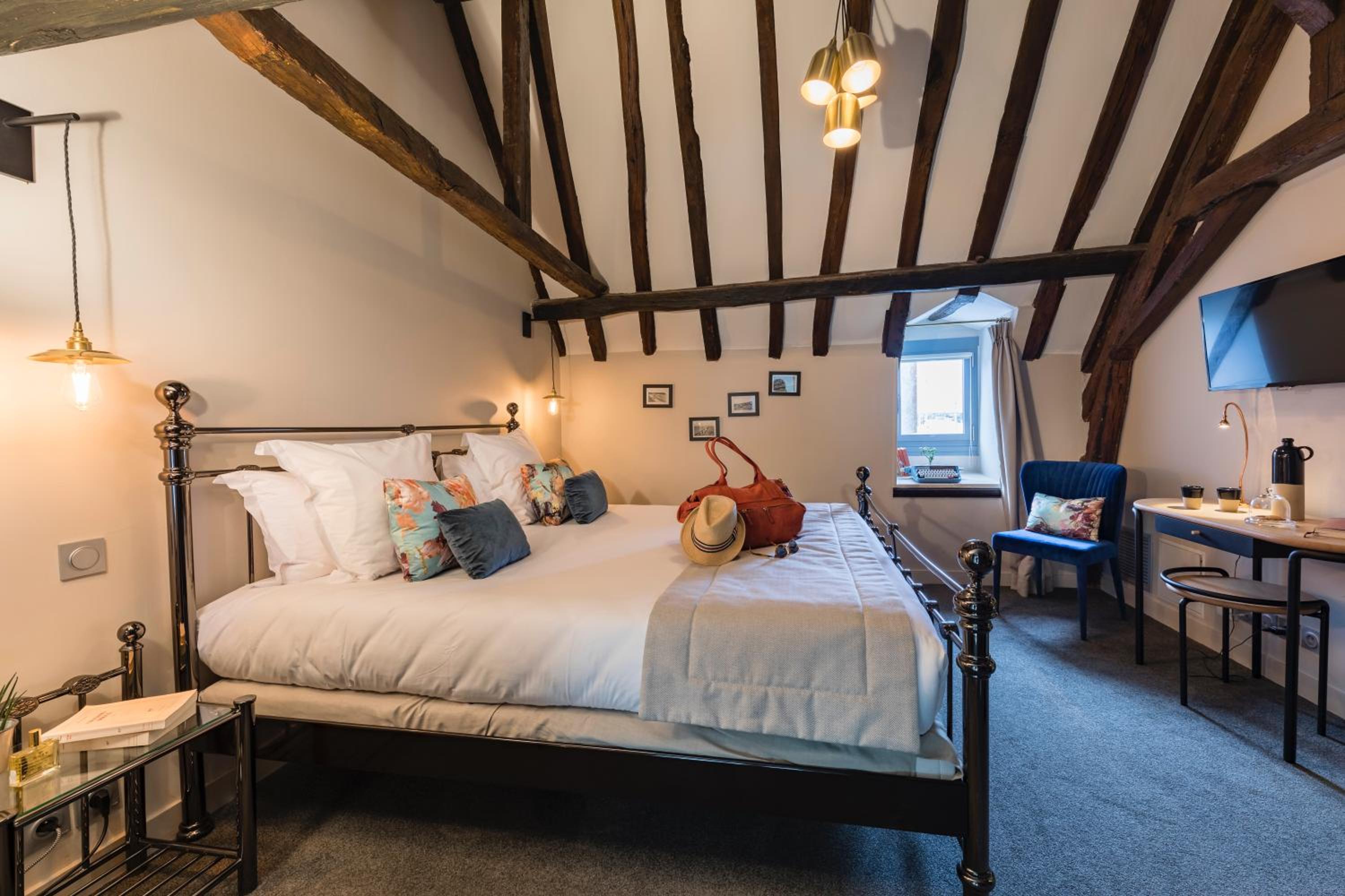 Each room features a connected TV, private bathroom with Nuxe toiletries, and a view. Start your day with a buffet breakfast in the dining room with a panoramic castle view.