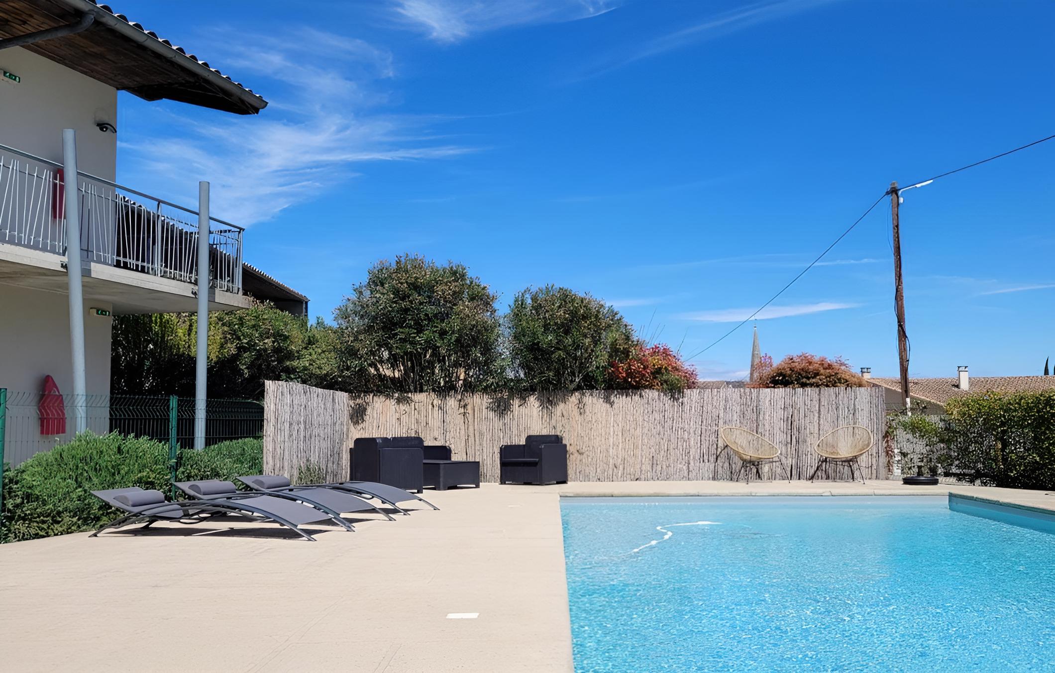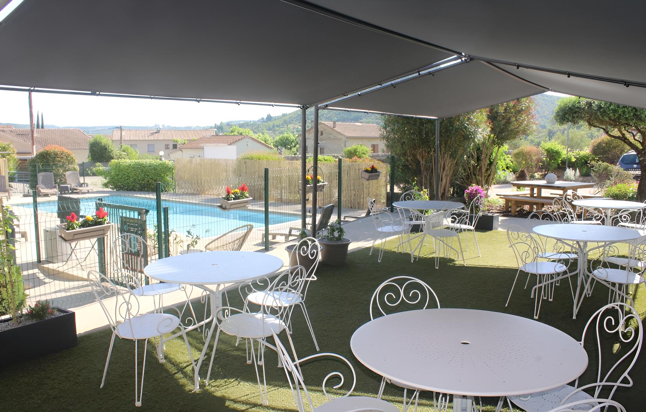 Hotel Le Vanséen boasts a luxurious outdoor pool, perfect for a refreshing dip under the sun. Guests can unwind and relax by the poolside while enjoying the serene surroundings of Les Vans.