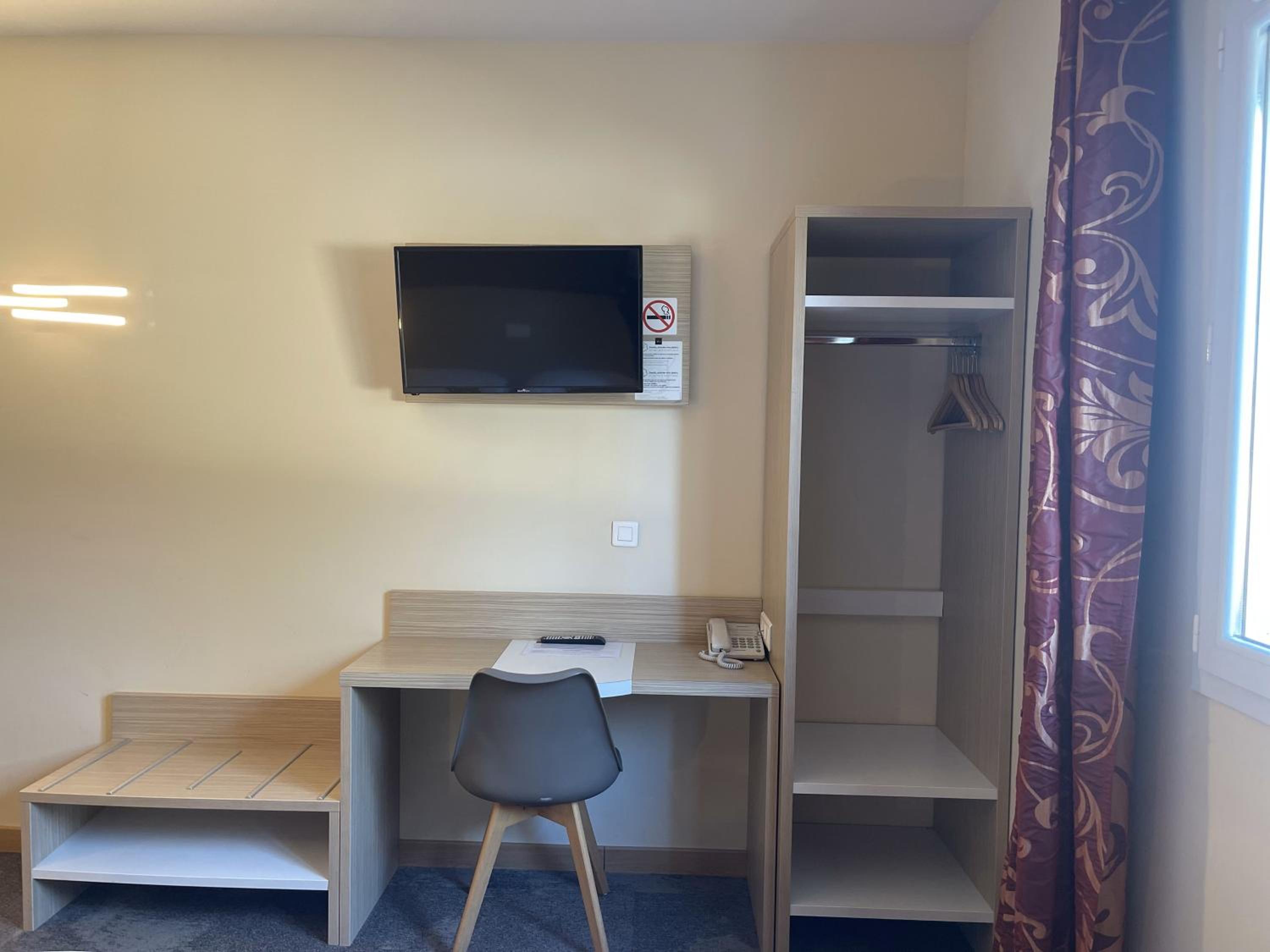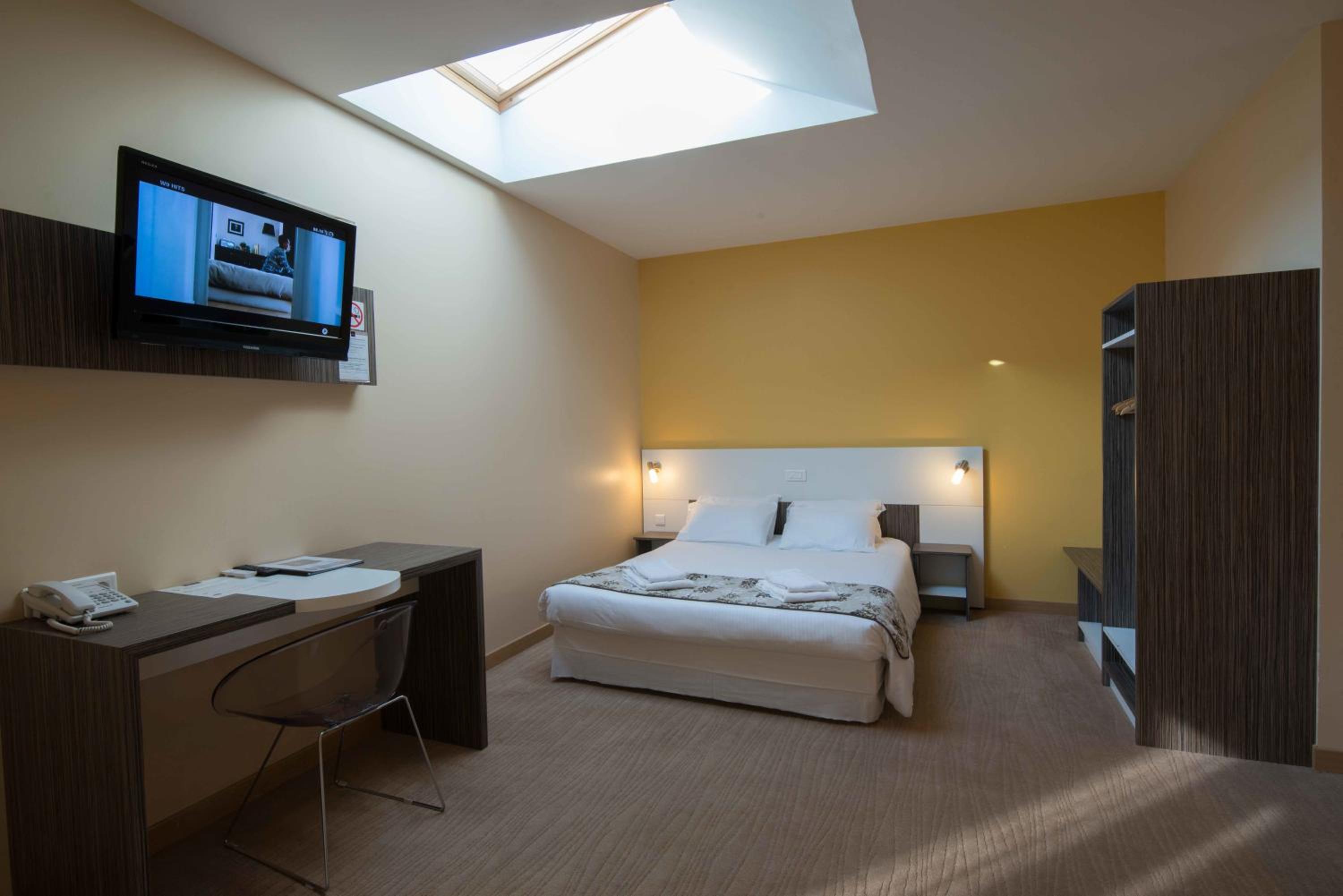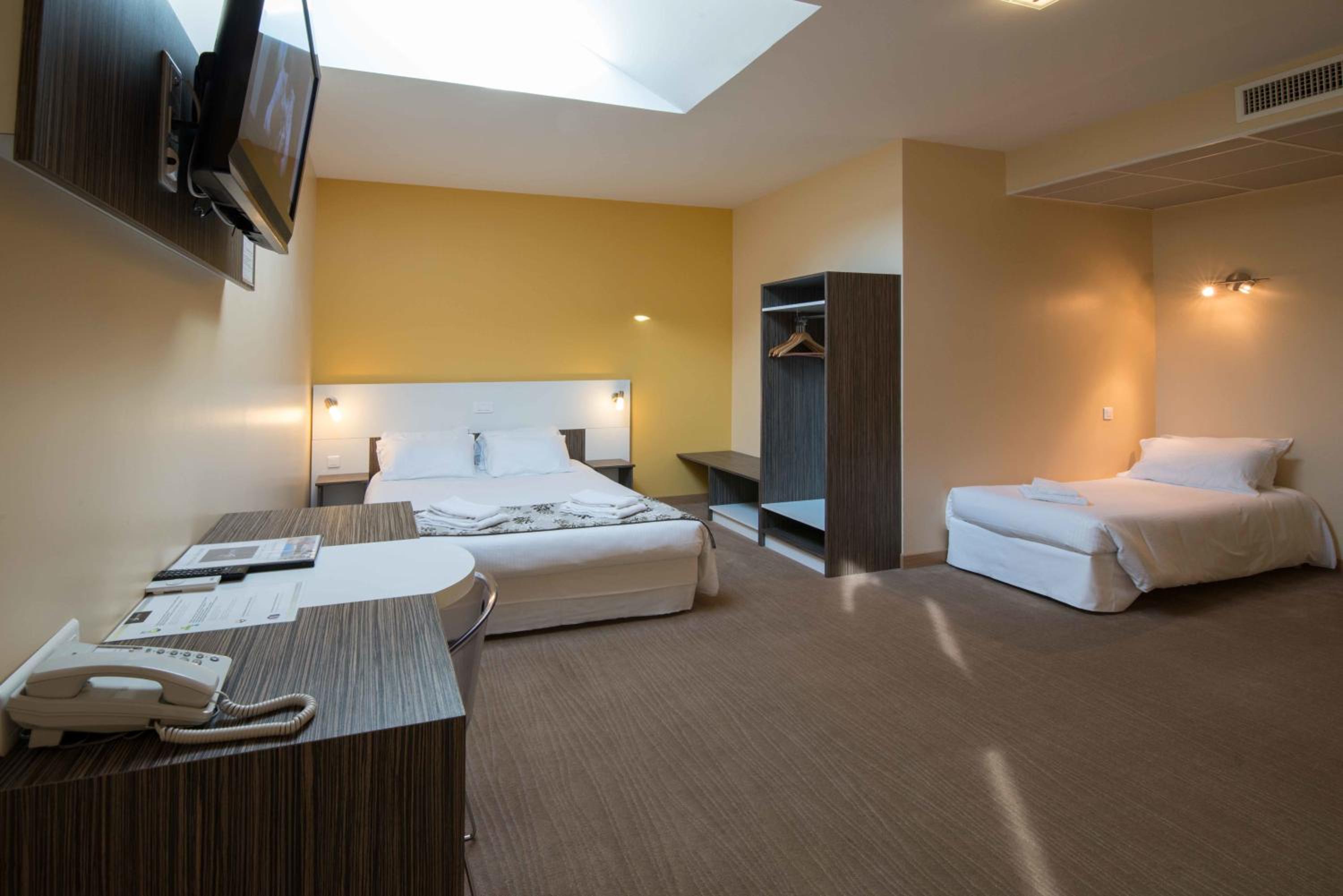 Emplacement idéal - personnel très bienveillant - chambre spacieuse, calme, très bien insonorisée - excellent petit déjeuner- restaurant de l'hôtel avec une carte variée -très bonne nourriture .
