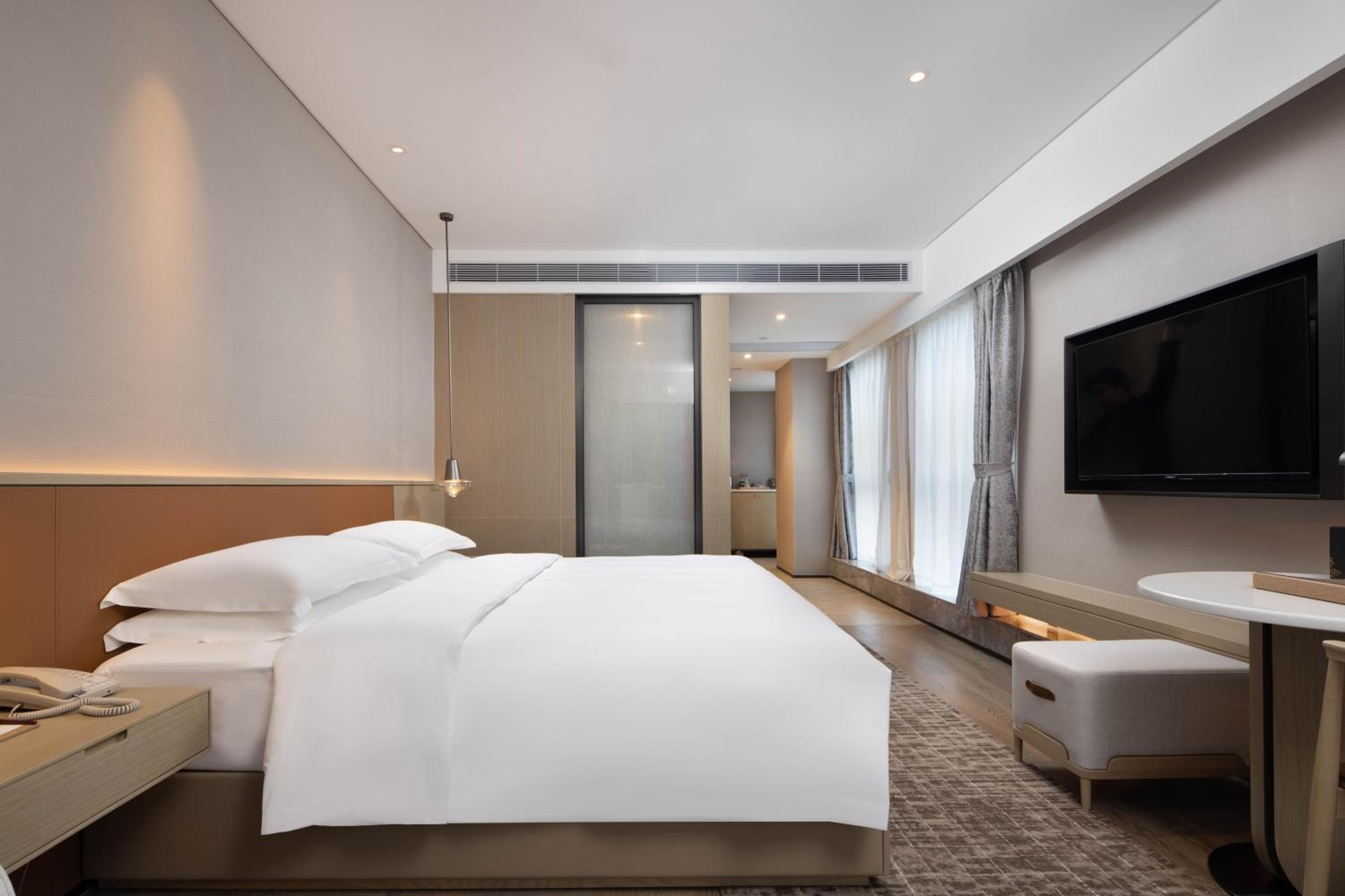 Experience comfort and style at Leeden Hotel Hangzhou, strategically located near major attractions like Wushan Square. Unwind in our well-appointed rooms with modern amenities including a TV, plush bed linen, and towels.