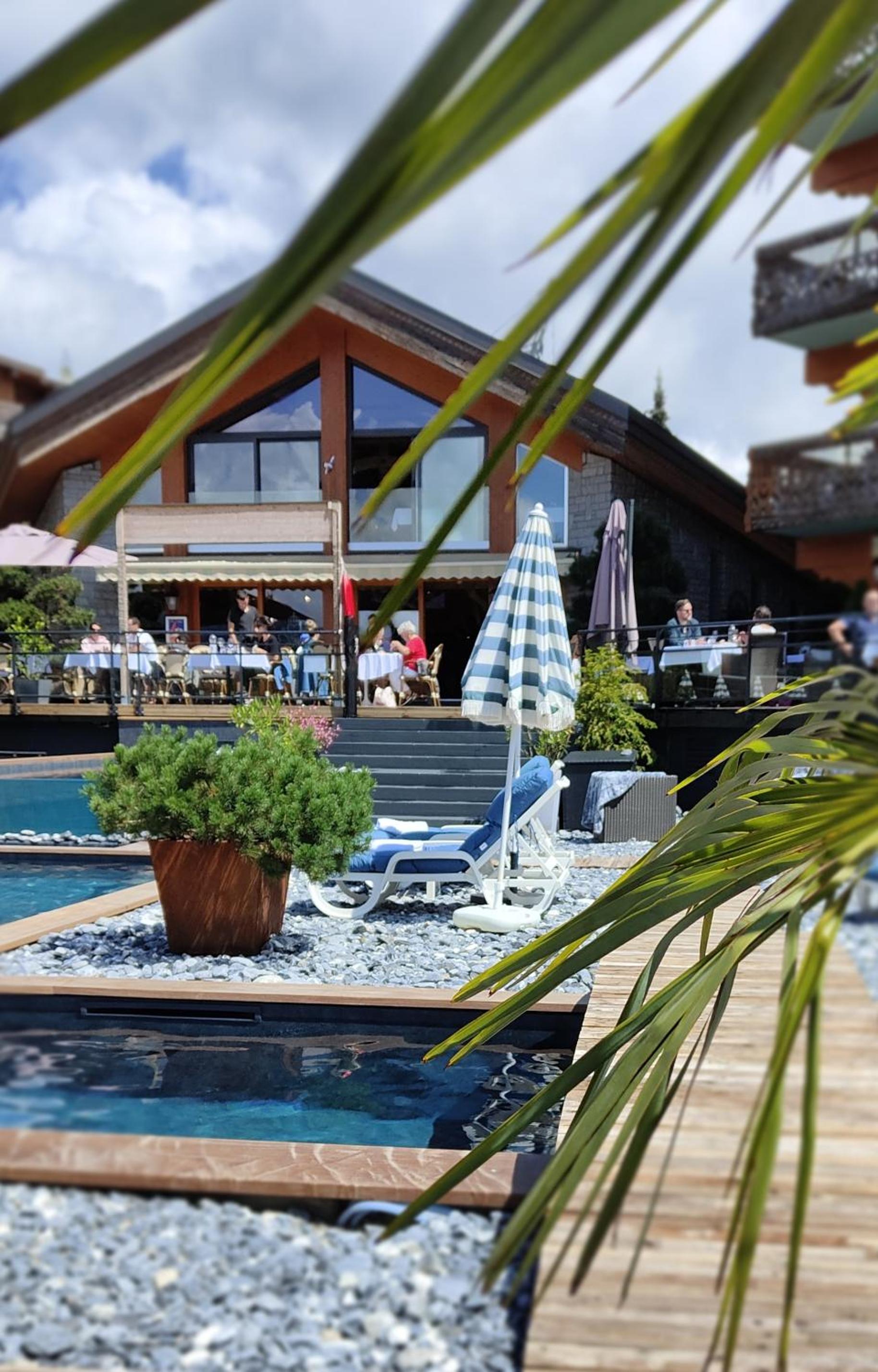 chalet-hôtel très confortable calme, vue sur les montagnes, bel espace piscine, excellent restaurant.