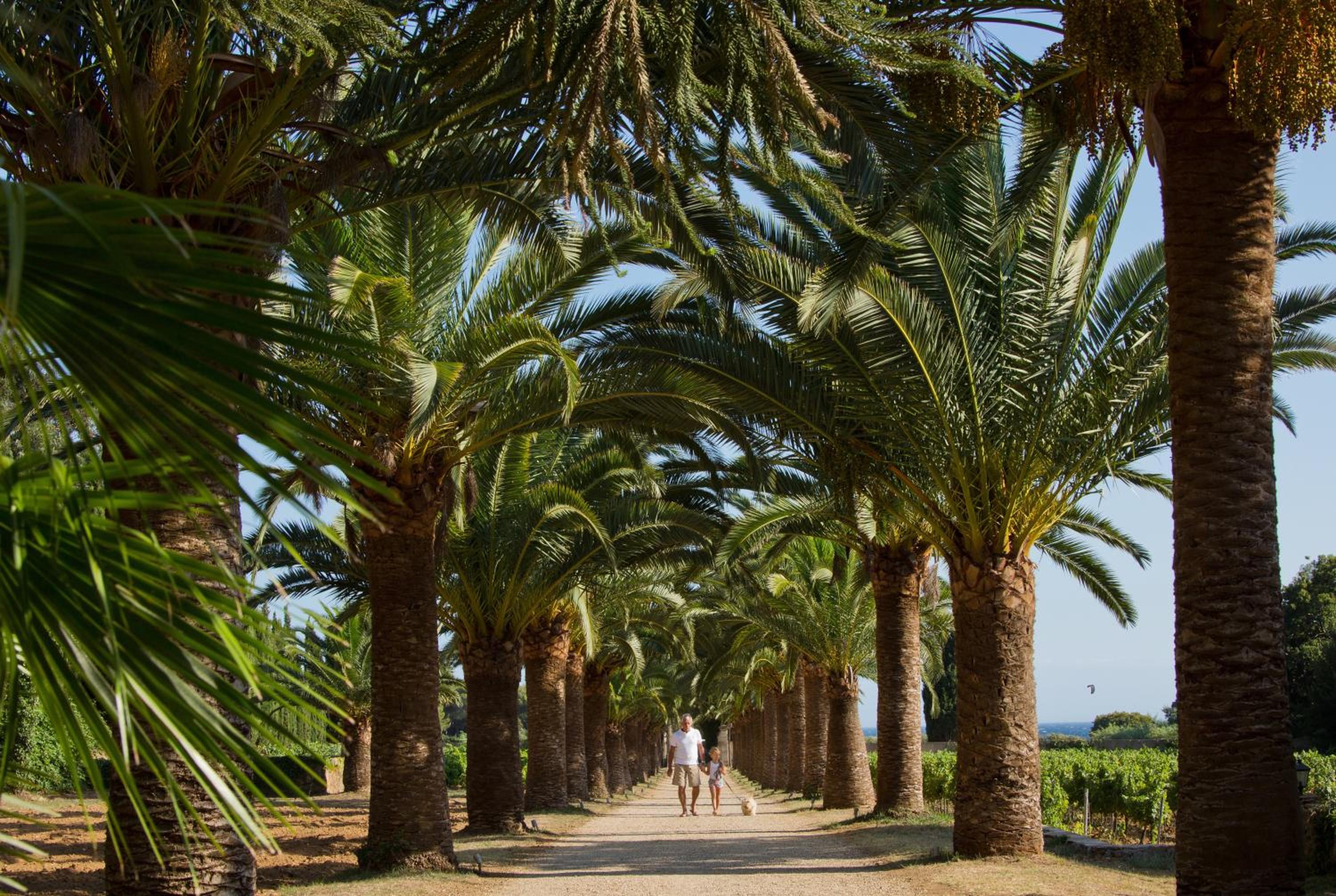 Eine lange Palmenallee führt zum Strand in der Nähe.