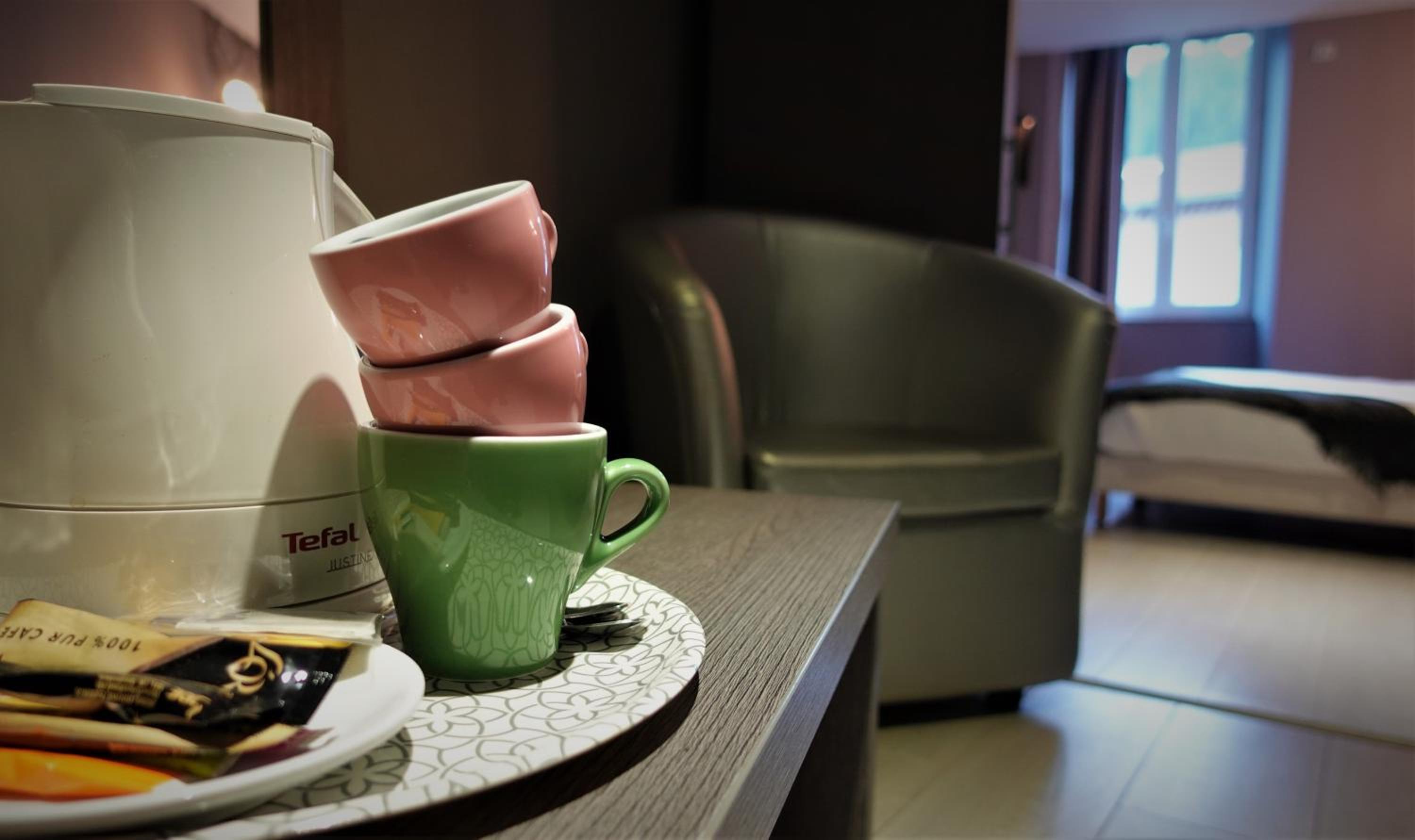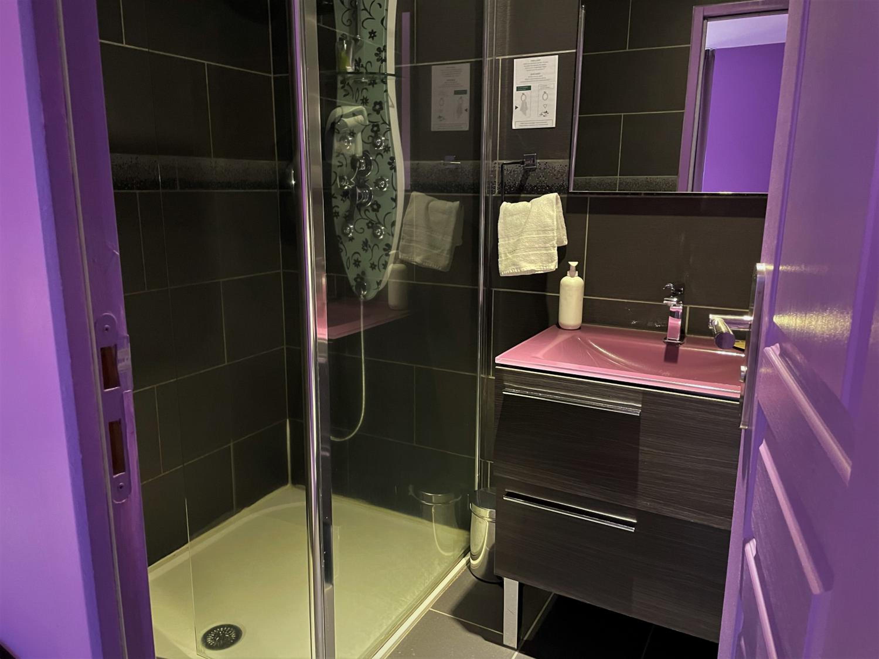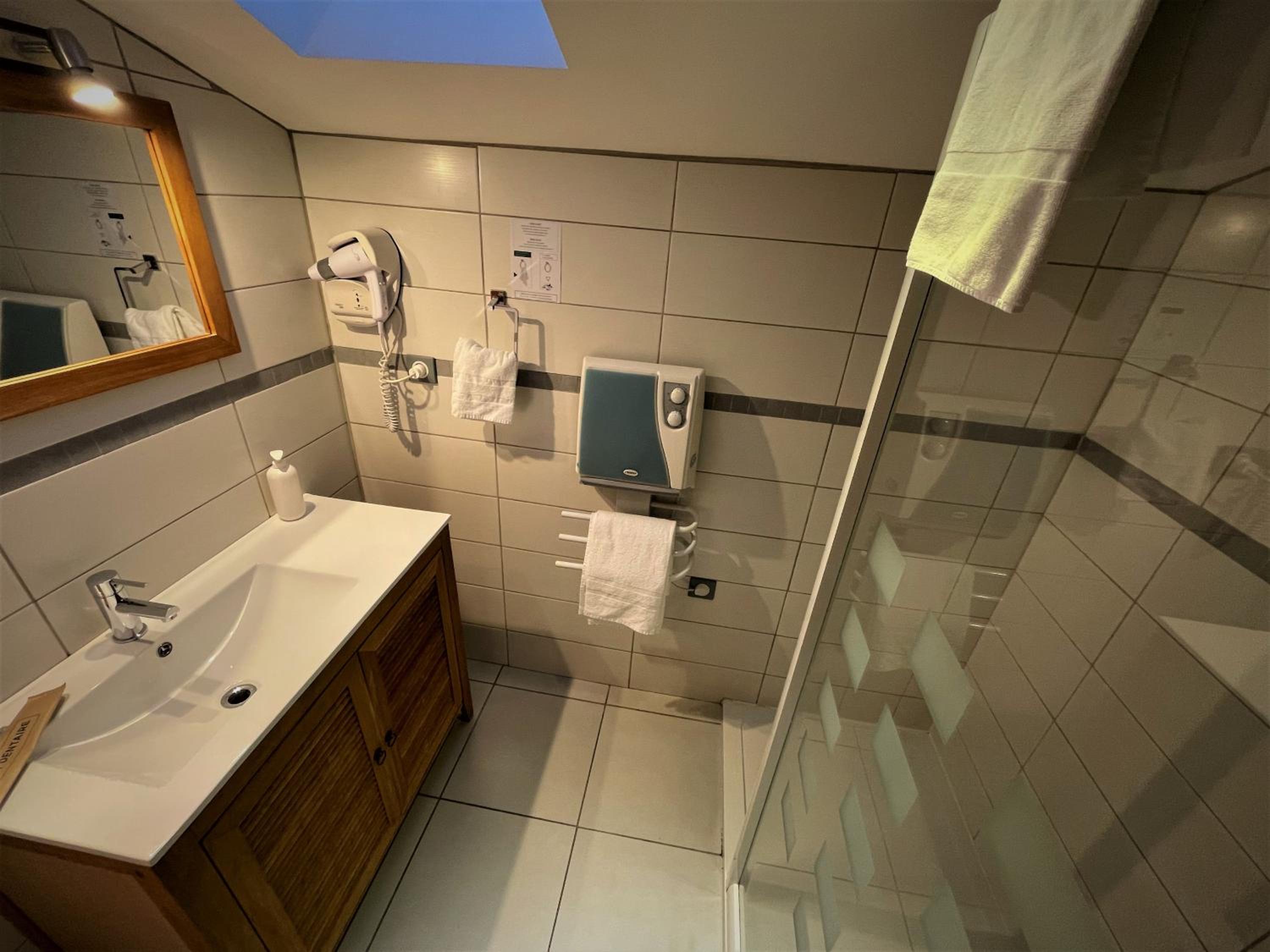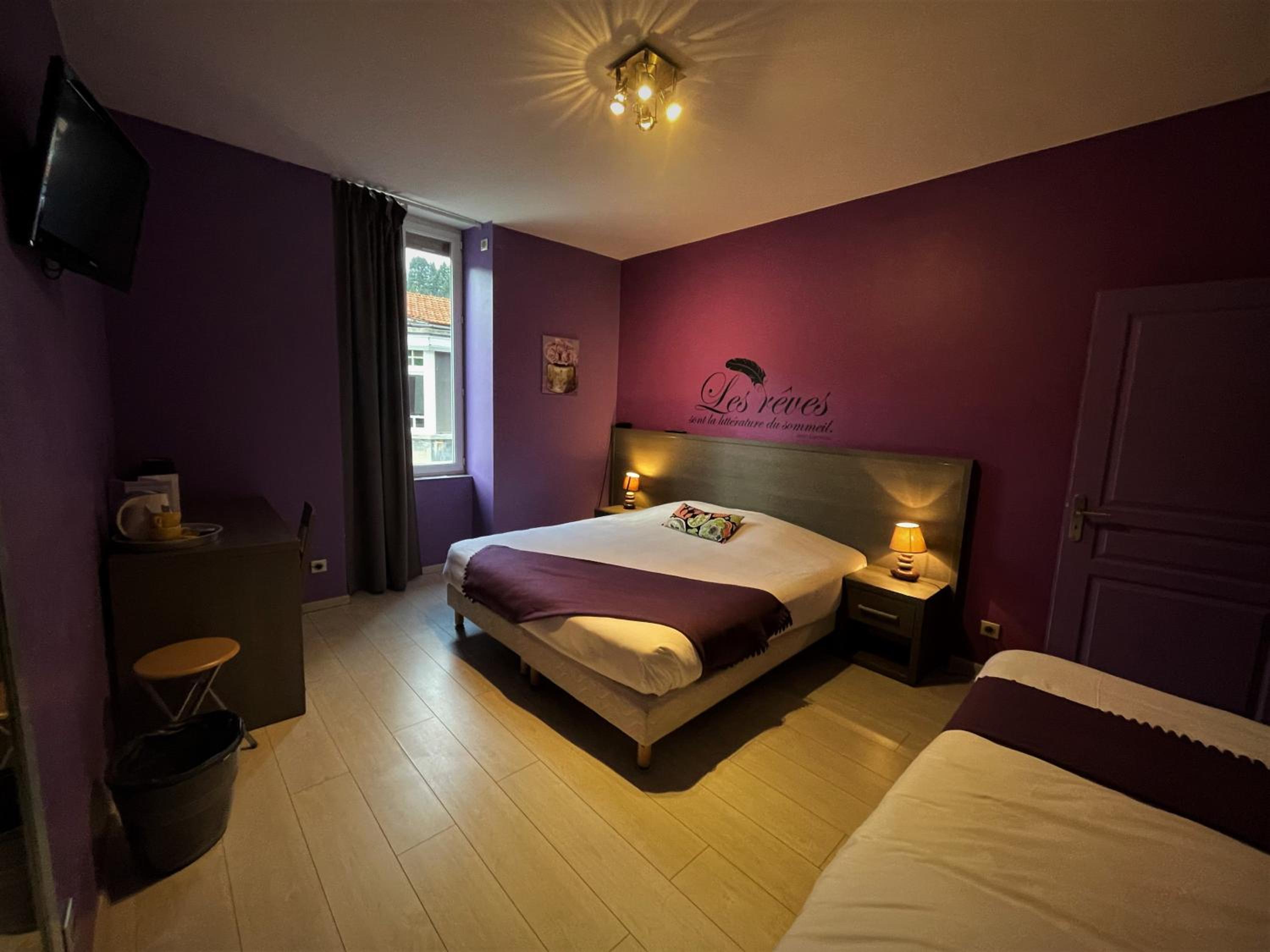 The guest rooms at Hotel-Restaurant des Voyageurs boast a chic contemporary décor, featuring flat-screen TVs and cozy seating areas. Pamper yourself in the private bathroom equipped with a spa bath or a hydromassage shower, ensuring a relaxing stay.