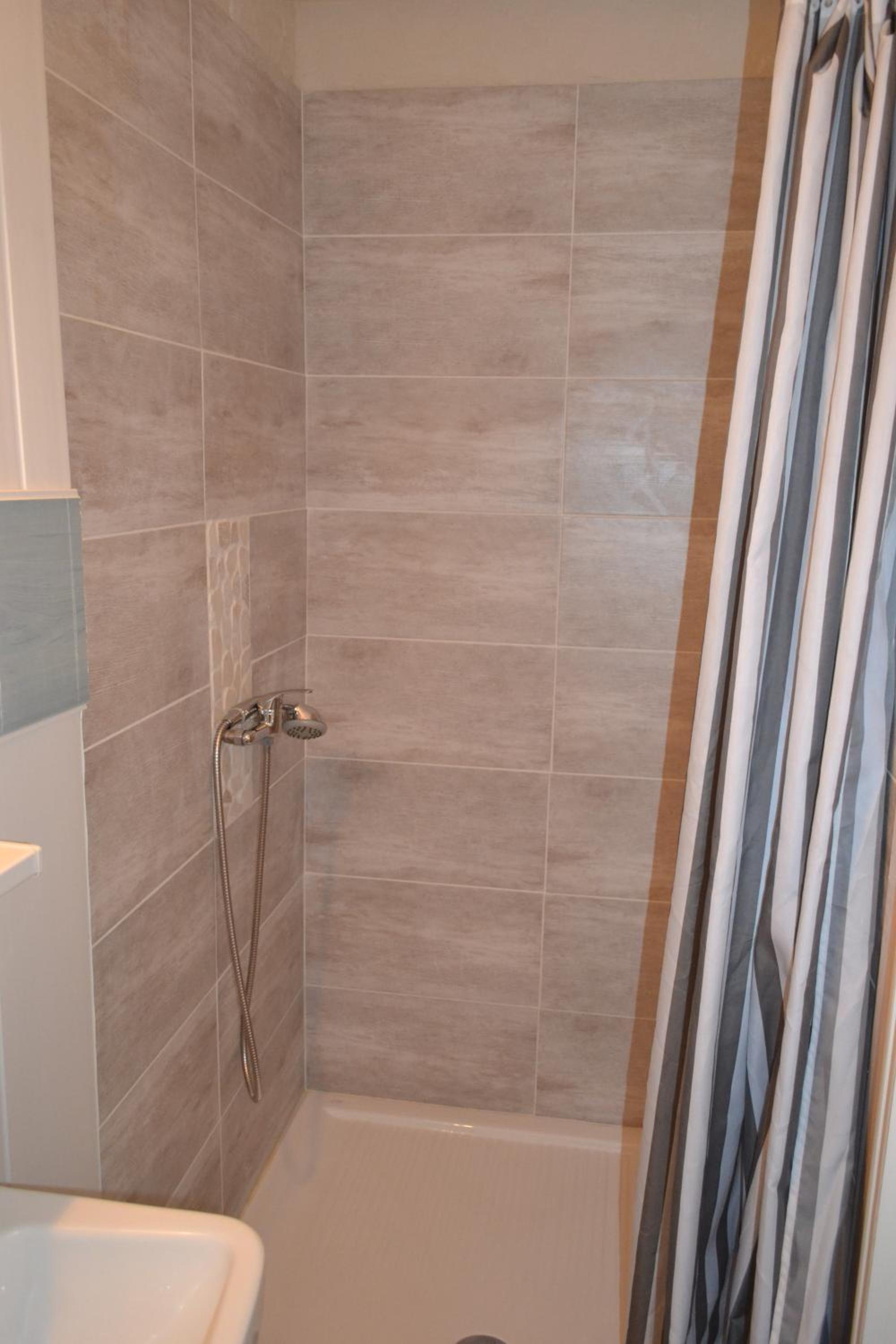 Dommage que la douche ne soit pas une cabine ( Le rideau de douche n'est plus dans le coup ...)