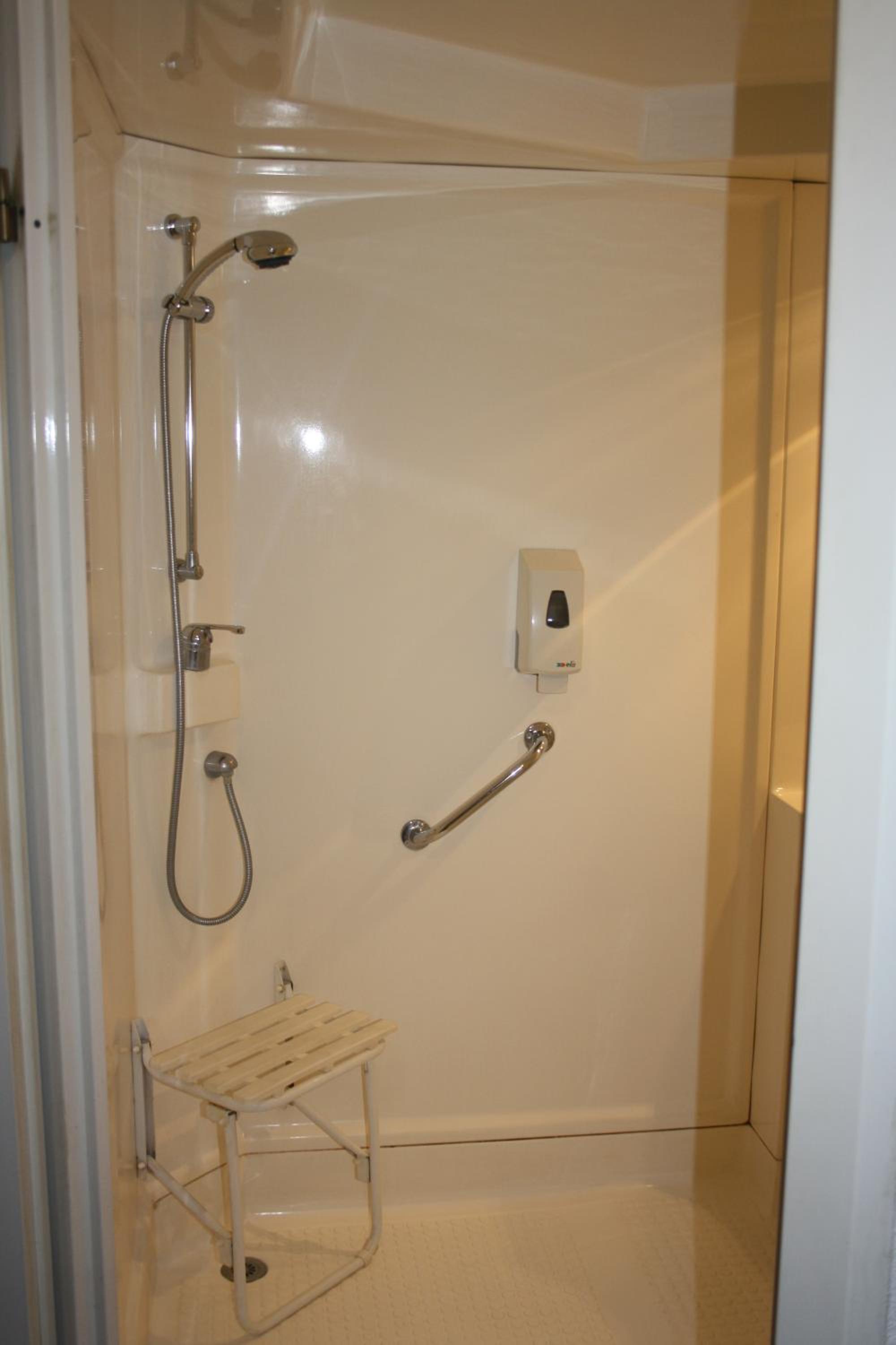 L'espèce de salle d'eau ou toilettes en plastique ou tu as e tout en un tu fais popo en prenant ta douche bref pas d'espace le paumau de douche qui tient pas. Tu arroses tout sur ton passage bref a fuir si tu es adulte