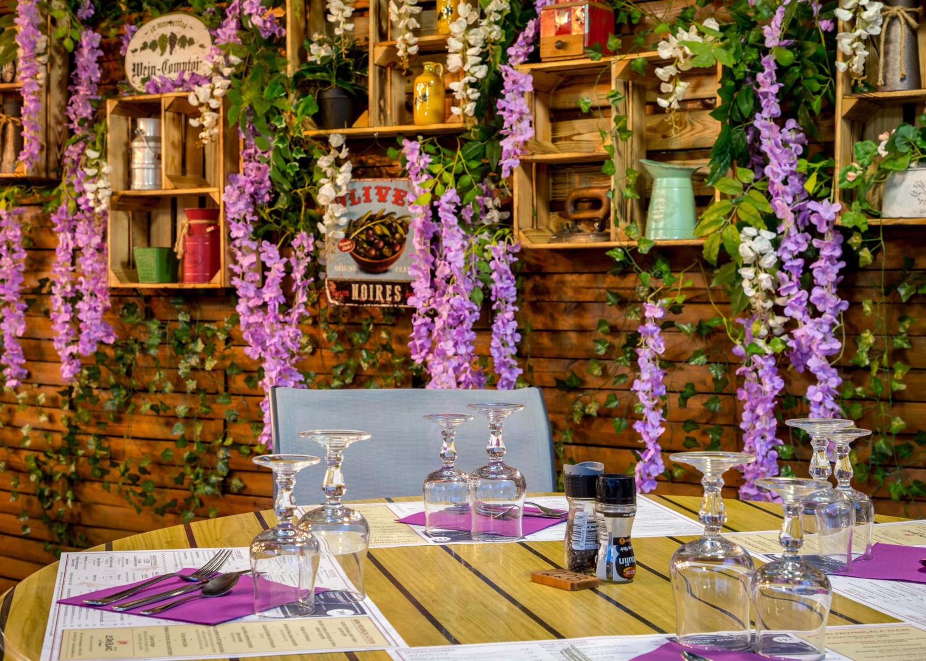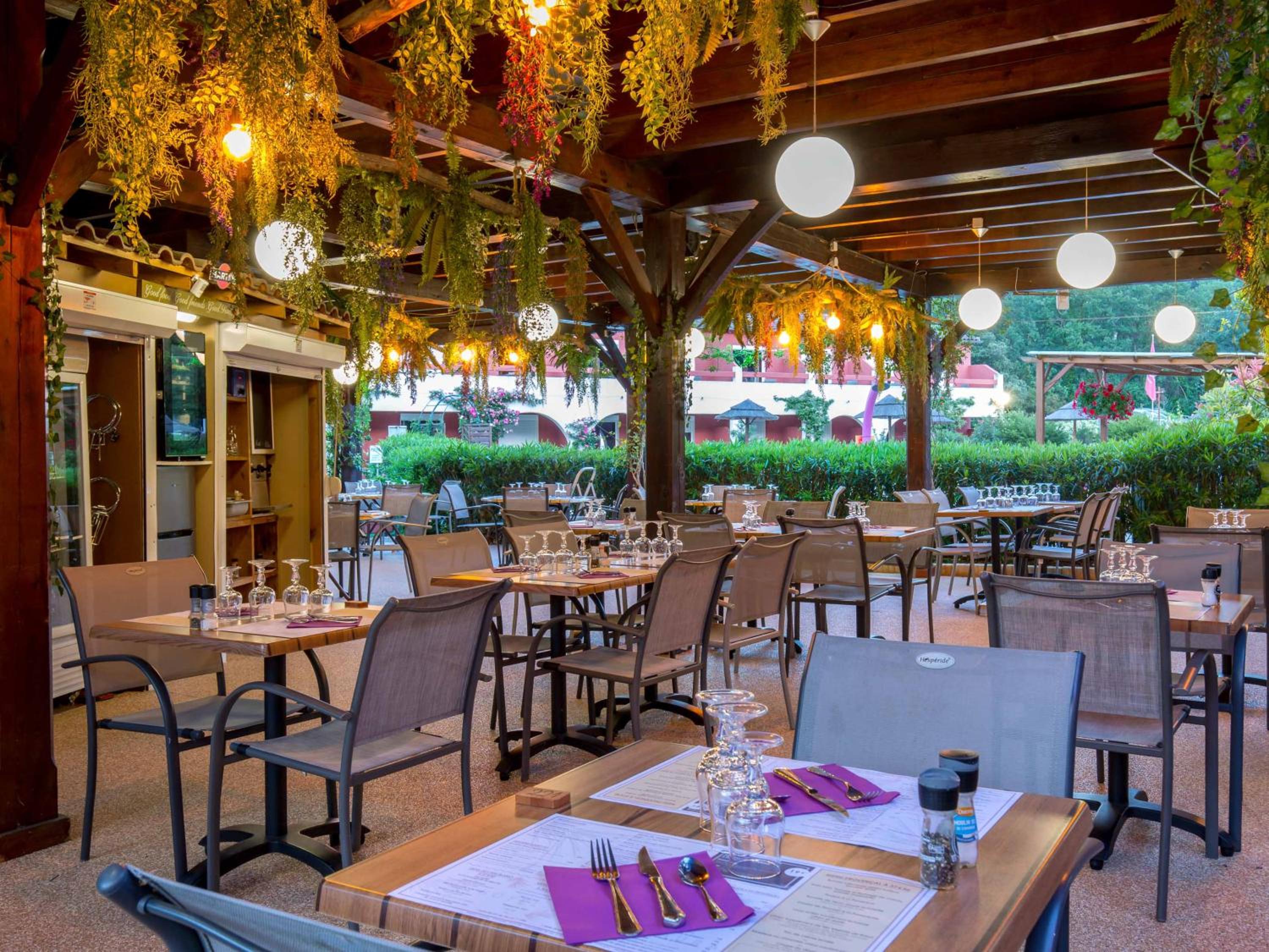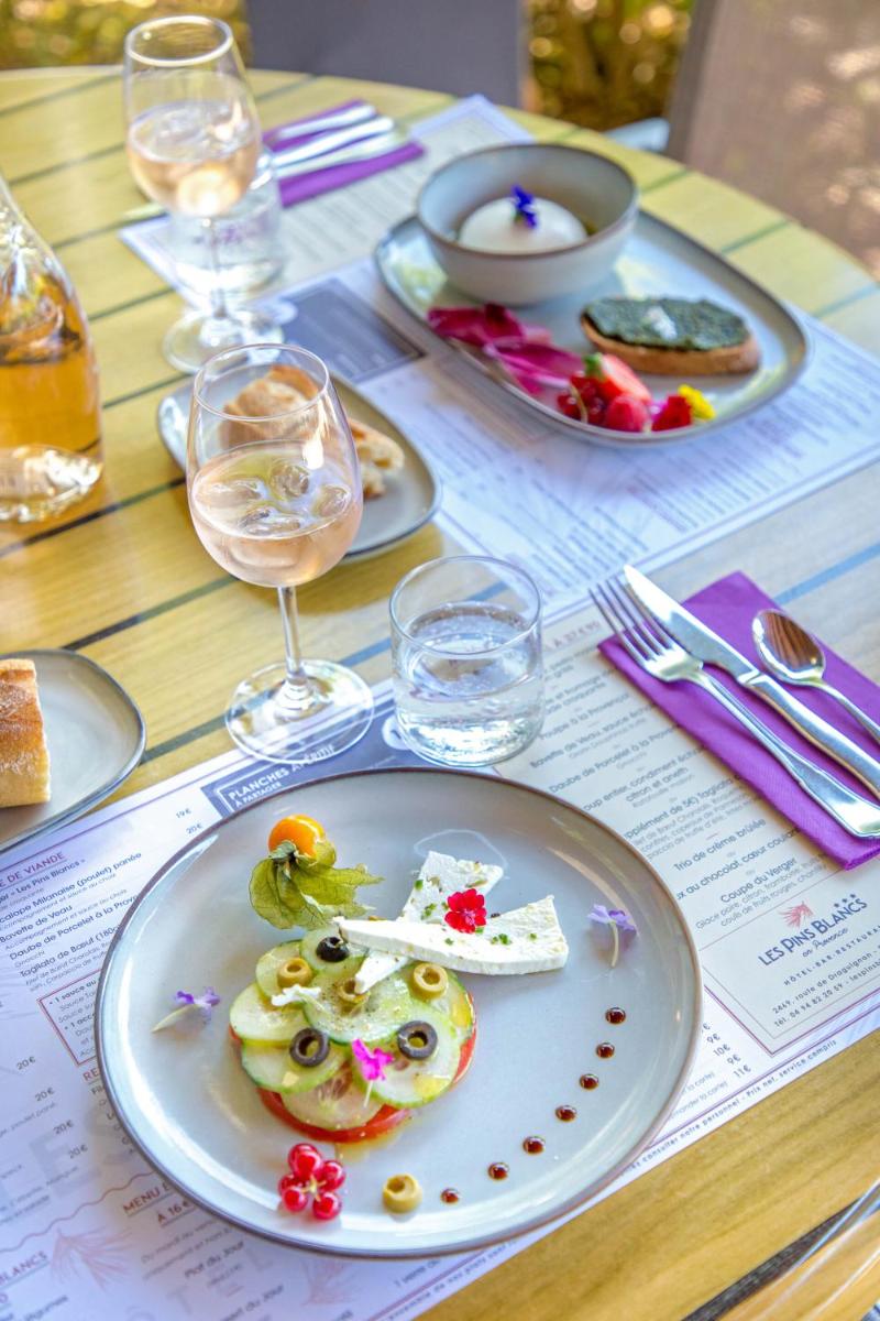 Guests can savor inventive cuisine made with local ingredients either by the fireplace in the dining room or on the terrace. The bar serves refreshing drinks, and a delightful continental breakfast is served every morning.