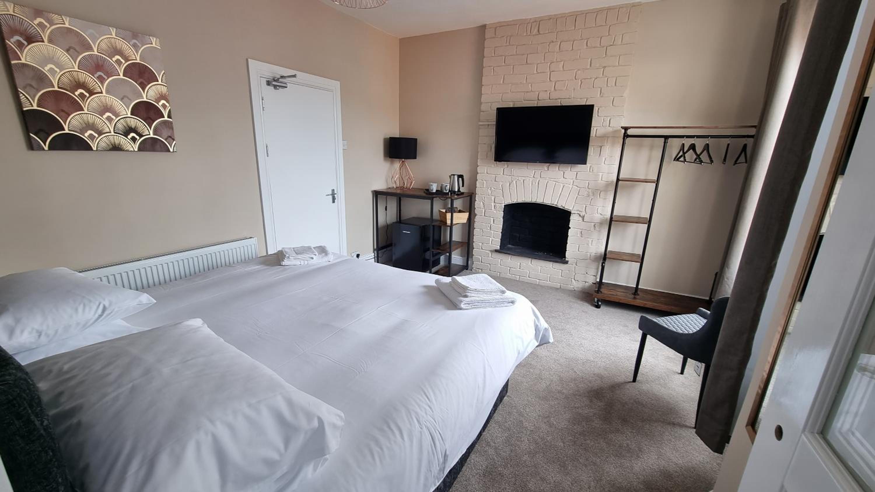 Very comfortable spacious bed. Room clean and well decorated, reasonable size wall mounted TV.Large clean bathroom. Fridge provided and fresh milk for the tea and coffee.