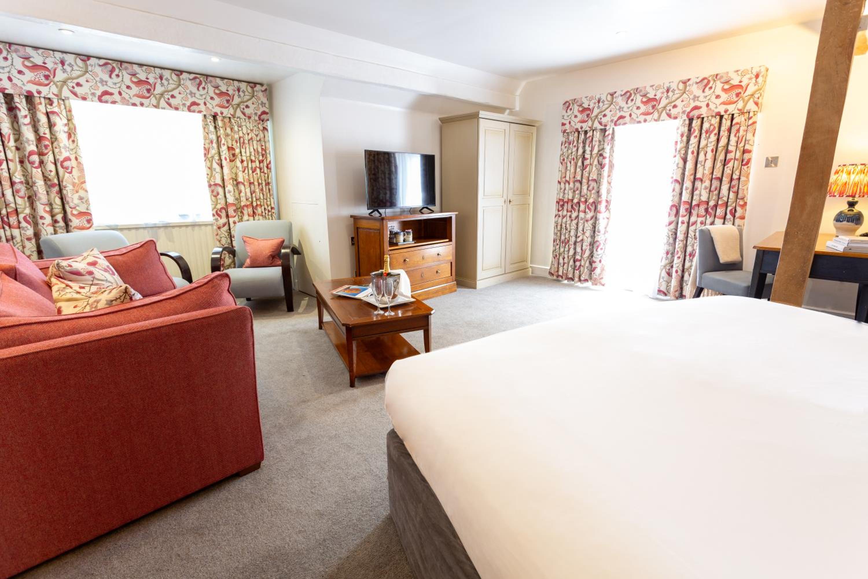 Please note the hotel is a 14th-century building and may not be suitable for disabled guests. There are ground-floor rooms available on request, any special requirements can be added to the booking.